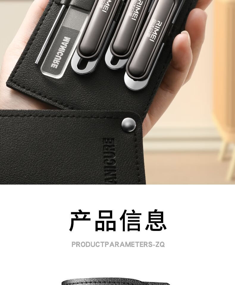 金达日美指甲刀套装家用单个指甲剪斜口指甲钳全套修剪指甲套装工具 枪黑色指甲钳单层皮套版