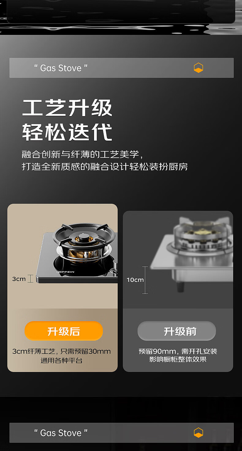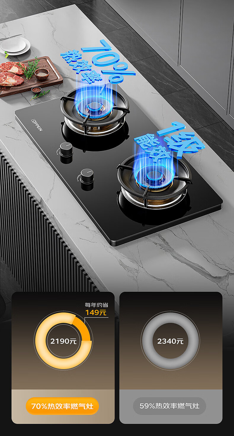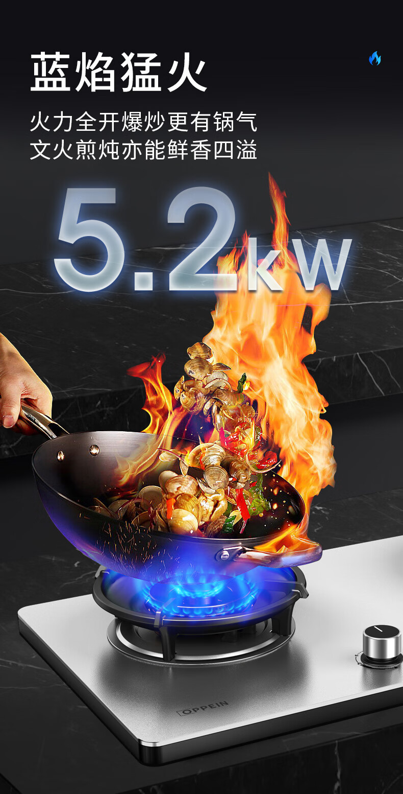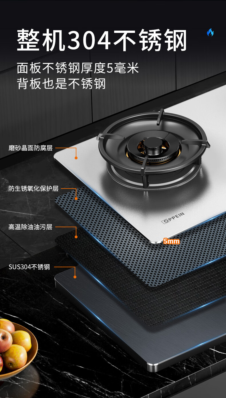 欧派(OPPEIN)家用燃气灶70%热效率钢化玻璃不锈钢猛火灶20大面板超薄一体式微孔安装免扩孔 一级能效 黑晶玻璃【70%热效率】820面板超薄一体式 液化气20Y