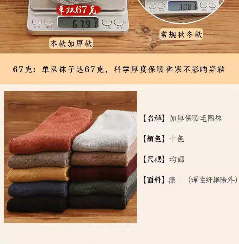 雅鹿袜子男女通用冬季加绒加厚保暖中筒袜抗寒蓄热运动户外袜防臭袜子 纯色毛巾袜-5色混装【5双装】 均码 雅鹿 10A抑菌/高弹透气/抗起球