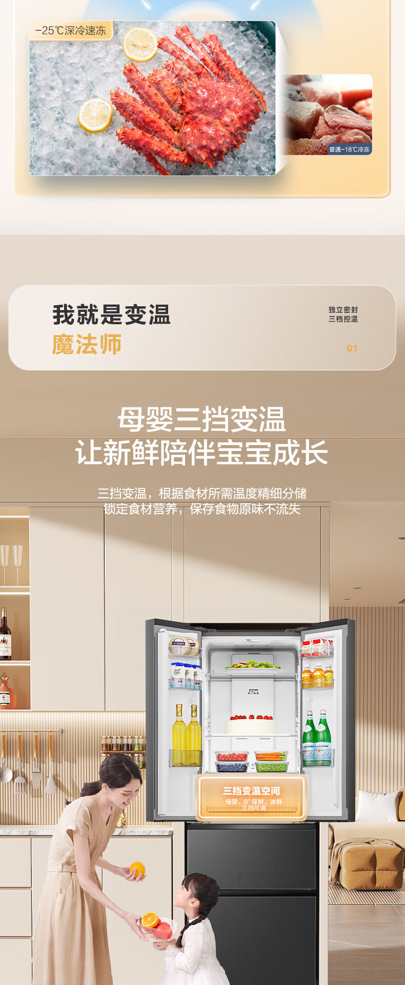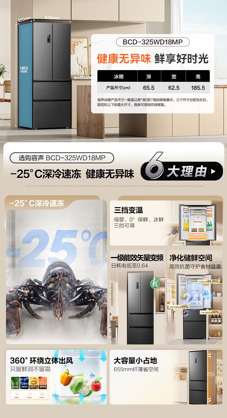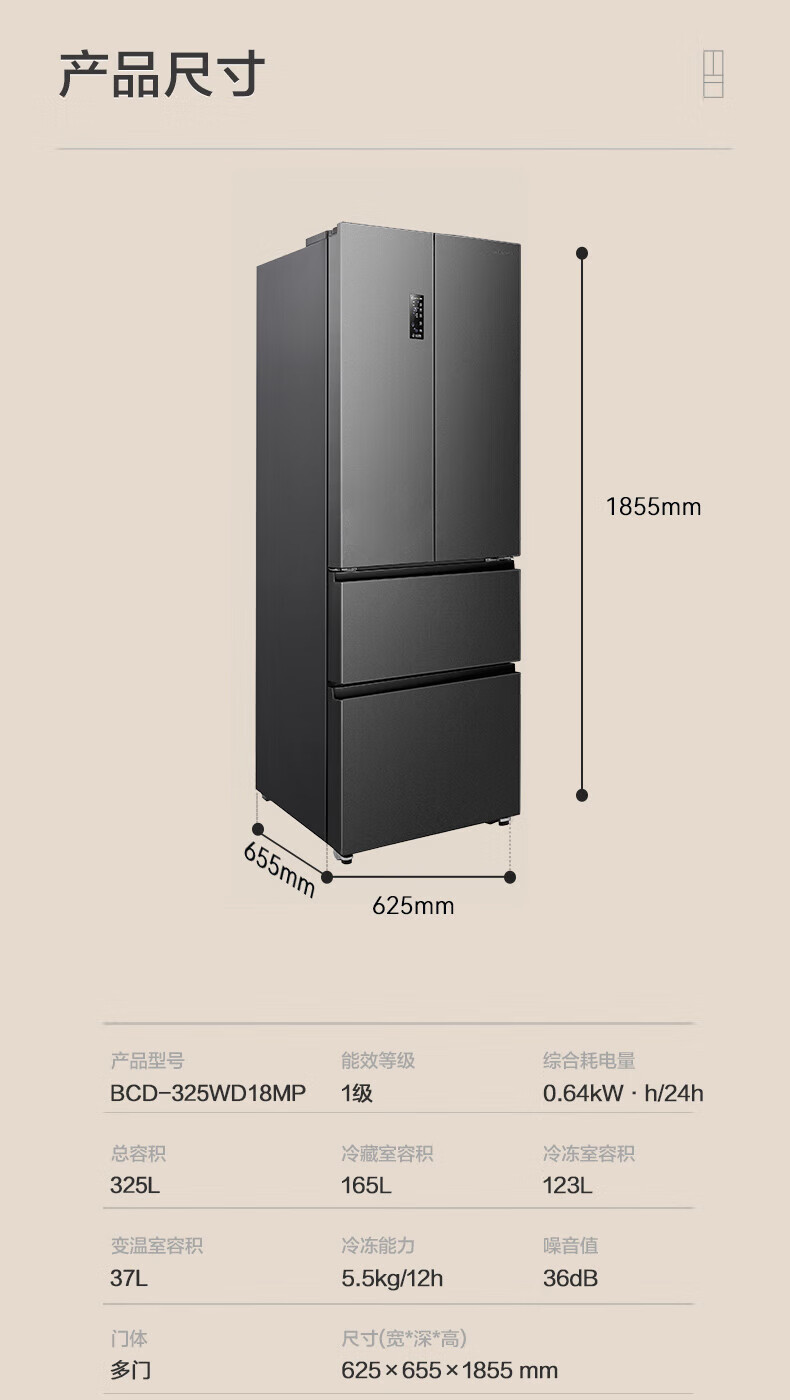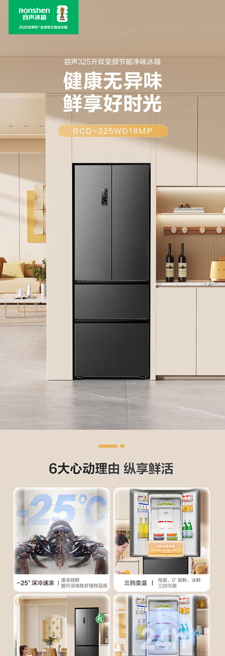 容声325升法式多门四开门家用电冰箱一级能效国家补贴变频节能省电风冷无霜小户型三挡变温以旧换新20% 母婴变温空间 BCD-325WD18MP灰