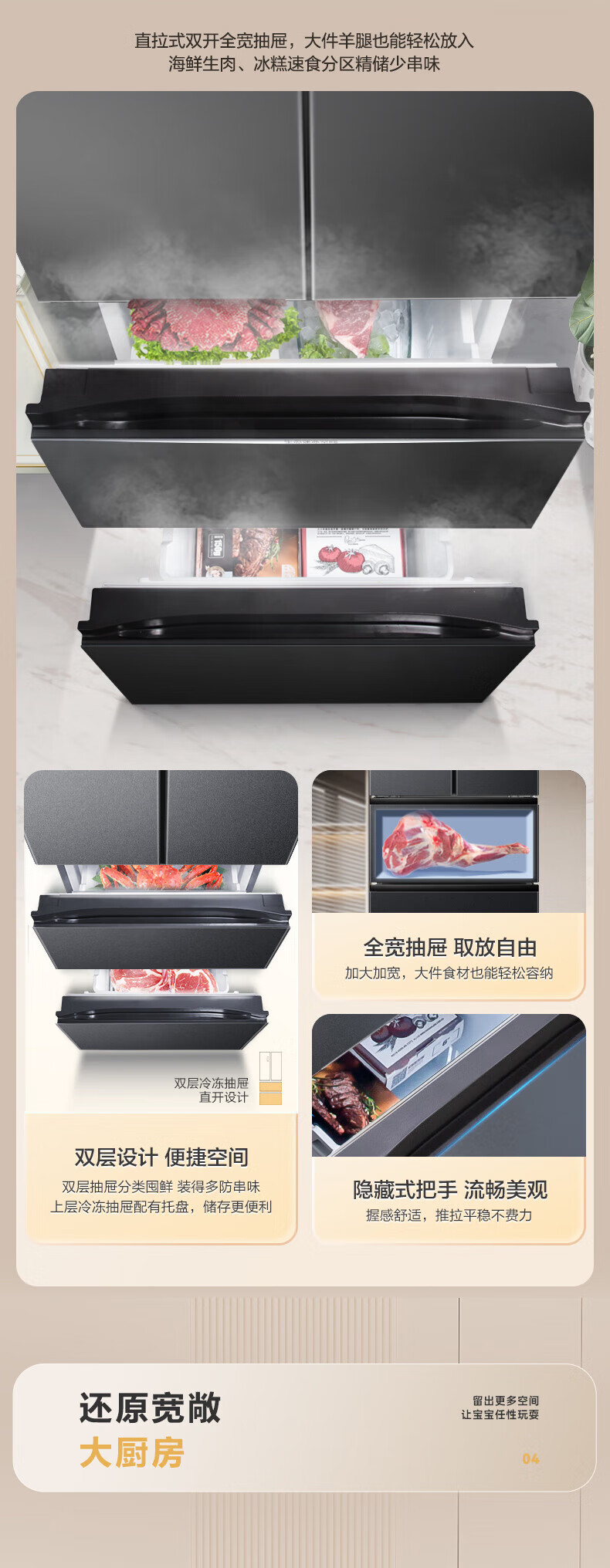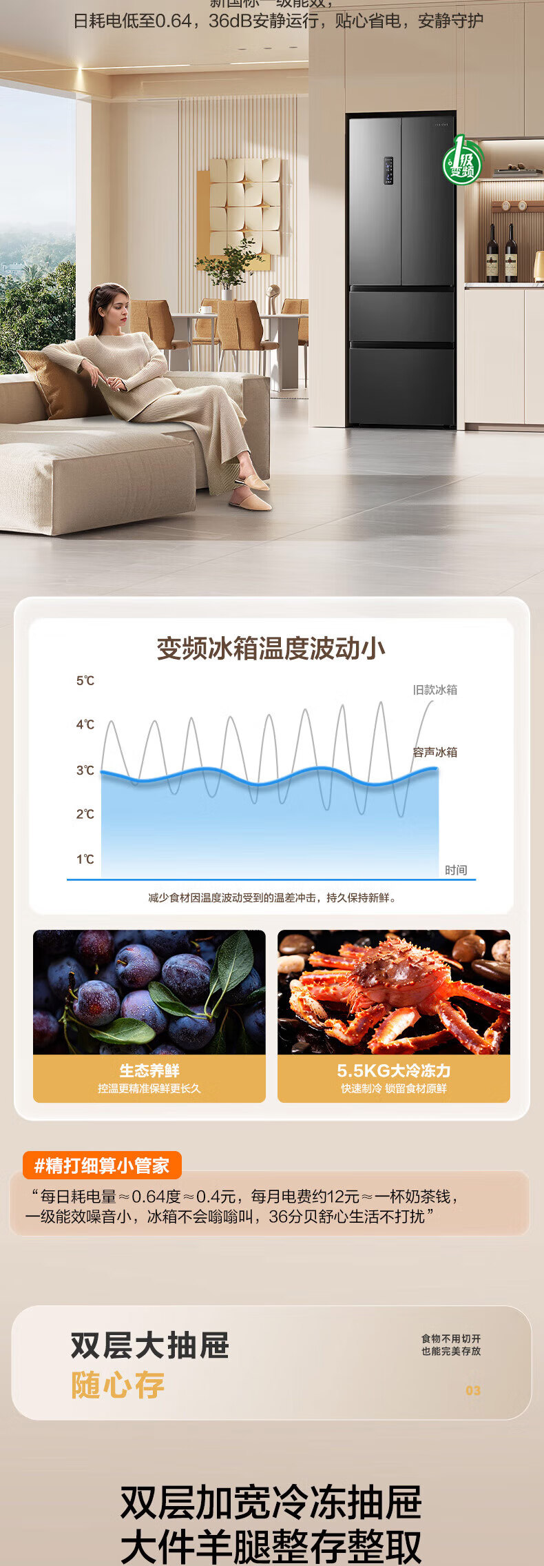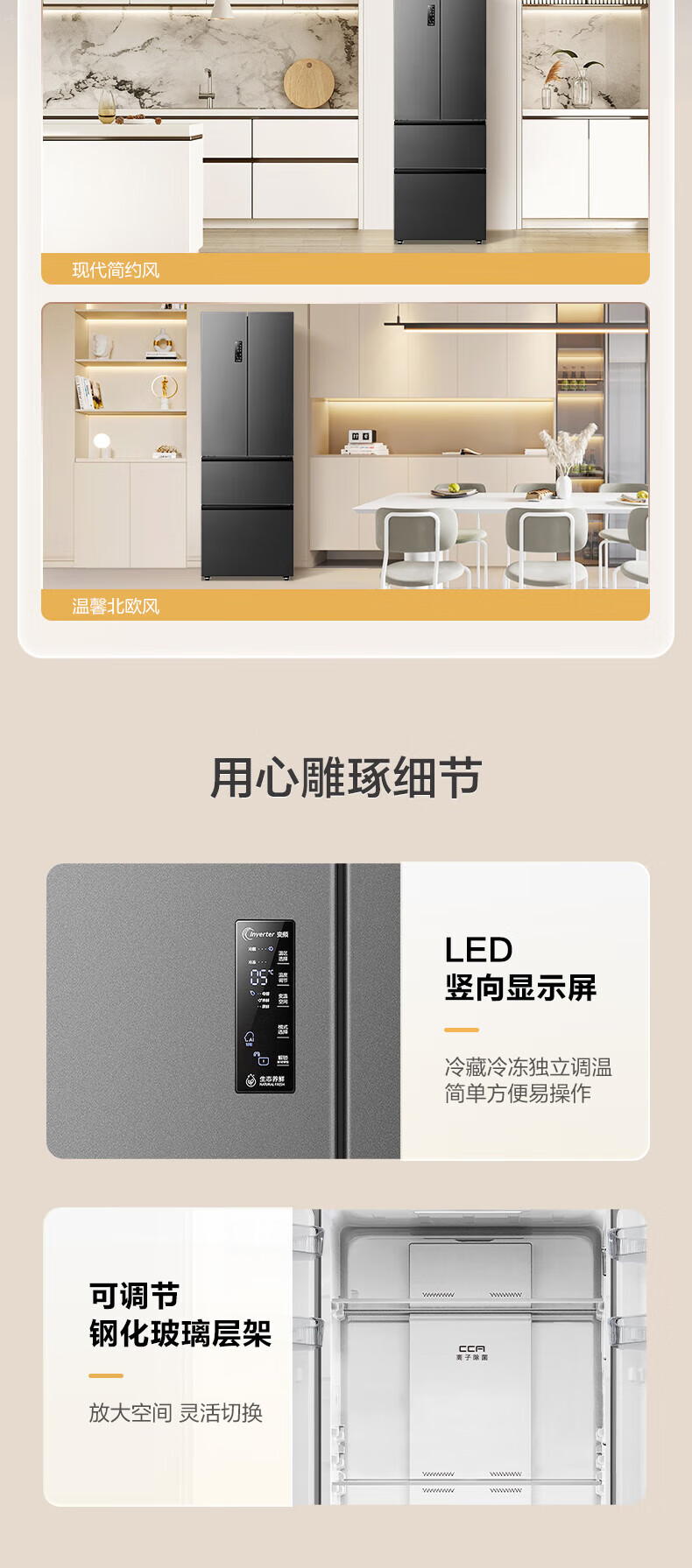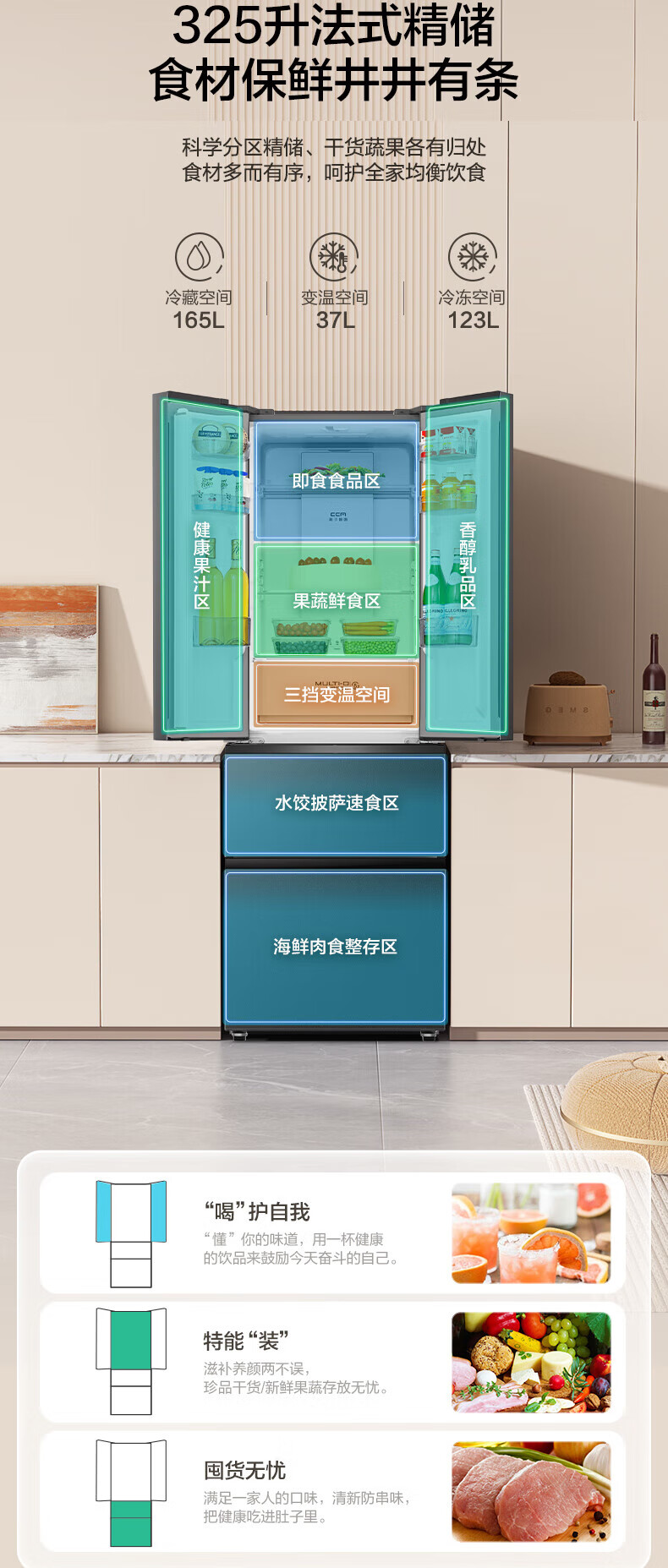 容声325升法式多门四开门家用电冰箱一级能效国家补贴变频节能省电风冷无霜小户型三挡变温以旧换新20% 母婴变温空间 BCD-325WD18MP灰
