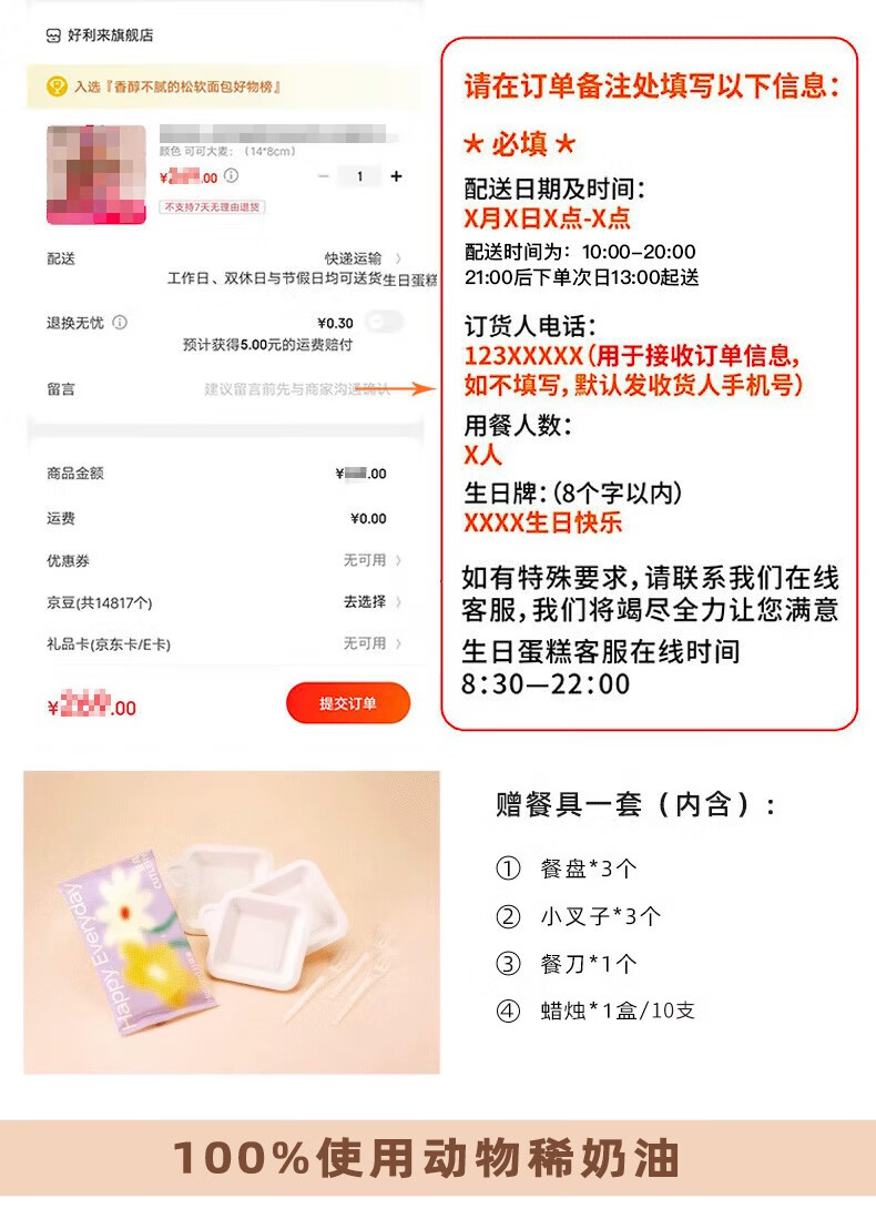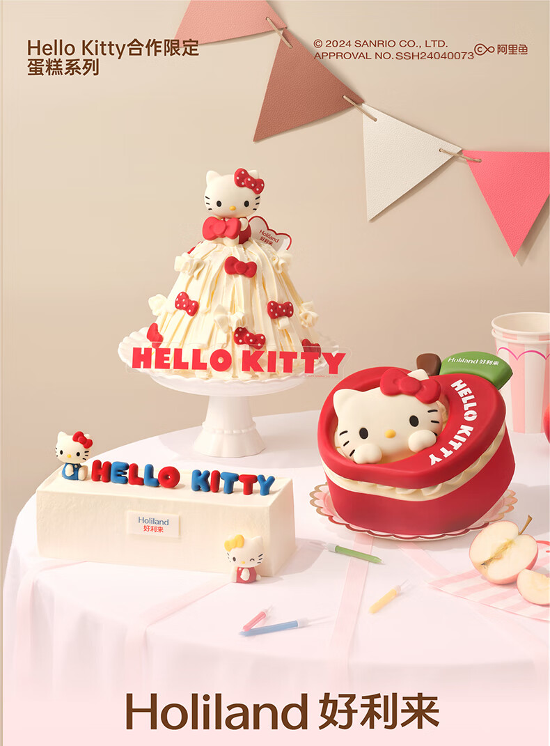 好利来Hello Kitty合作限定生日蛋糕动物奶油聚会派对同城配送 可爱出动 13*15.5*5cm玫瑰苹果
