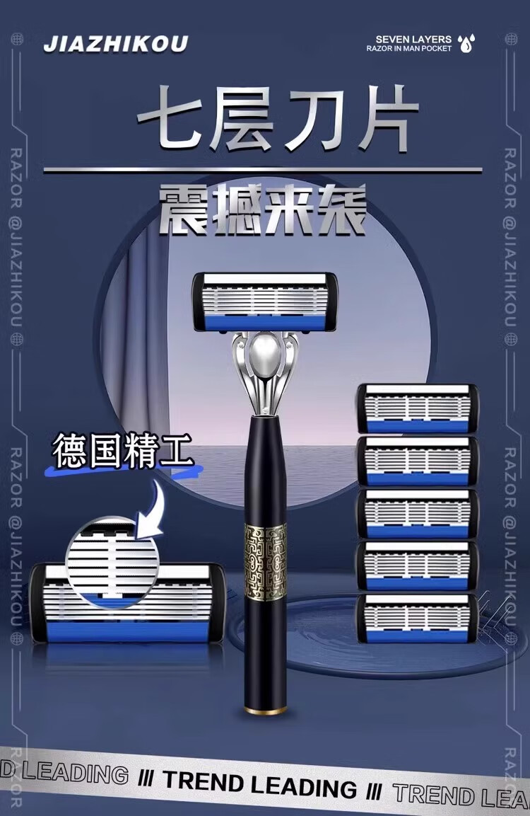 嘉之寇德国进口原装七层刀片手动剃须刀嘉之寇正品男士国潮风刮胡刀润滑 进口七层单独12刀头【不含刀架】