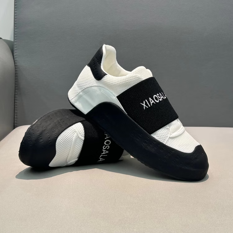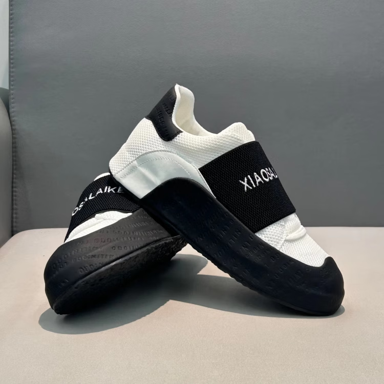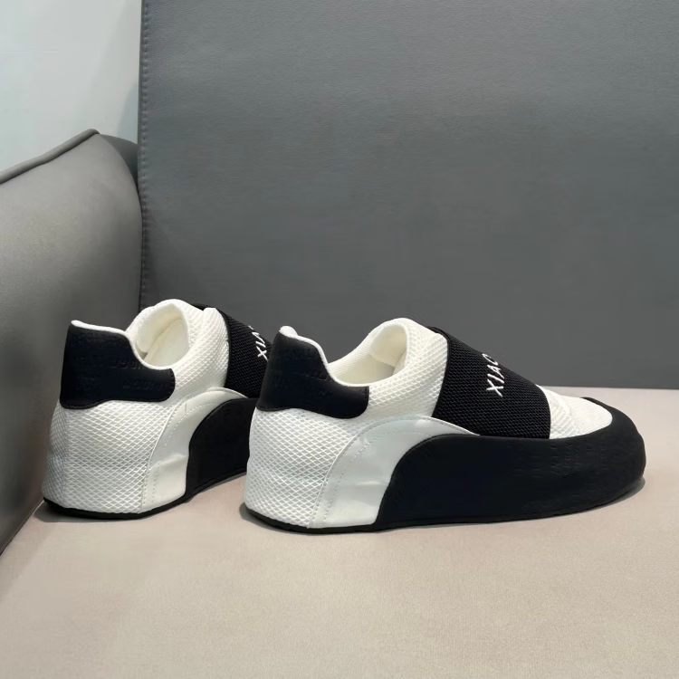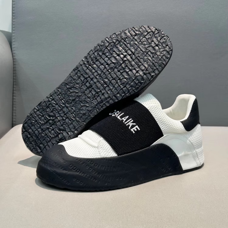 LZXB品牌轻奢潮牌男鞋新款低帮鞋潮流印花一脚蹬运动鞋百搭休闲潮鞋男 白黑色-【高端男鞋】 39