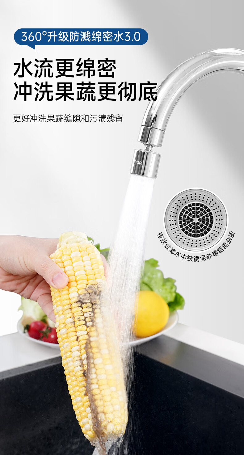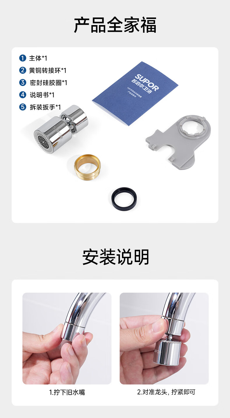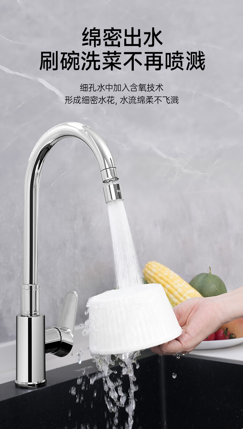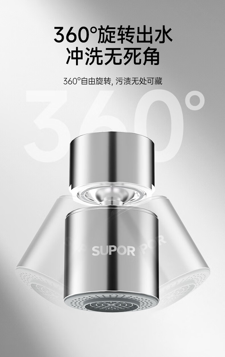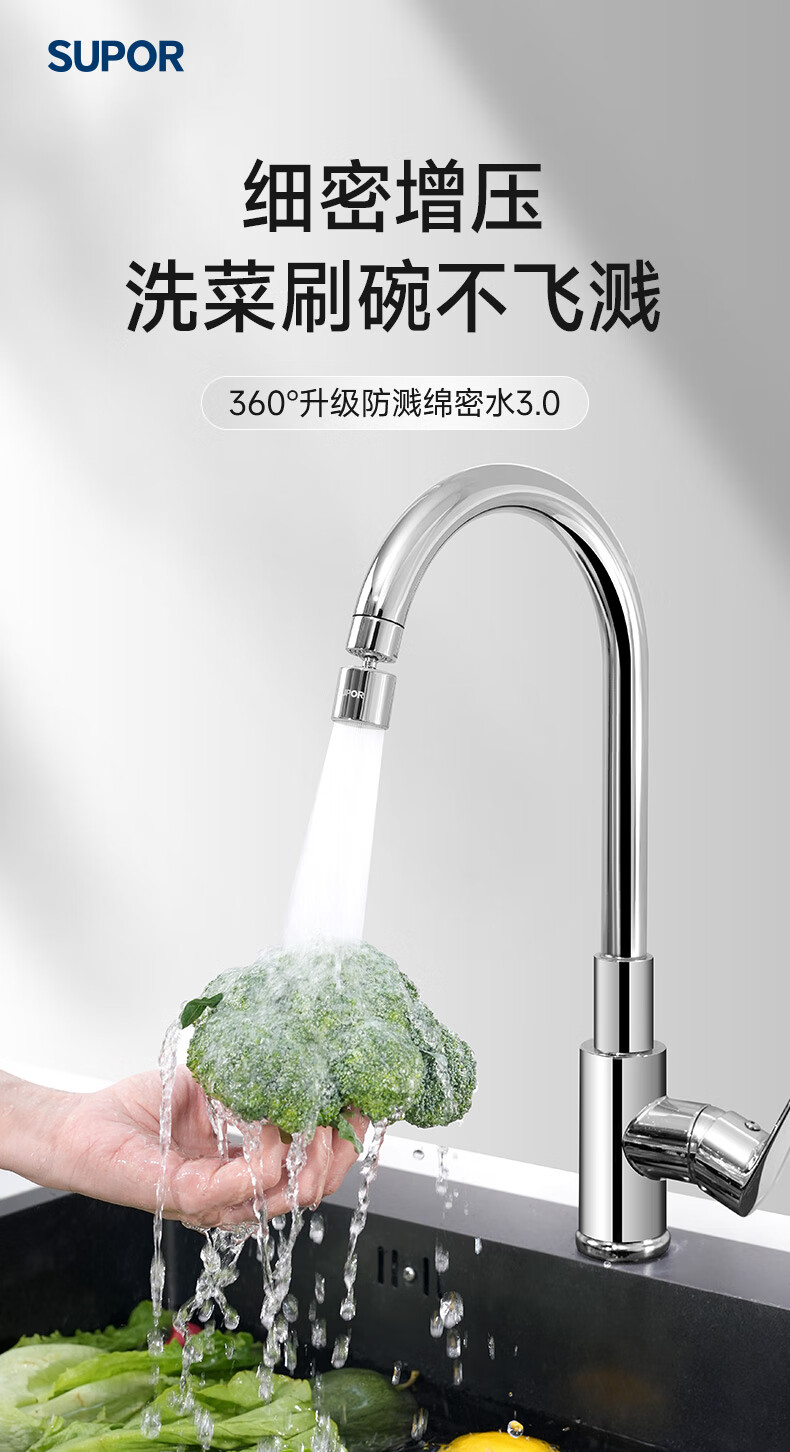 苏泊尔(SUPOR)360°万向旋转厨房水龙头防溅水神器延伸器起泡器全铜增压水嘴S