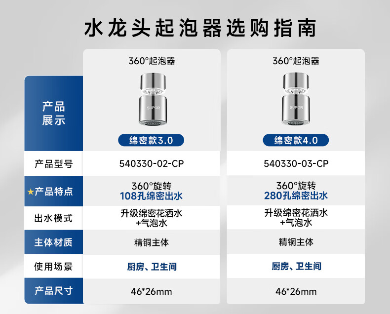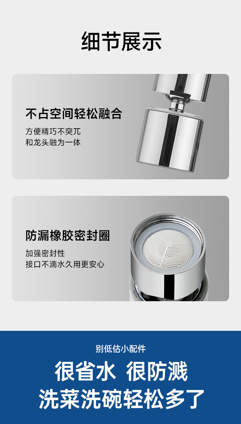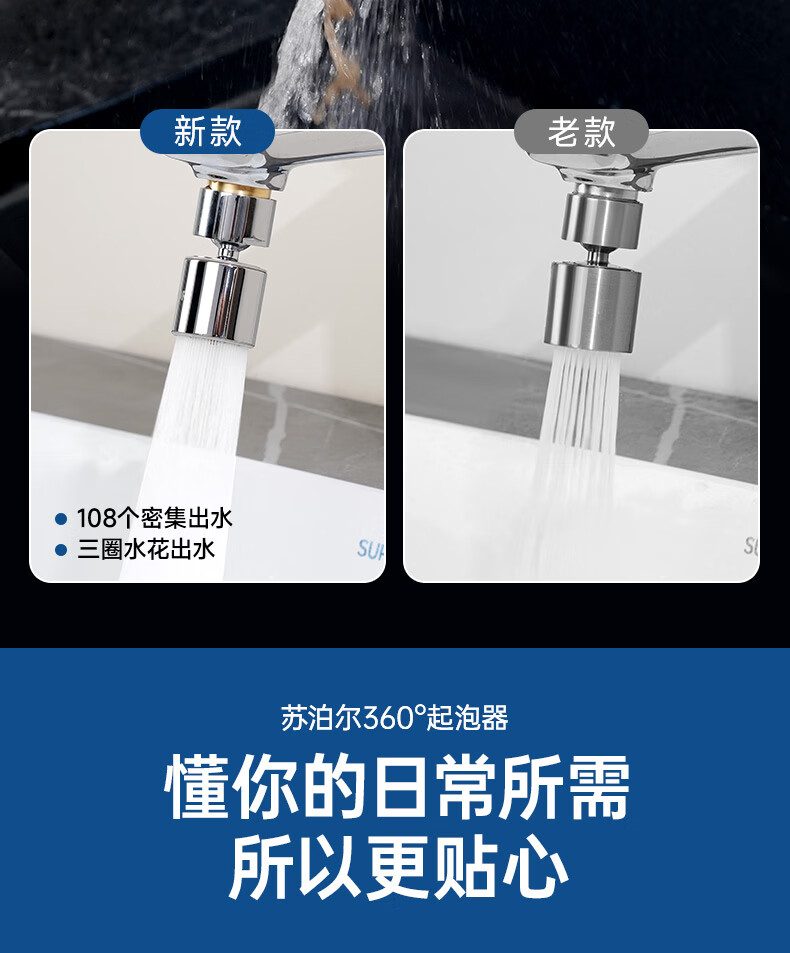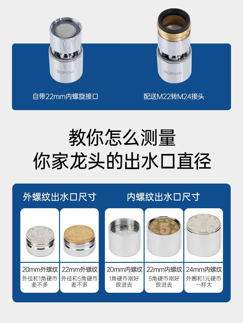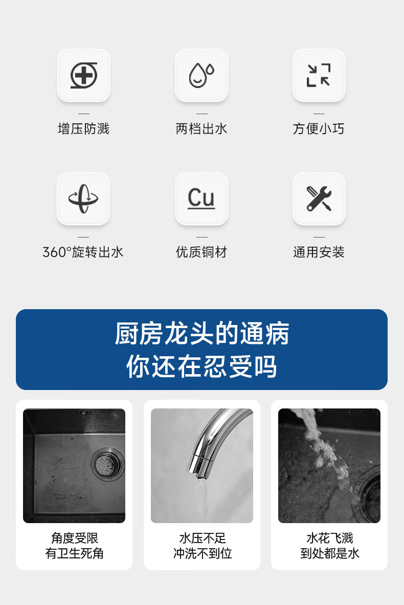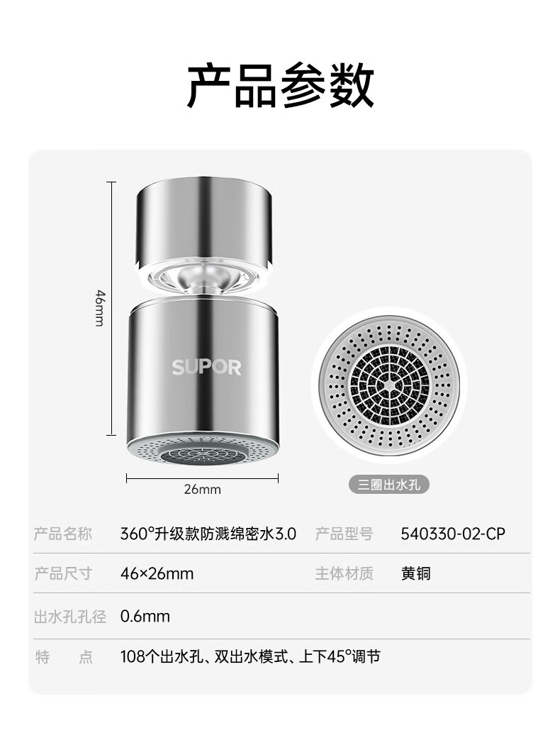 苏泊尔(SUPOR)360°万向旋转厨房水龙头防溅水神器延伸器起泡器全铜增压水嘴S