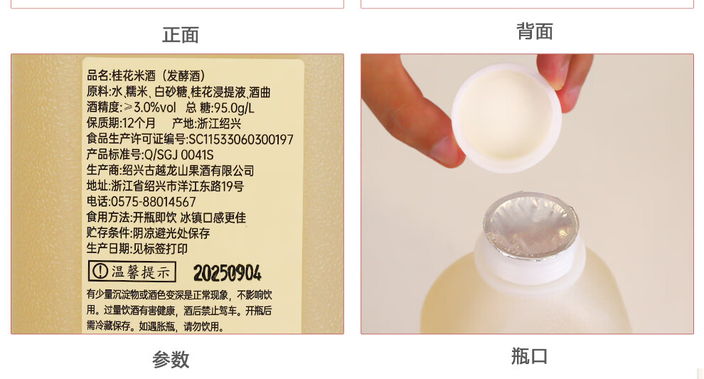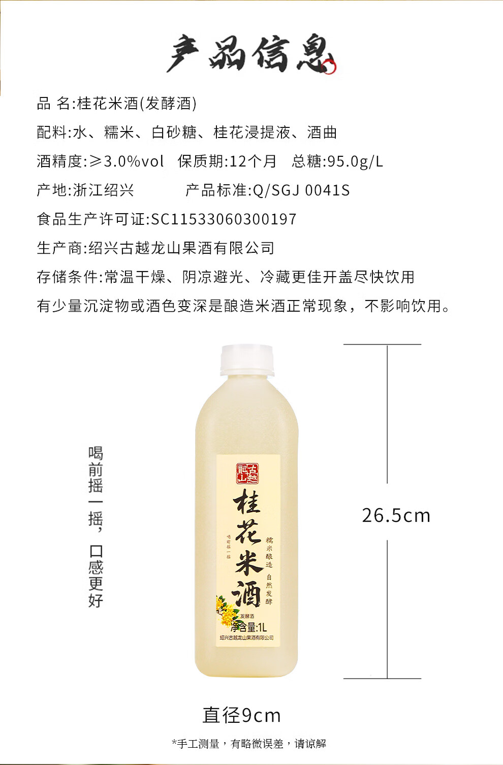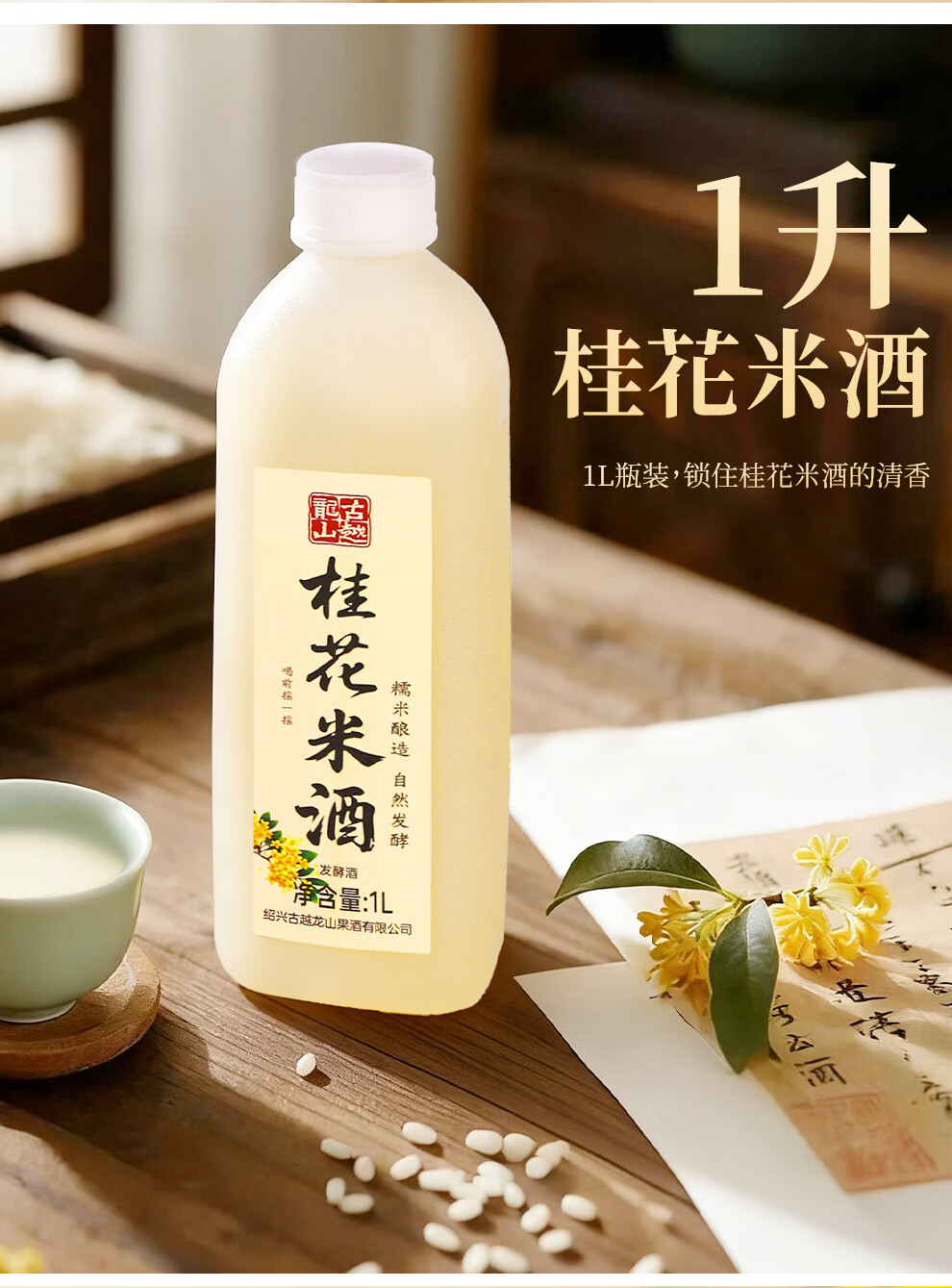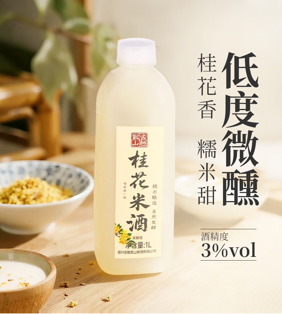 古越龙山糯米酒鲜米甜酒手工酿造浊米酒发酵低度微醺醪糟汁甜米露礼盒酒 2.4L*1桶 3%vol(桂花)