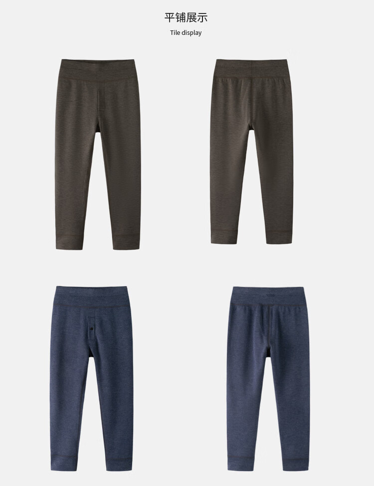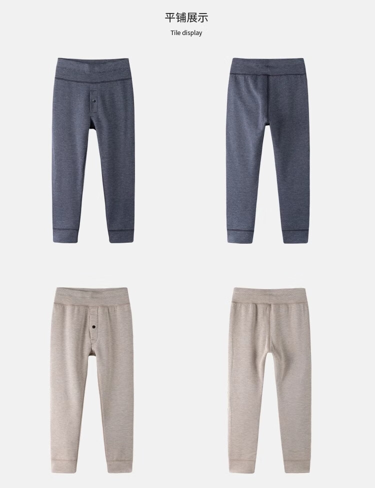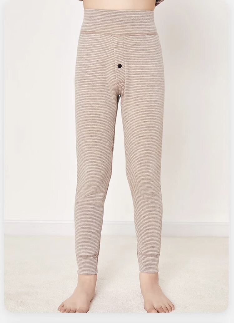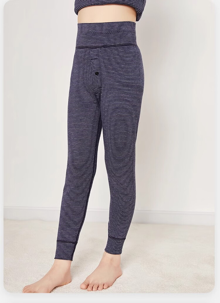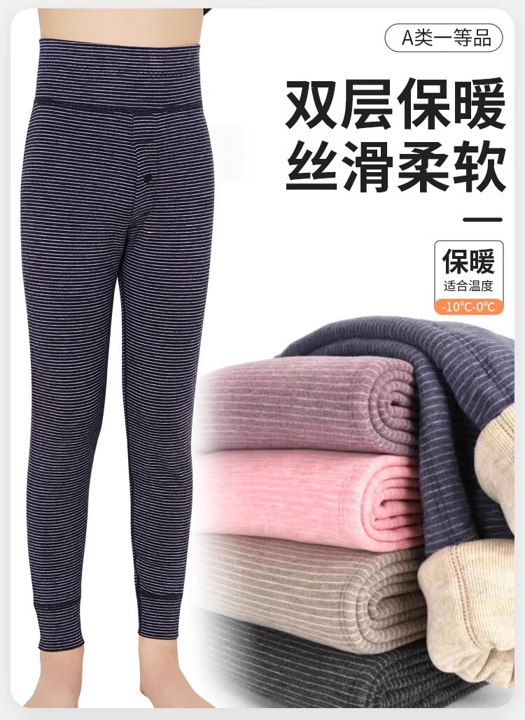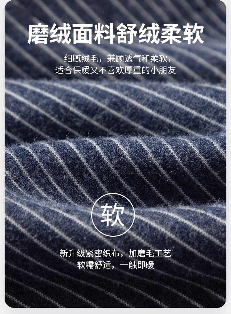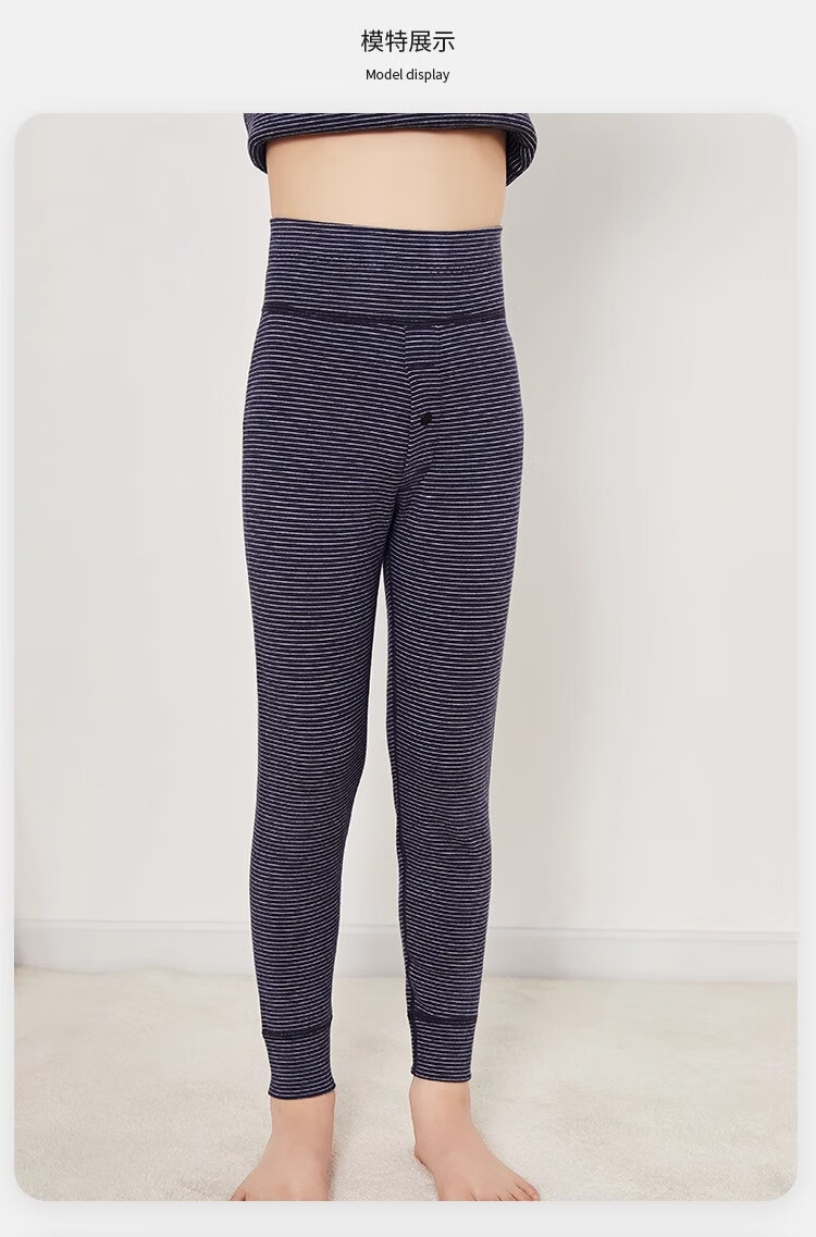 英氏男童保暖裤双层磨毛加厚冬季A类加宽儿童高腰秋裤打底裤 条纹黑 110