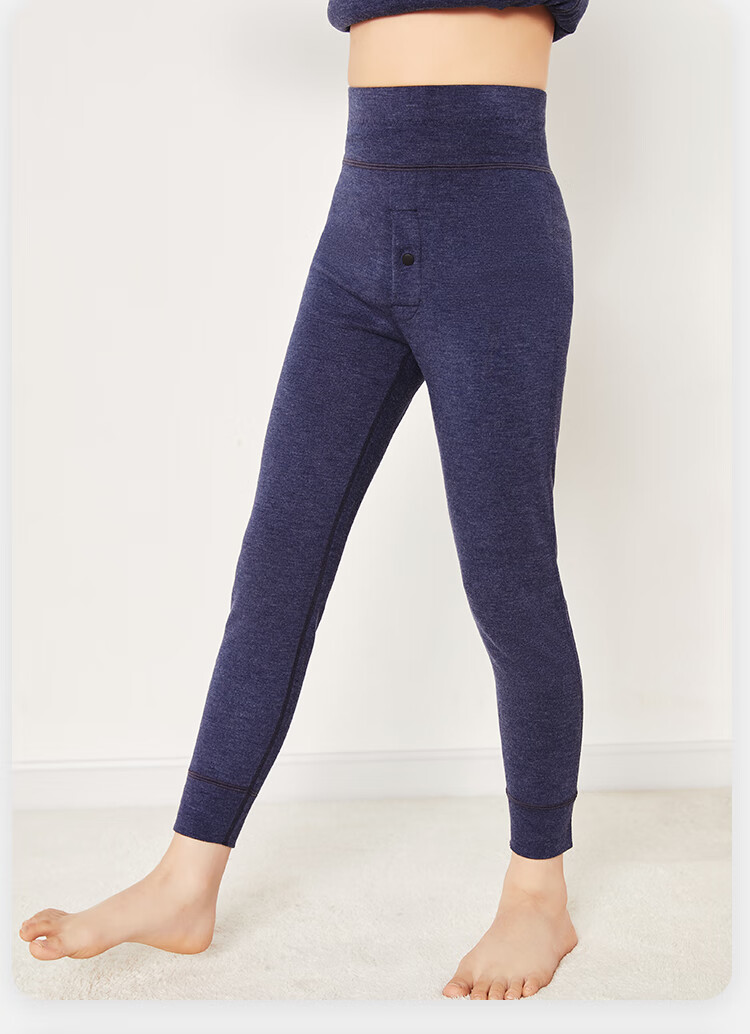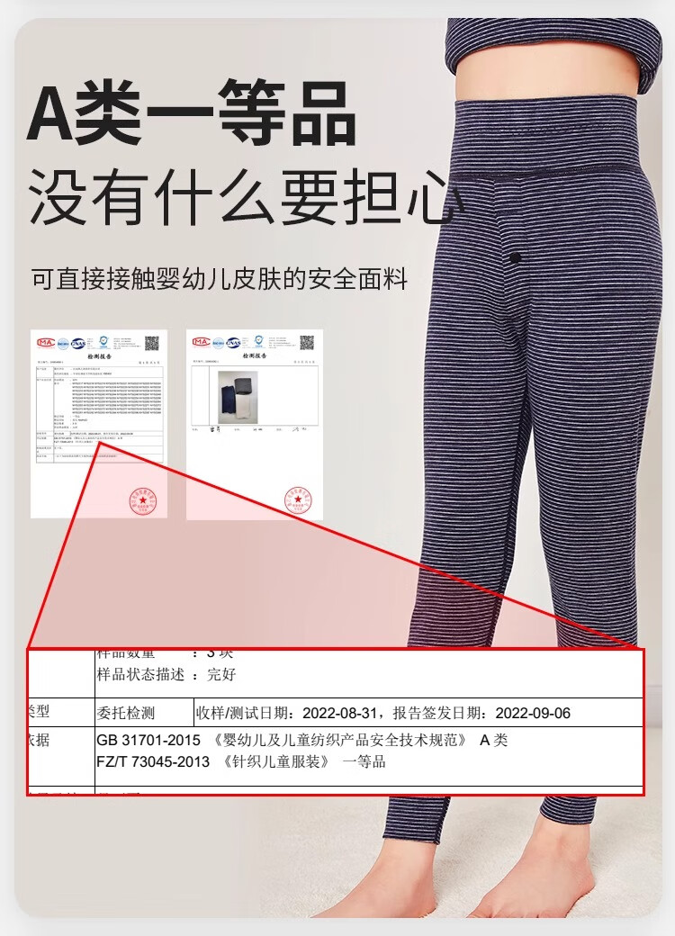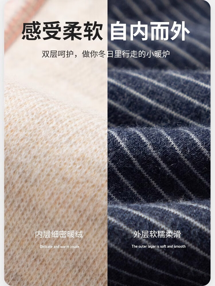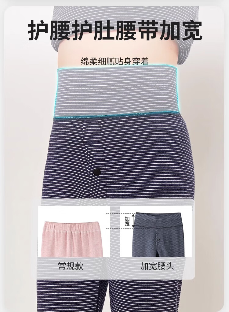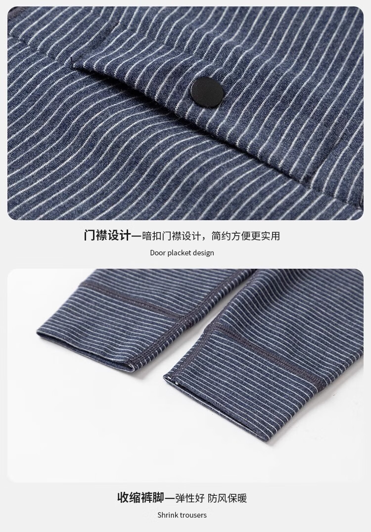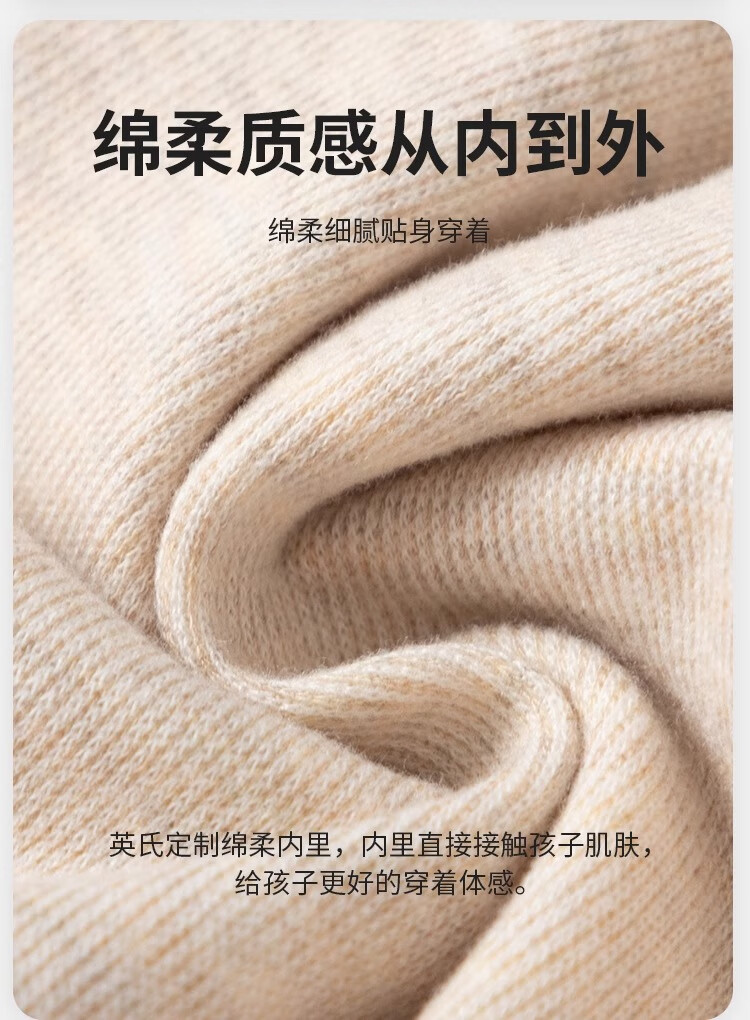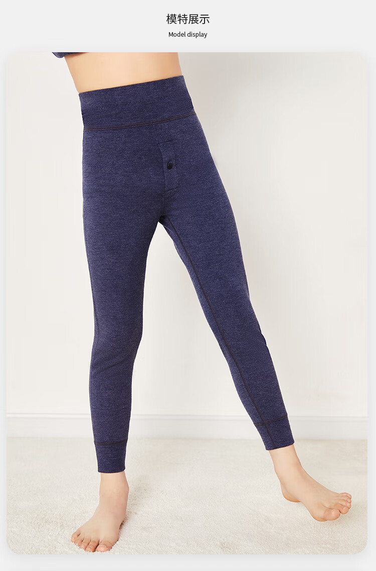 英氏男童保暖裤双层磨毛加厚冬季A类加宽儿童高腰秋裤打底裤 条纹黑 110