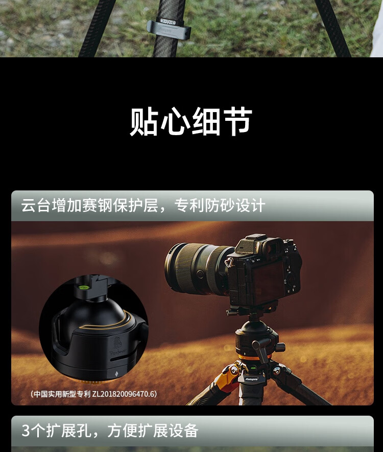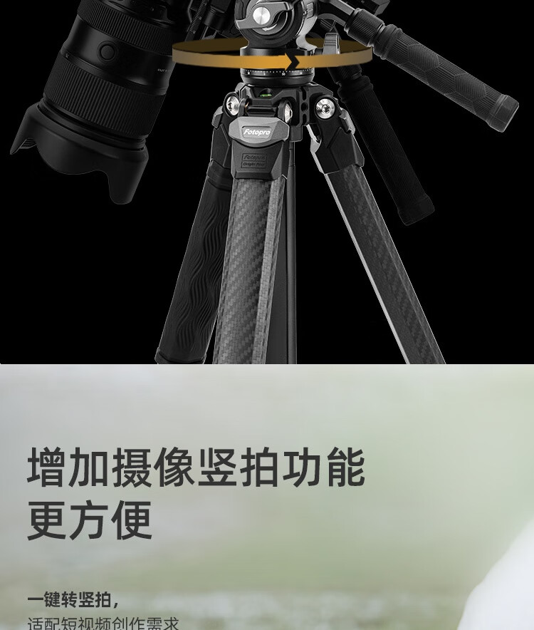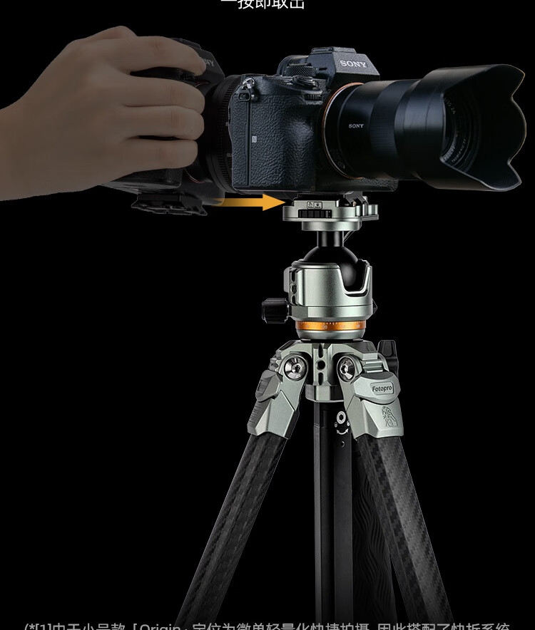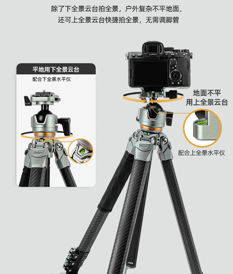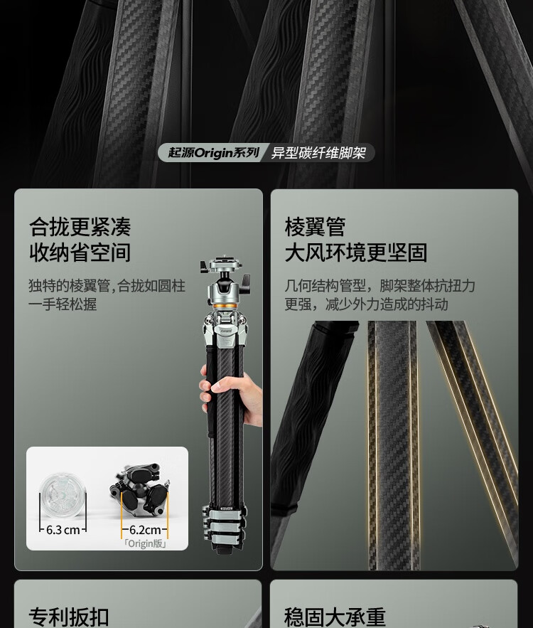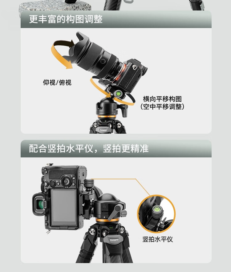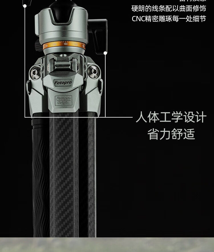 富图宝(Fotopro)起源Origin 便携纯碳纤维异形设计全景云台数码相机微单摄影三脚架 灰色