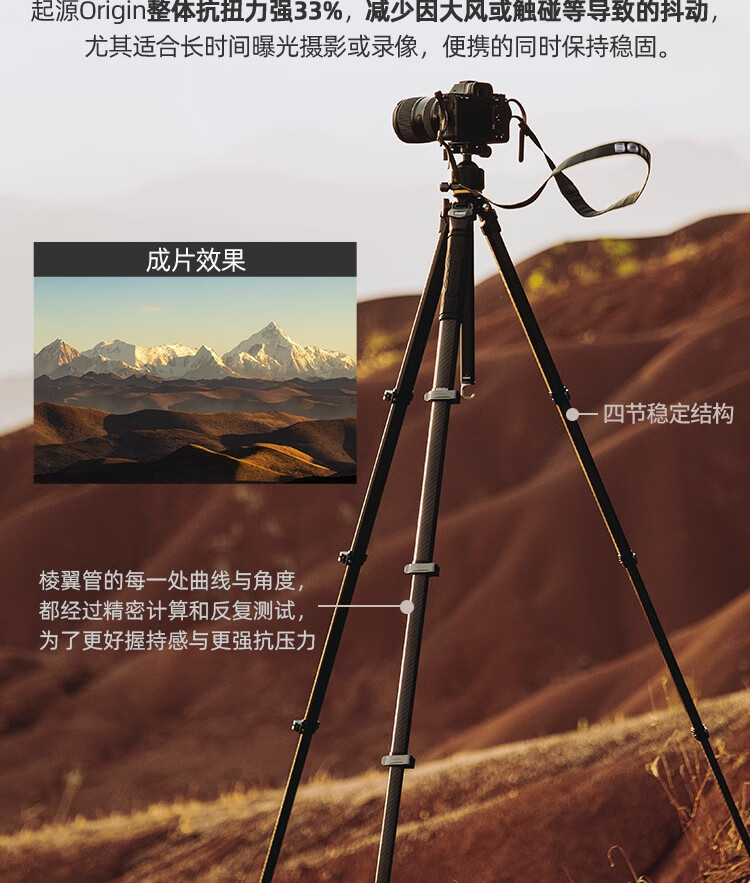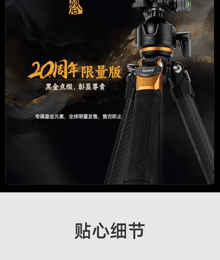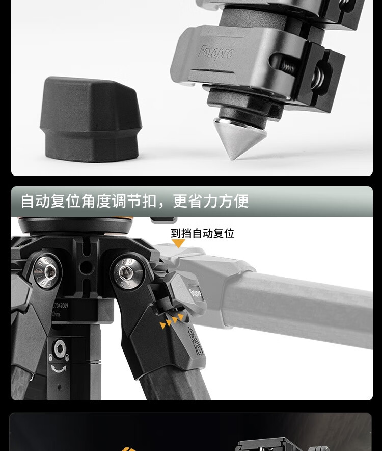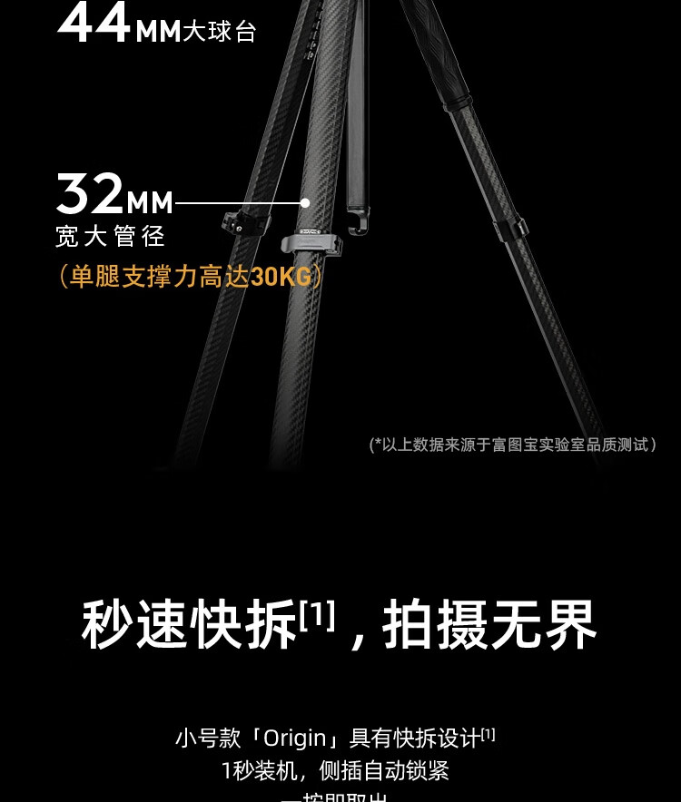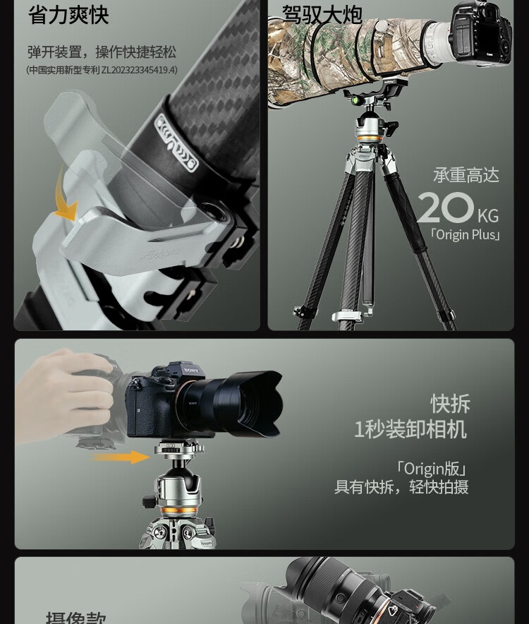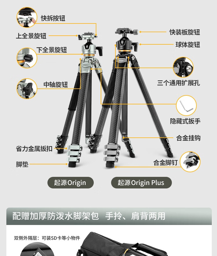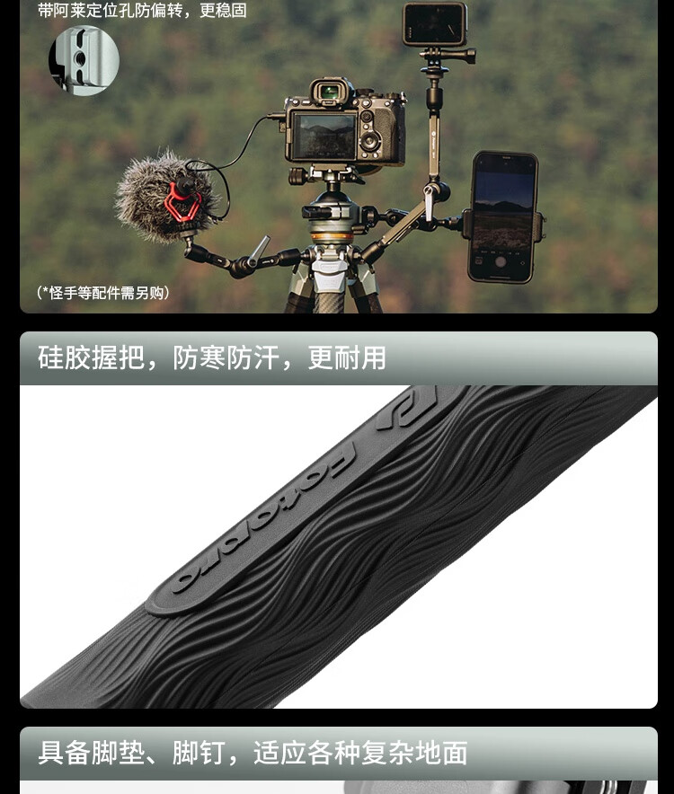 富图宝(Fotopro)起源Origin 便携纯碳纤维异形设计全景云台数码相机微单摄影三脚架 灰色