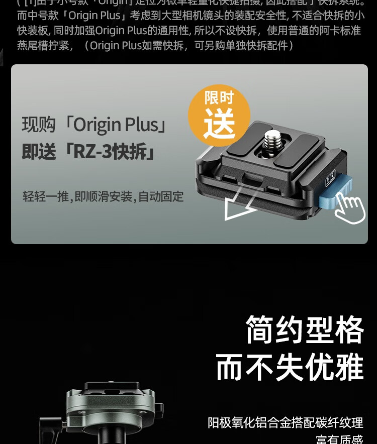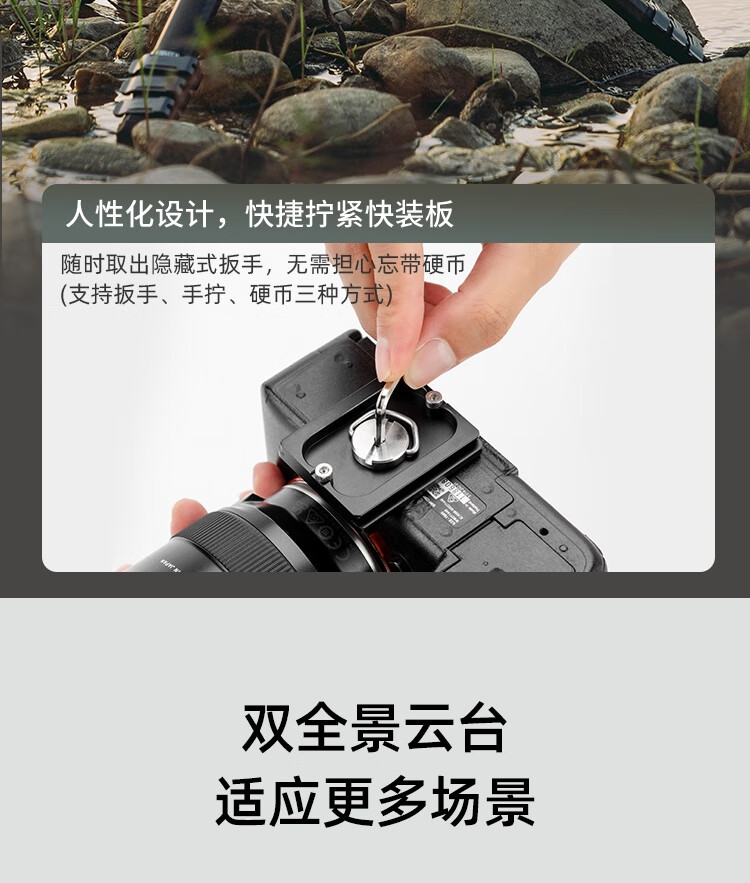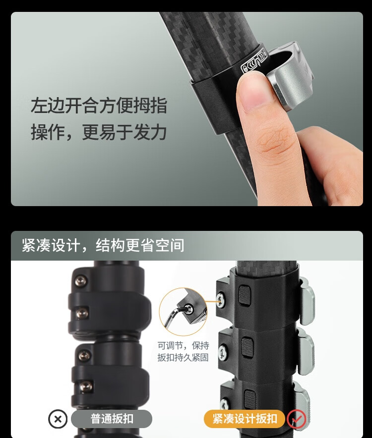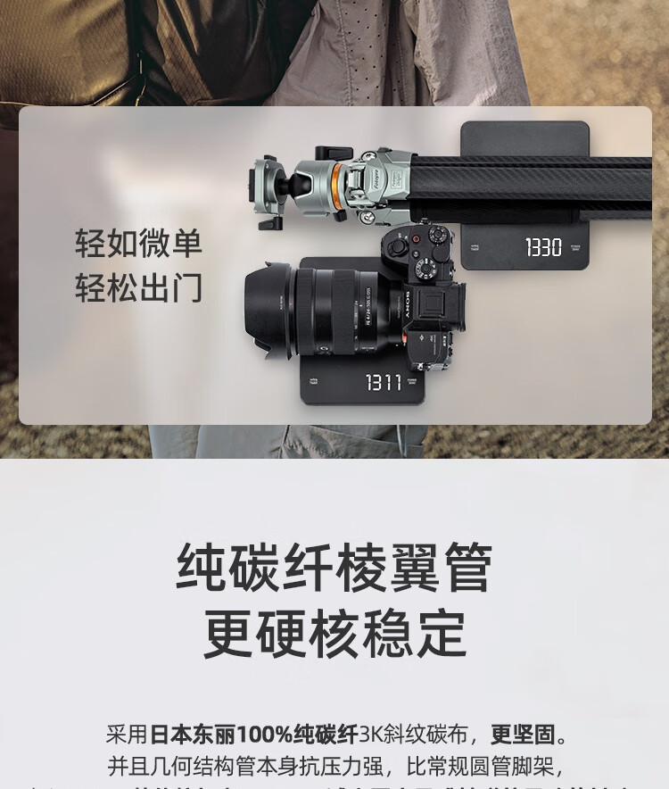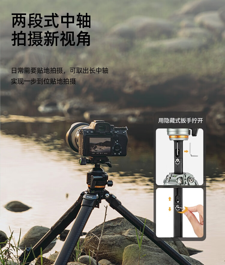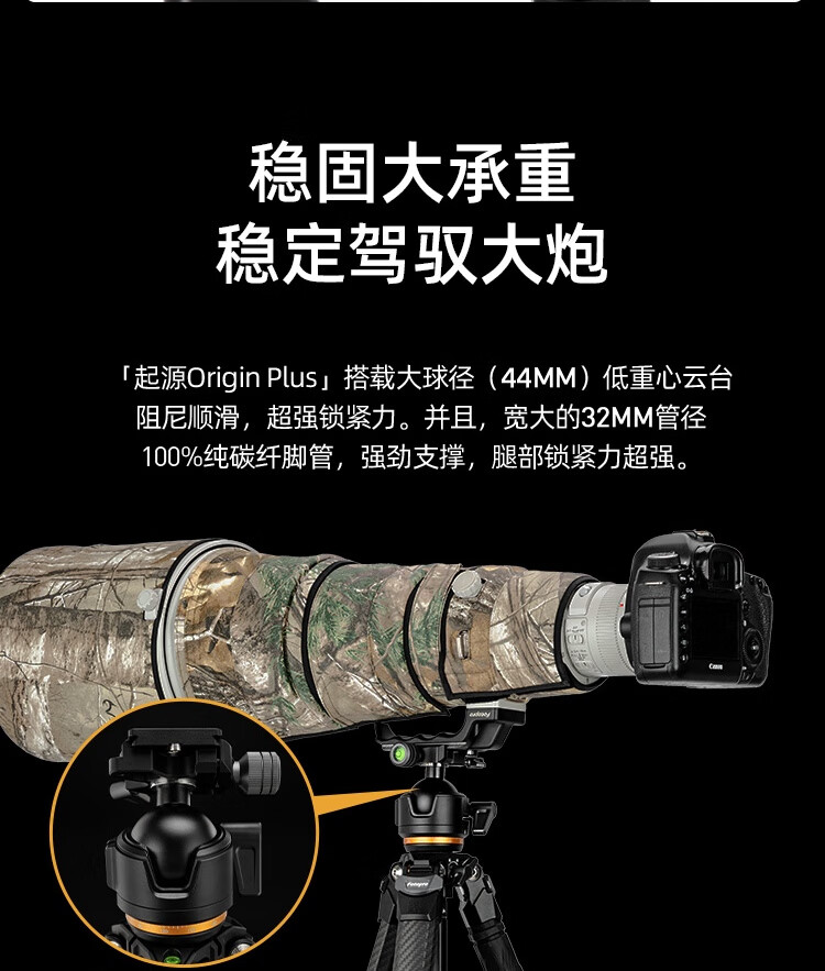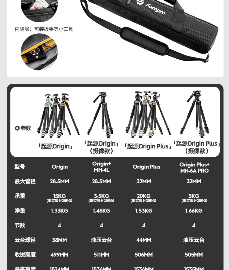 富图宝(Fotopro)起源Origin 便携纯碳纤维异形设计全景云台数码相机微单摄影三脚架 灰色
