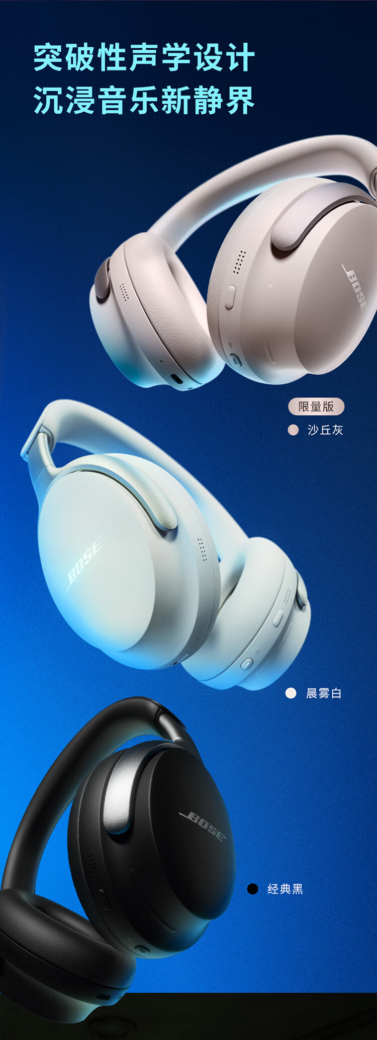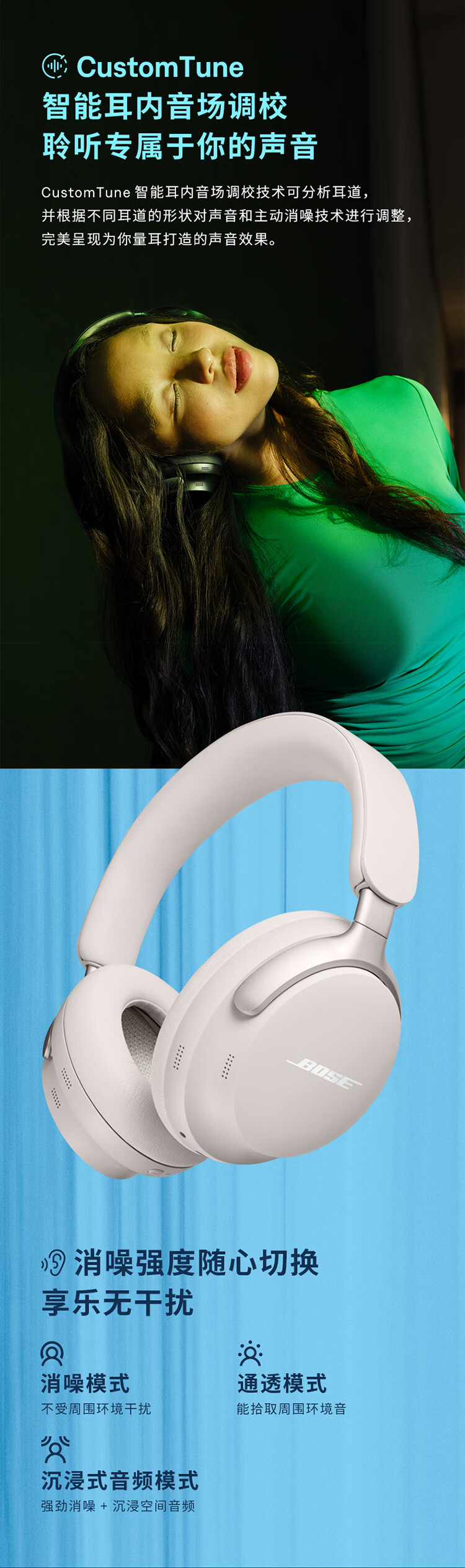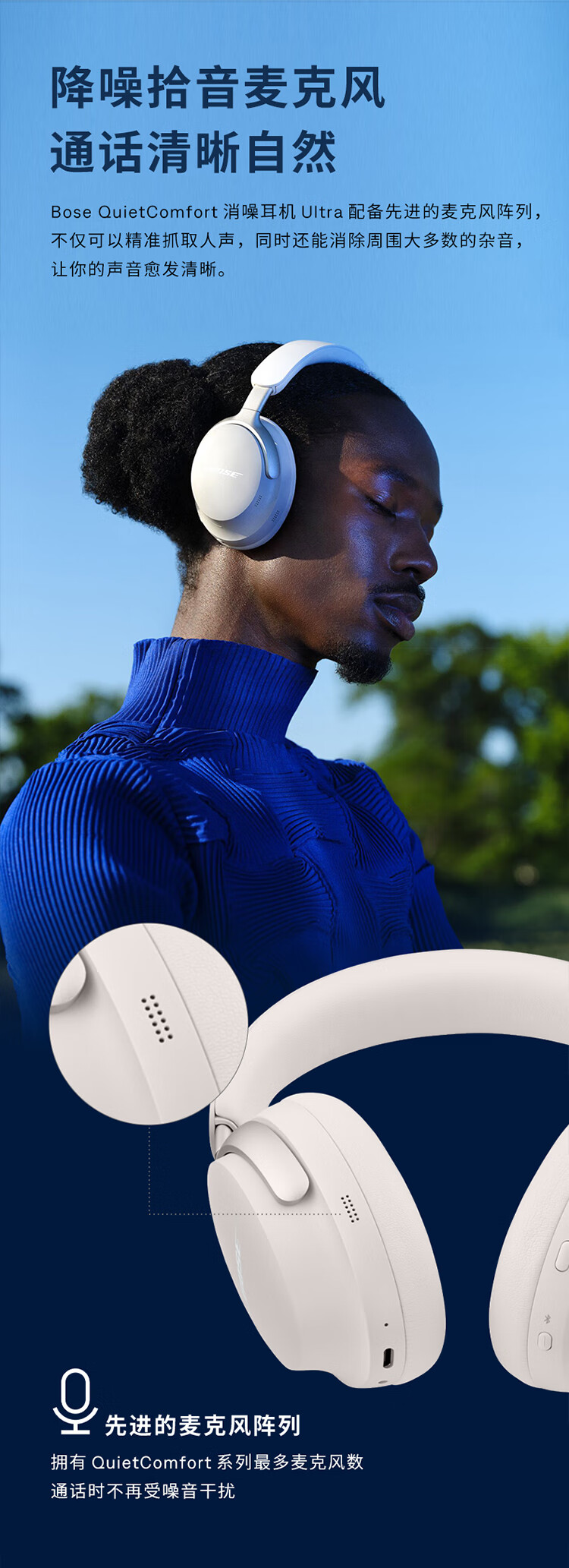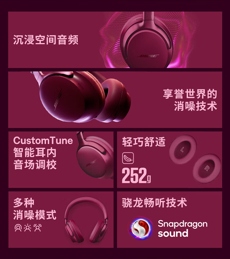 Bose【王鹤棣同款】QuietComfort 消噪耳机Ultra 头戴式主动降噪耳机蓝牙耳机长久续航 沉浸空间音频 消噪耳机Ultra-晨雾白 700二代