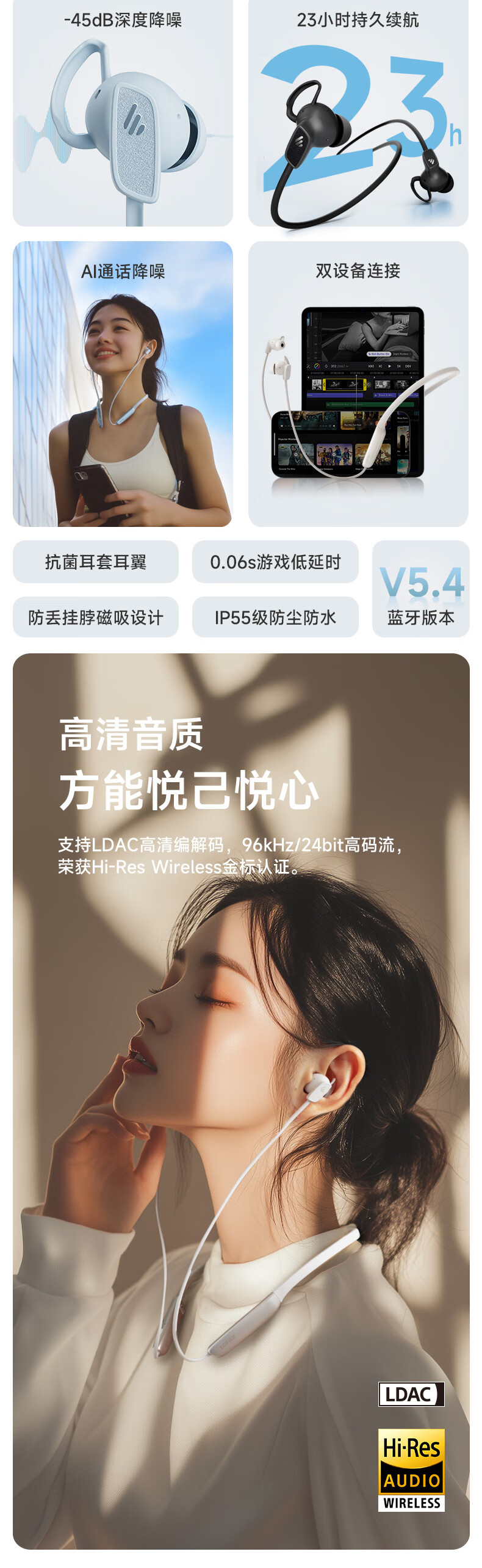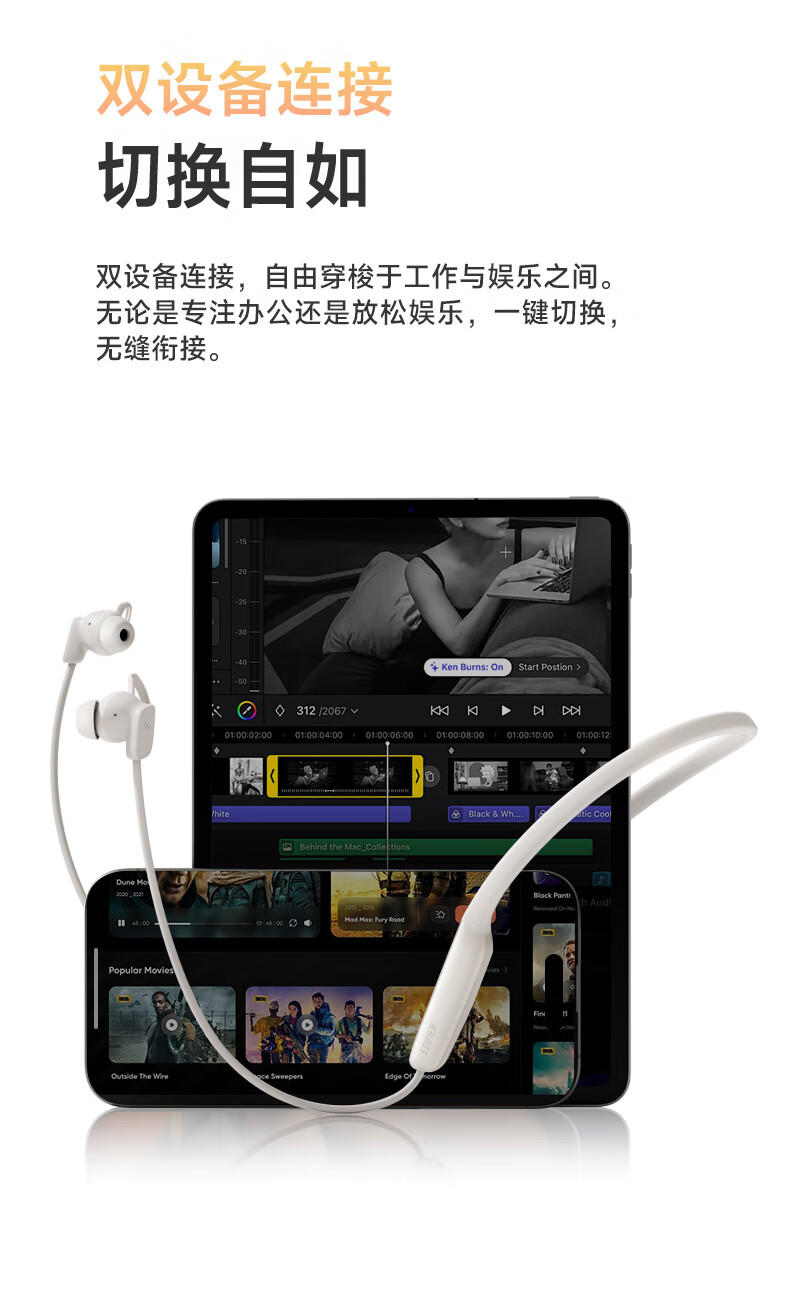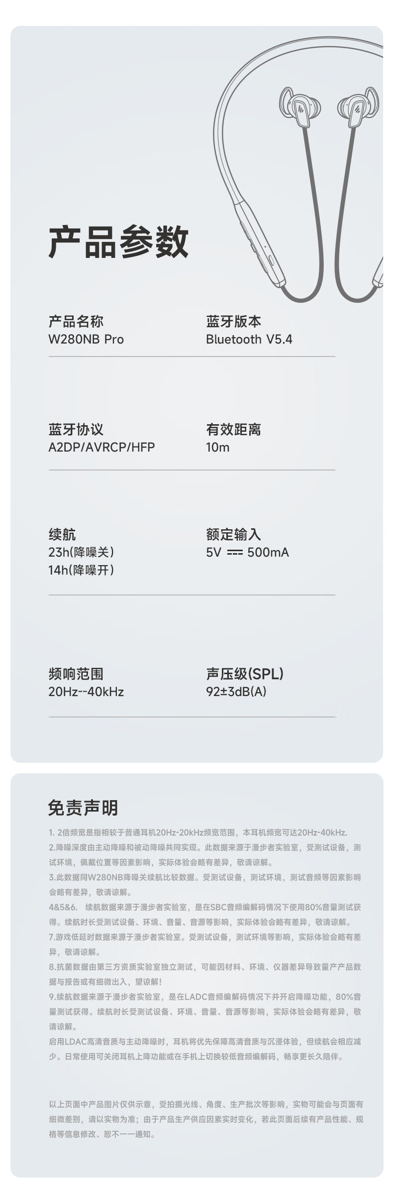 漫步者(EDIFIER)W280NB Pro 颈挂式主动降噪蓝牙耳机 蓝牙5.4 45dB降噪 适用苹果华为小米OPPO手机 典雅黑