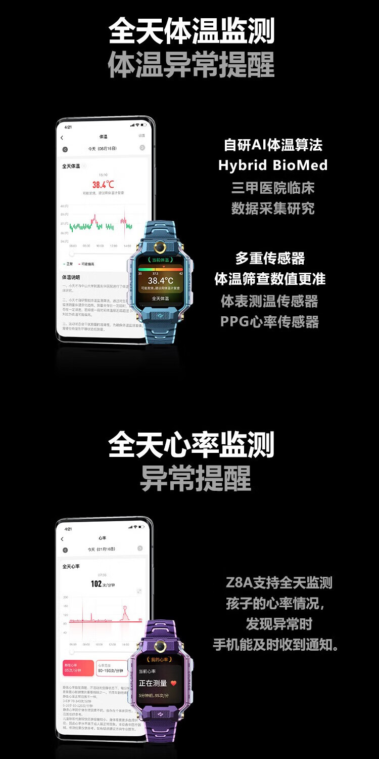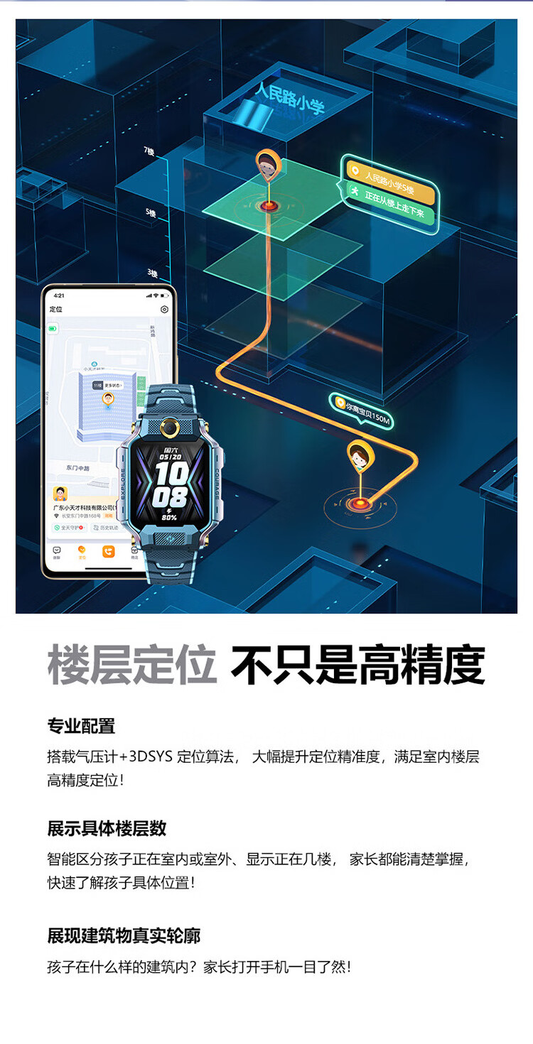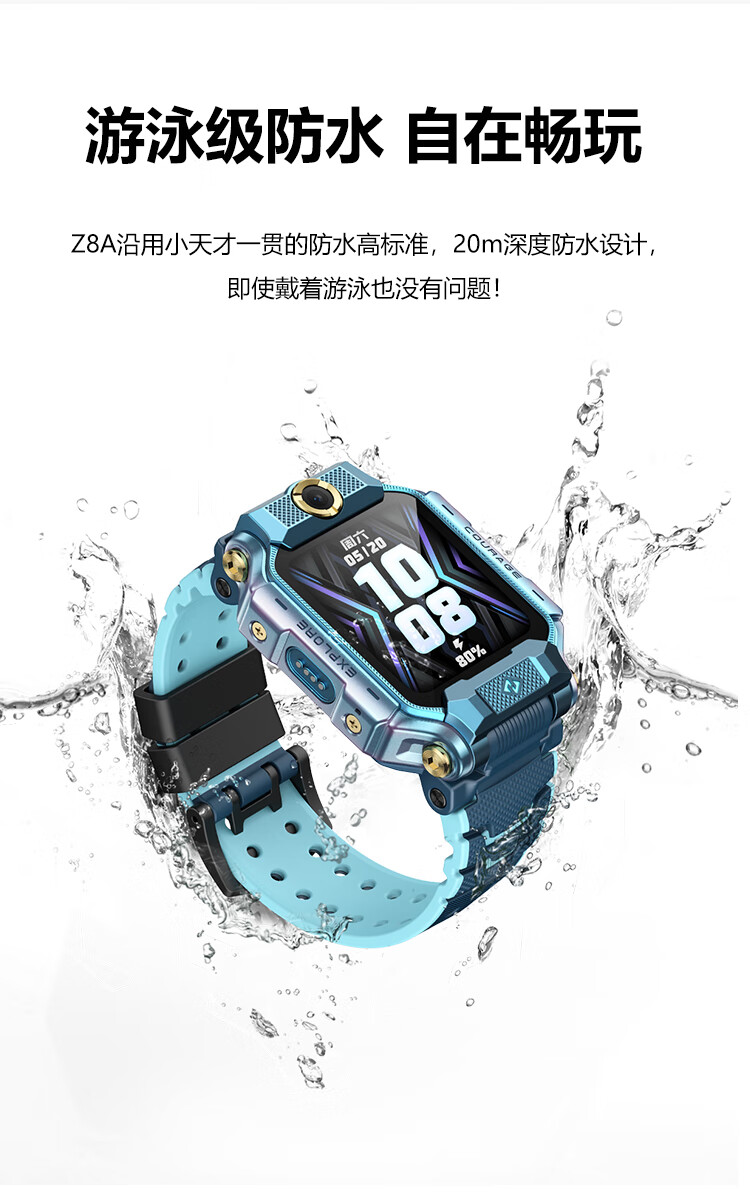 小天才 儿童电话手表Z8A 楼层定位健康监测分体双摄视频游泳级防水运动旗舰学生小学初高中手表Z7S升级款 Z8A山湖蓝【咨询客服享好礼】