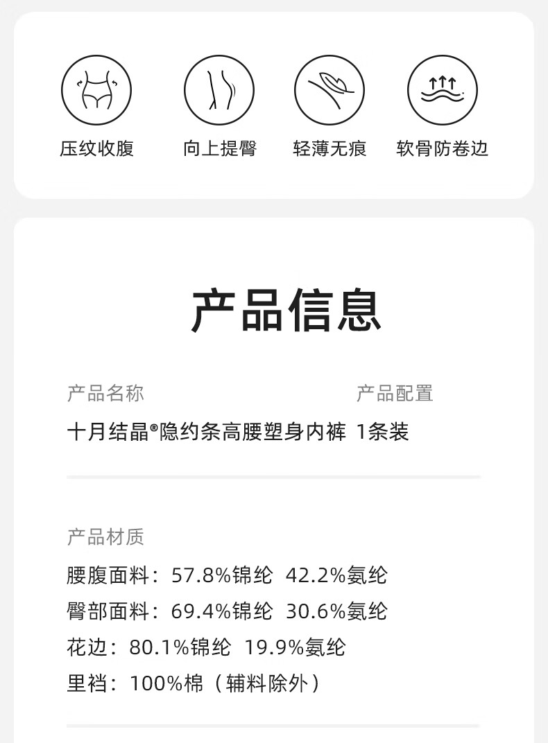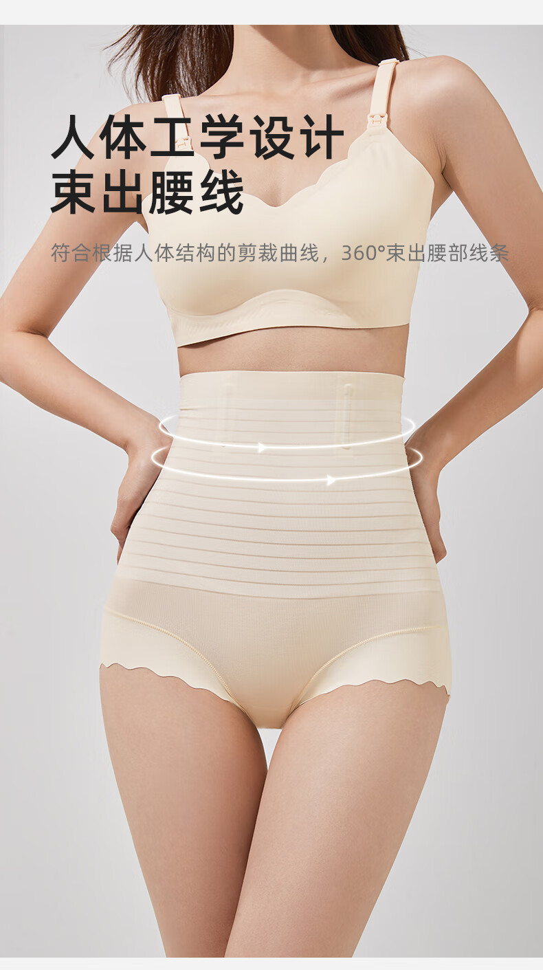 十月结晶产后收腹塑身内裤提臀高腰无痕孕妇透气收小肚子美体裤免穿内裤 【米色】 1条装 XXL