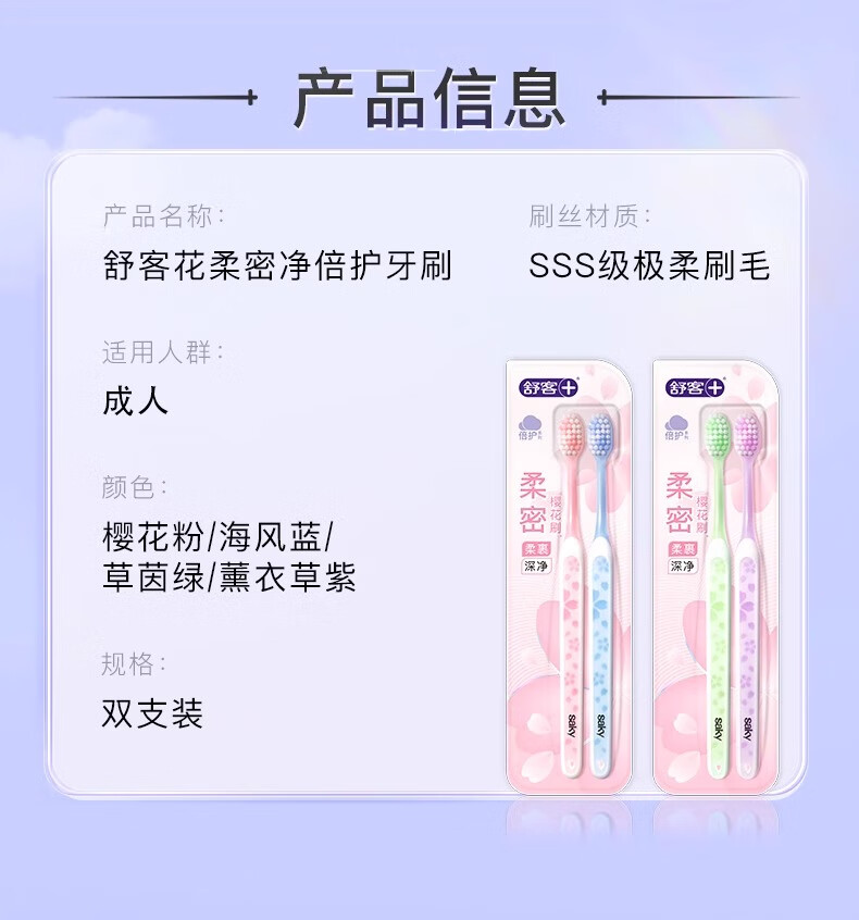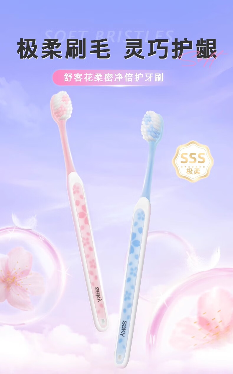 舒客非舒克牙膏牙刷组合套装炭丝柔密樱花刷软毛情侣成人家用家庭实惠 【尝鲜装】樱花倍护柔密牙刷1盒