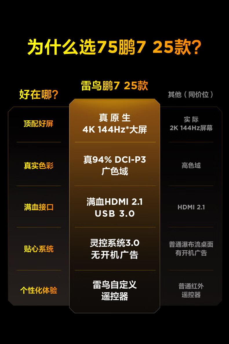 FFALCON雷鸟电视 75鹏7 25款 75英寸 全通道288Hz高刷 满血HDMI2.1 家电国家补贴电视75S387C Pro-J