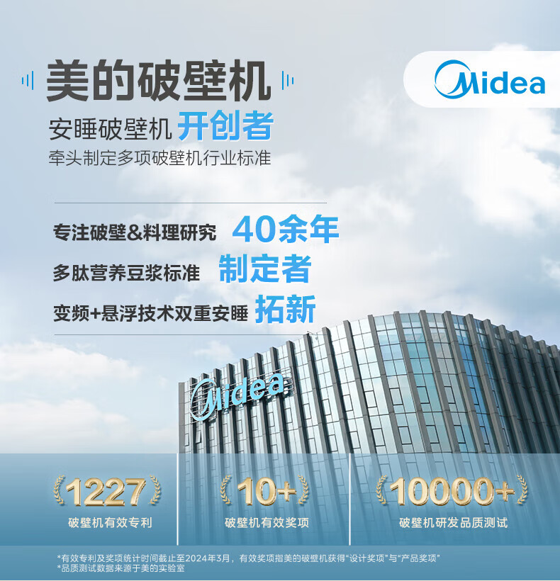 美的(Midea)破壁机家用小型1-2人 1.2L容量多功能免滤豆浆机 五谷杂粮米糊料理机辅食机榨汁机 【双豆浆模式】MJ-PB50G2-001