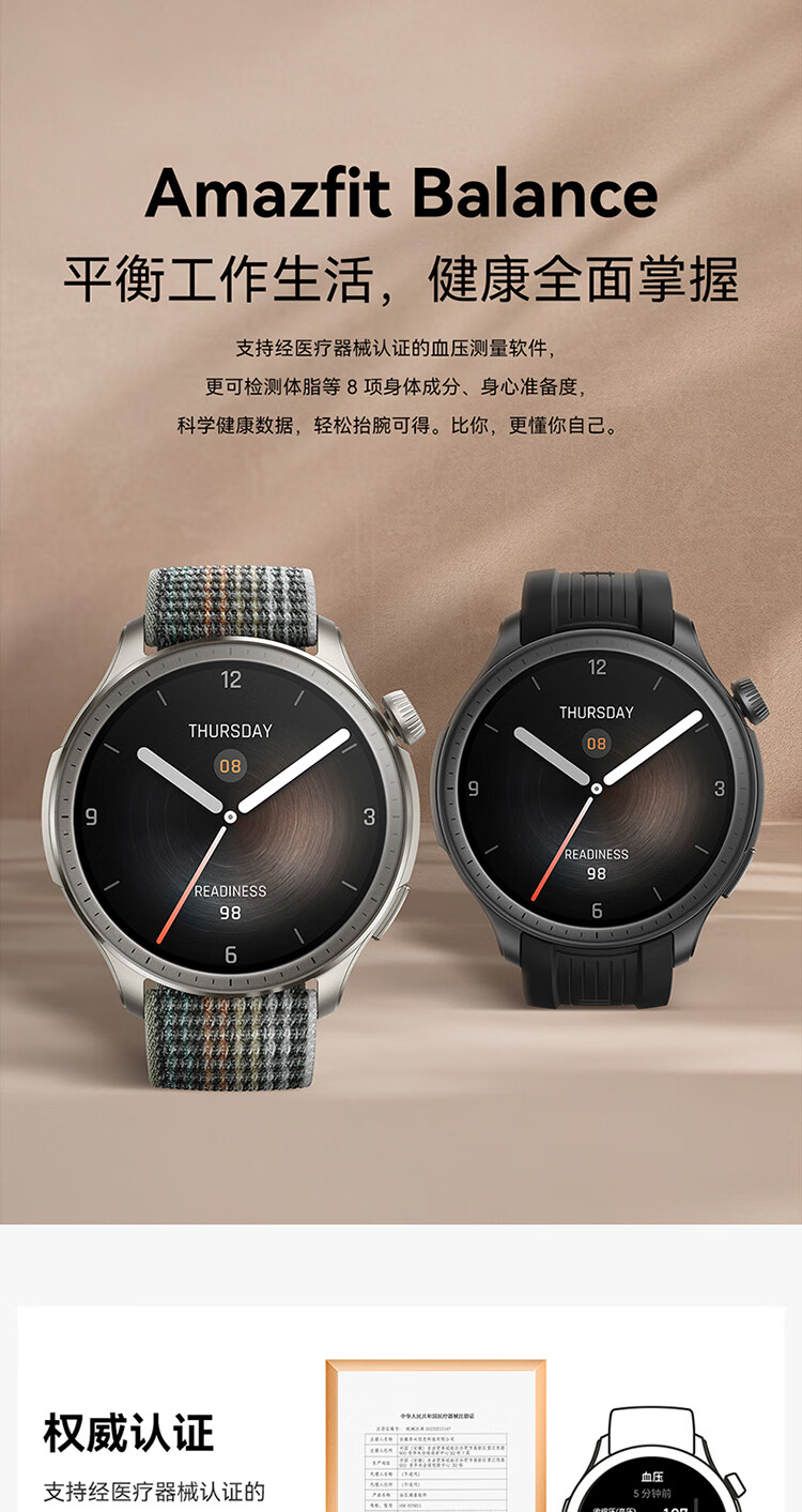 AMAZFIT华米Balance 落日余晖46mm智能手表 血压血氧心率跑步游泳成人户外运动男女 七夕情人节礼物电子表