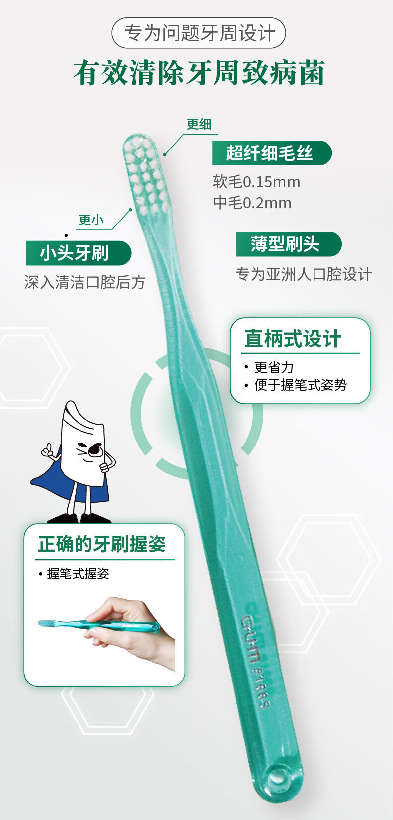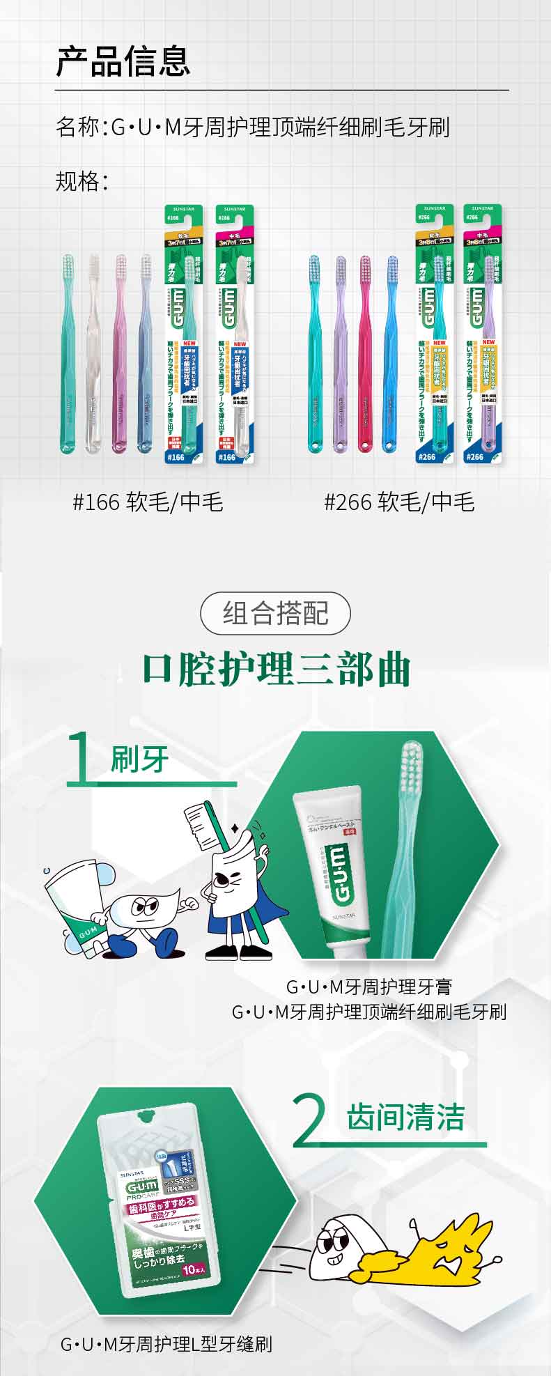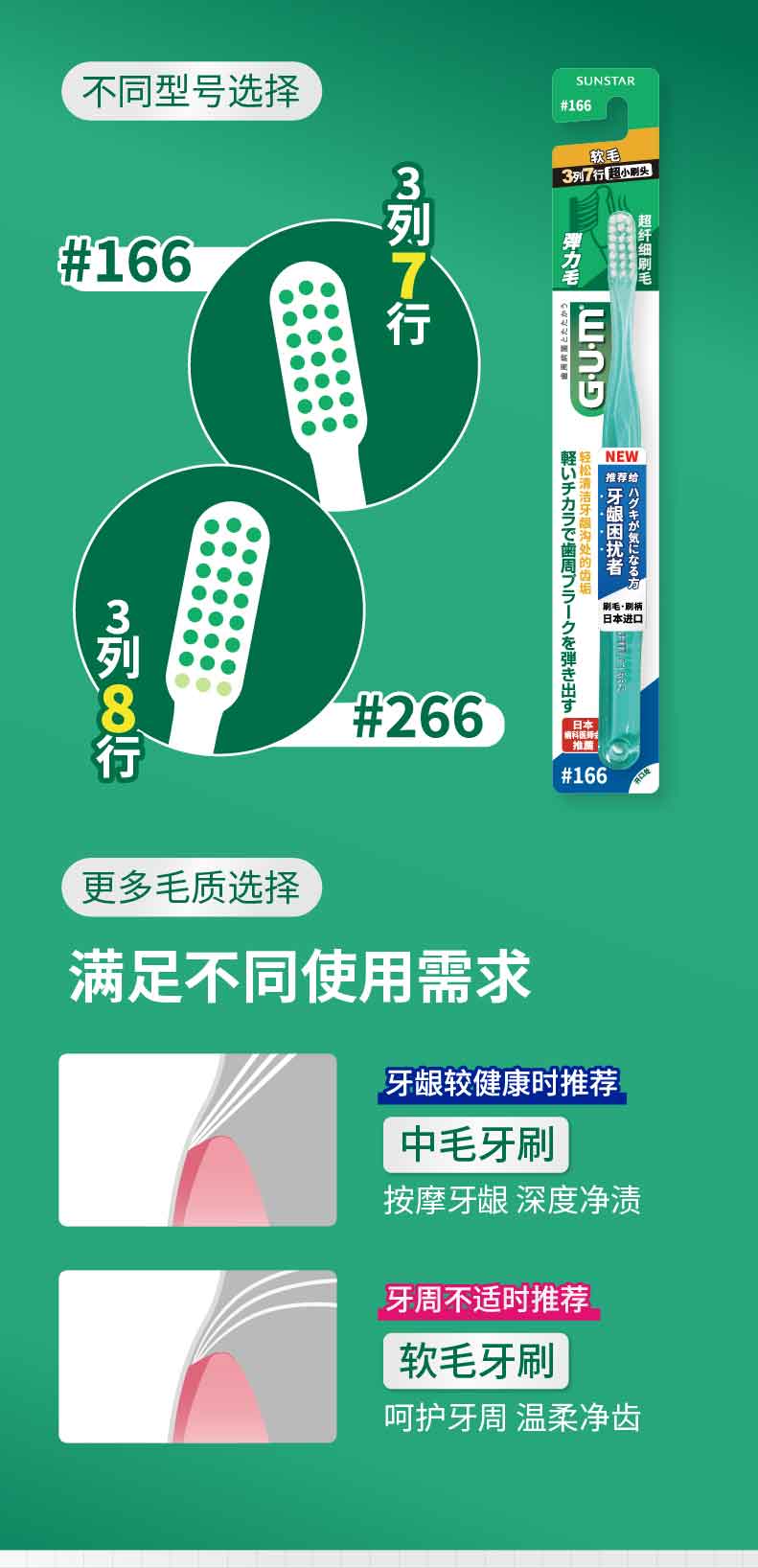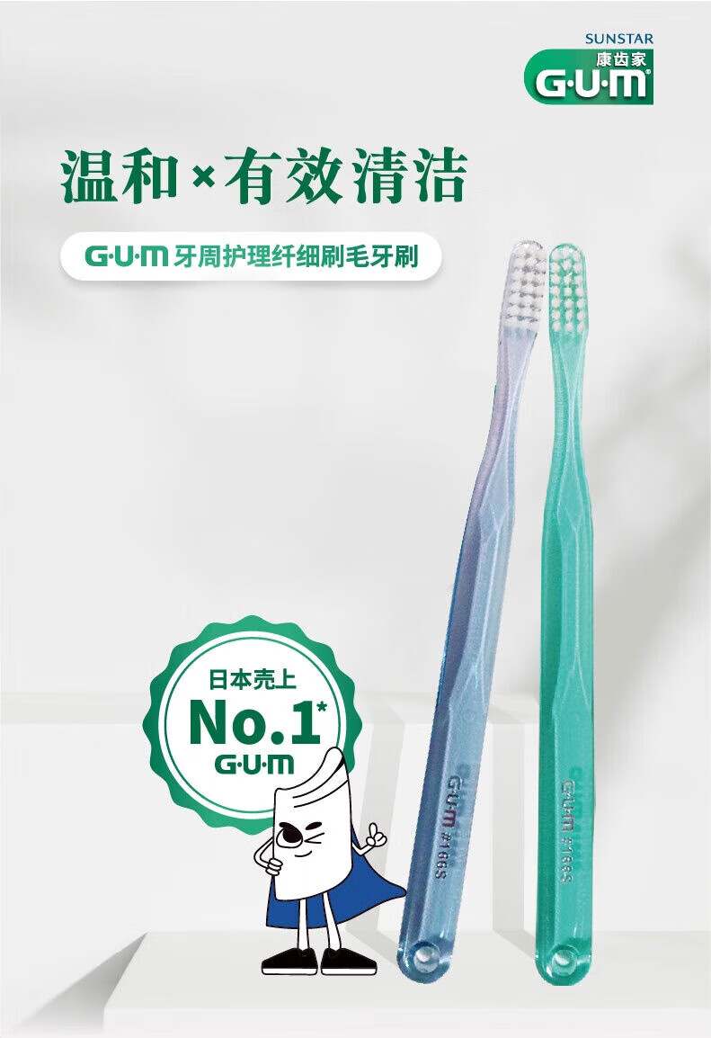 G·U·M齿家#266中毛牙刷深层洁齿成人牙刷1支装(颜色随机发)