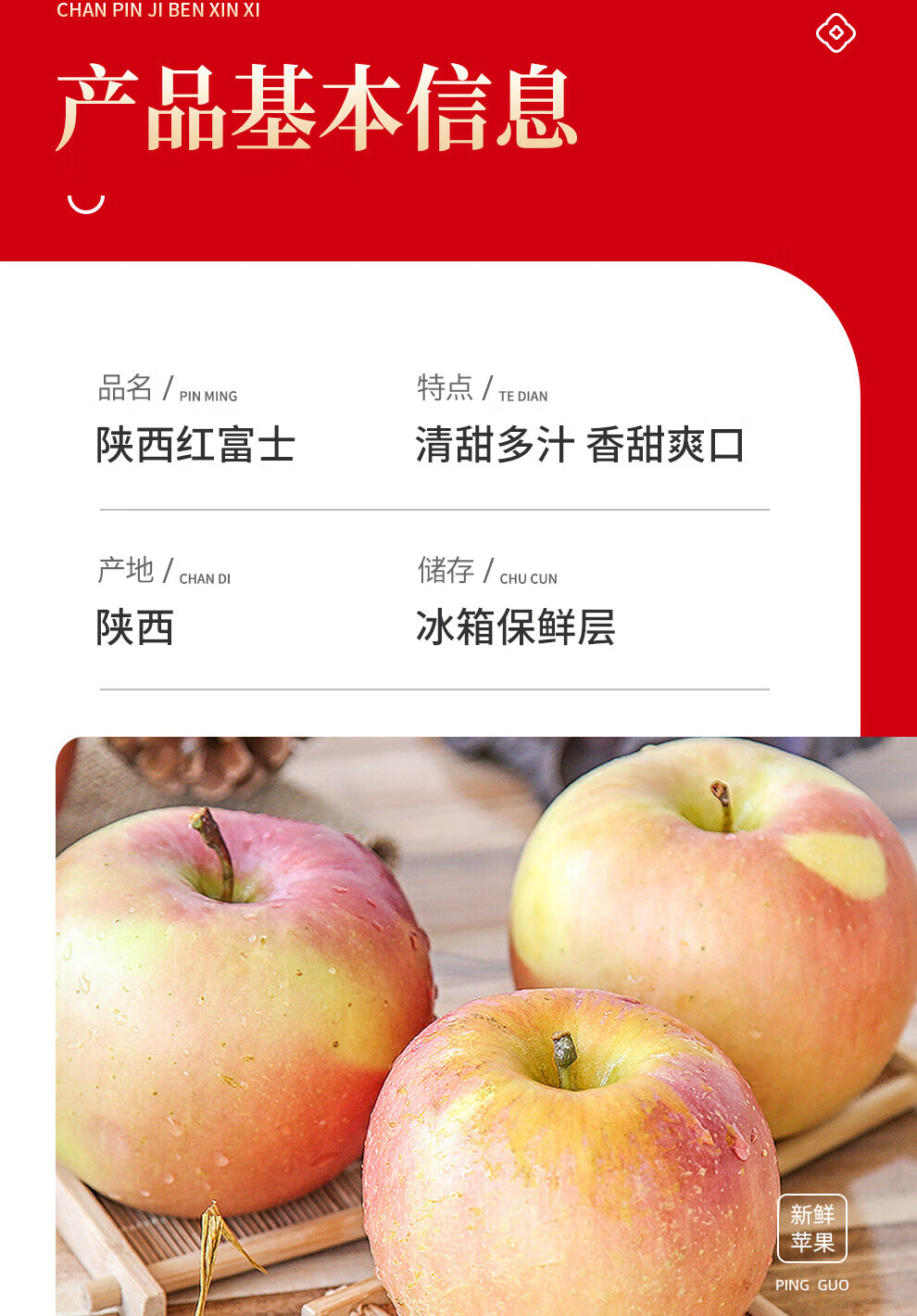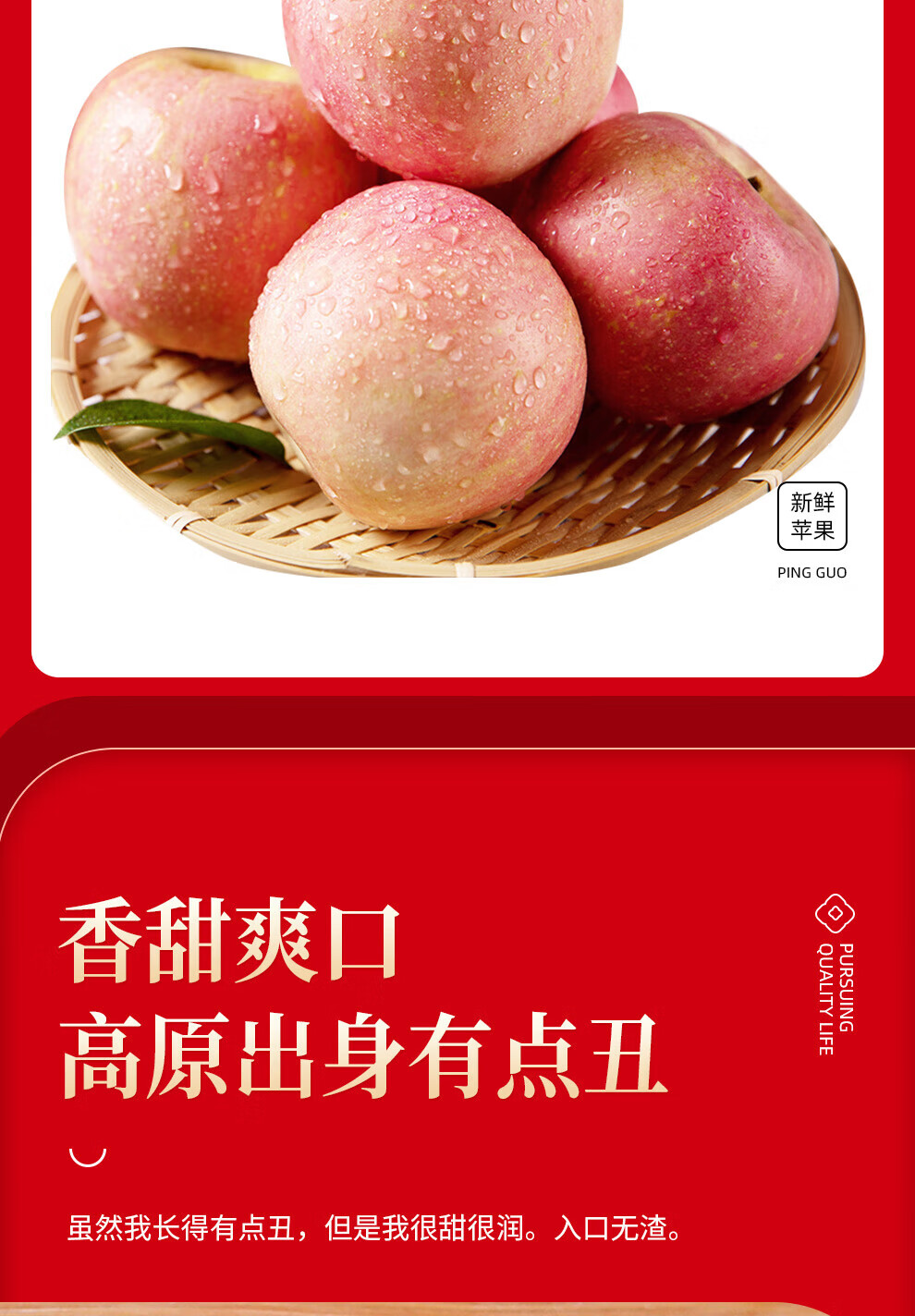 京愿陕西红富士苹果脆甜丑苹果时令平果新鲜冰糖心苹果水果生鲜 优选净重8.5斤装