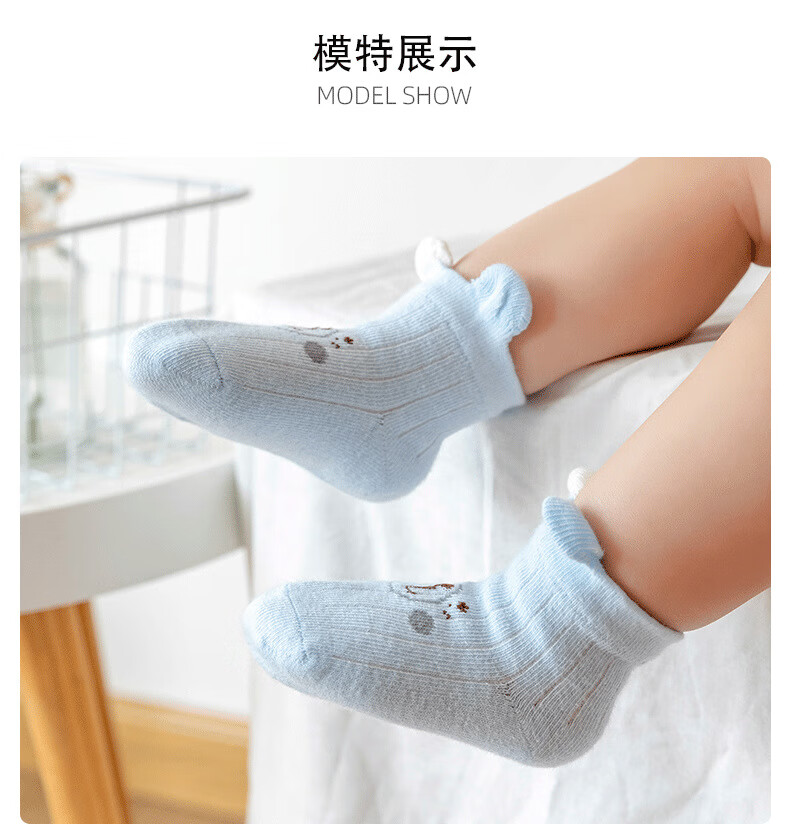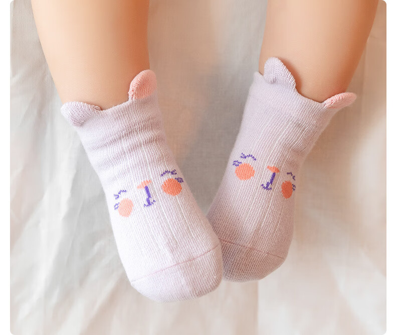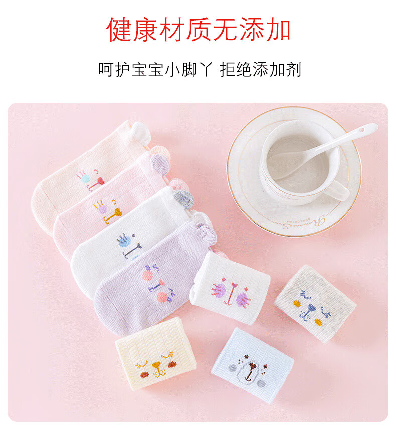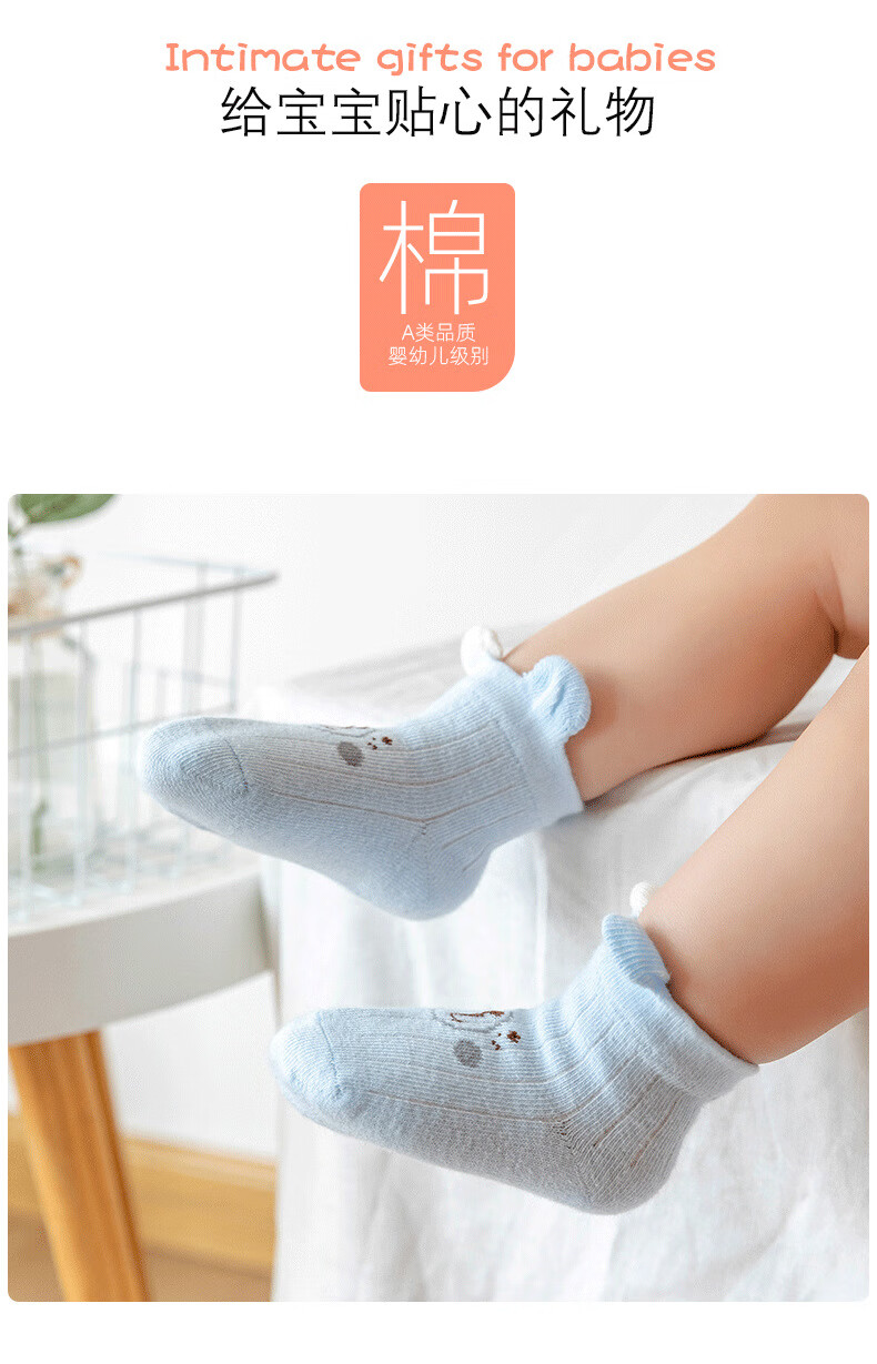 彩虹房子婴儿袜子春秋新生儿袜子0一3月秋冬初生男女宝宝1岁2薄款中筒棉袜 可爱熊-4双装 0-3月 (S) 参考-脚长8cm内
