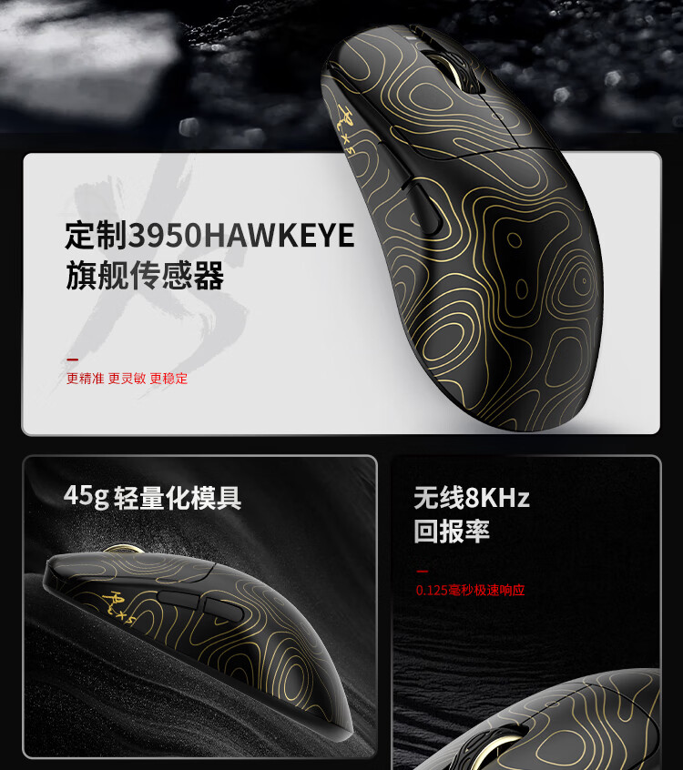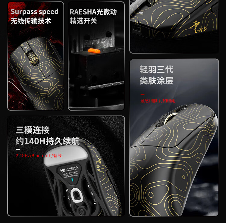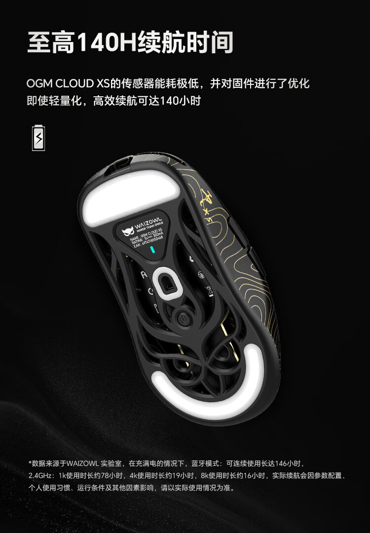 WAIZOWL唯卓 云Cloud XS 3950无线鼠标 对称游戏鼠标 轻量化三模蓝牙 8k电竞鼠标 办公游戏 瓦洛兰特csgo CloudXS丨蔷薇+8k接收器