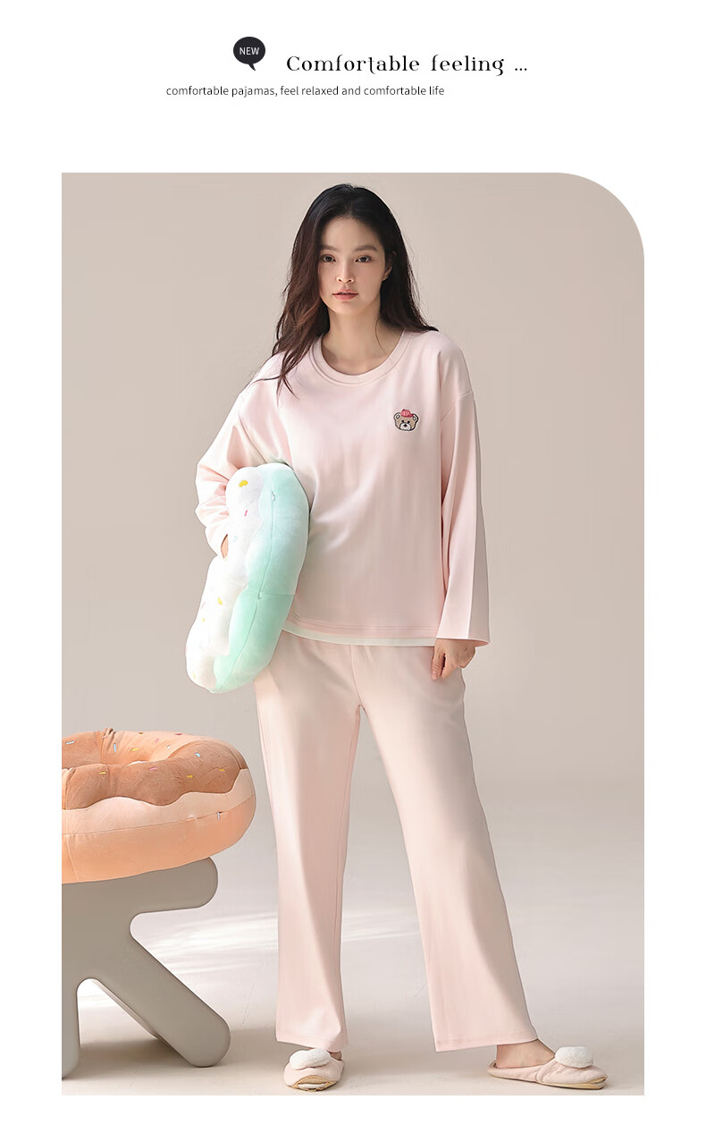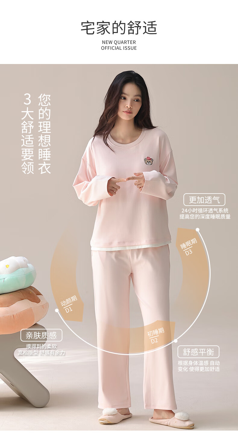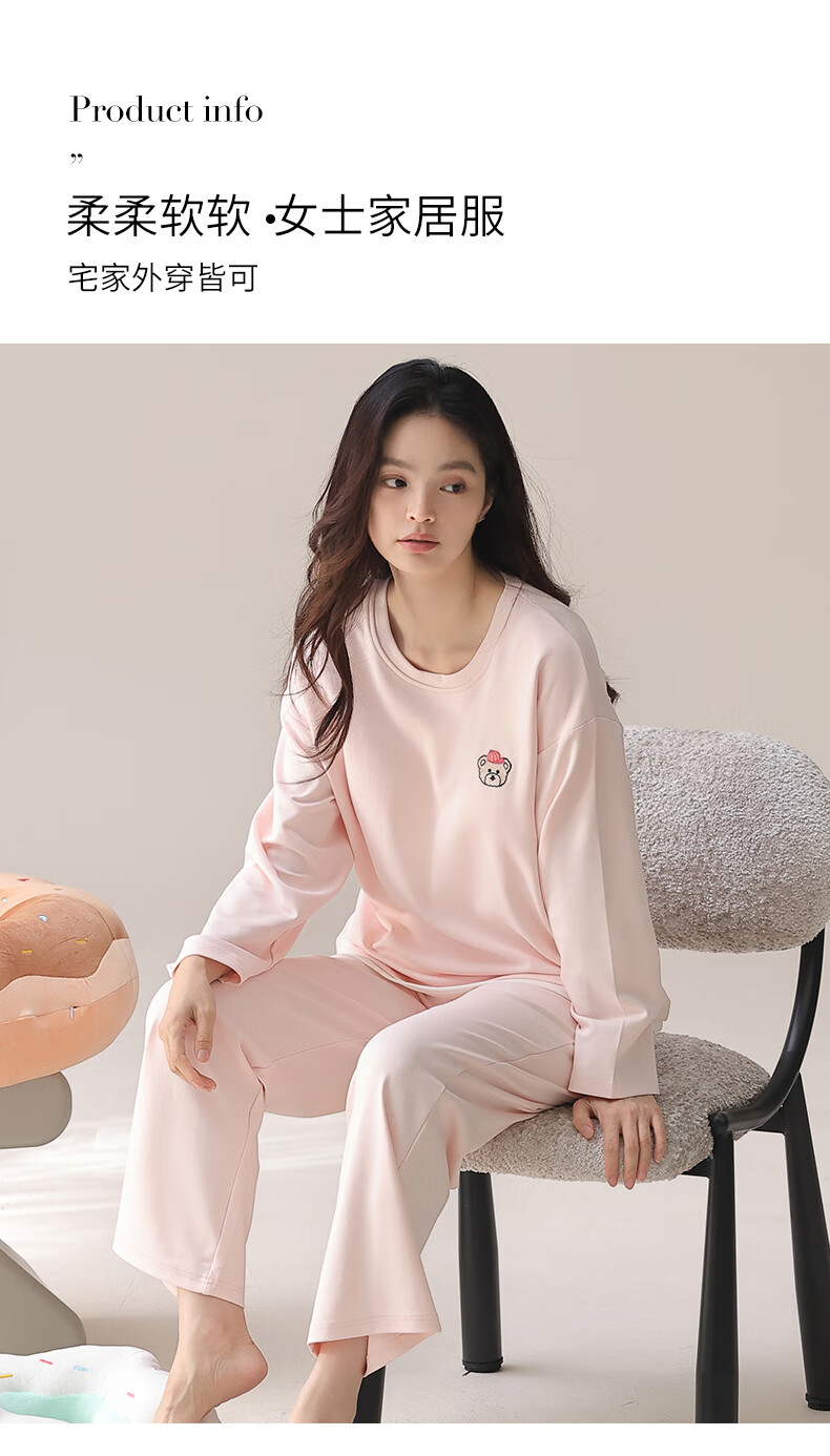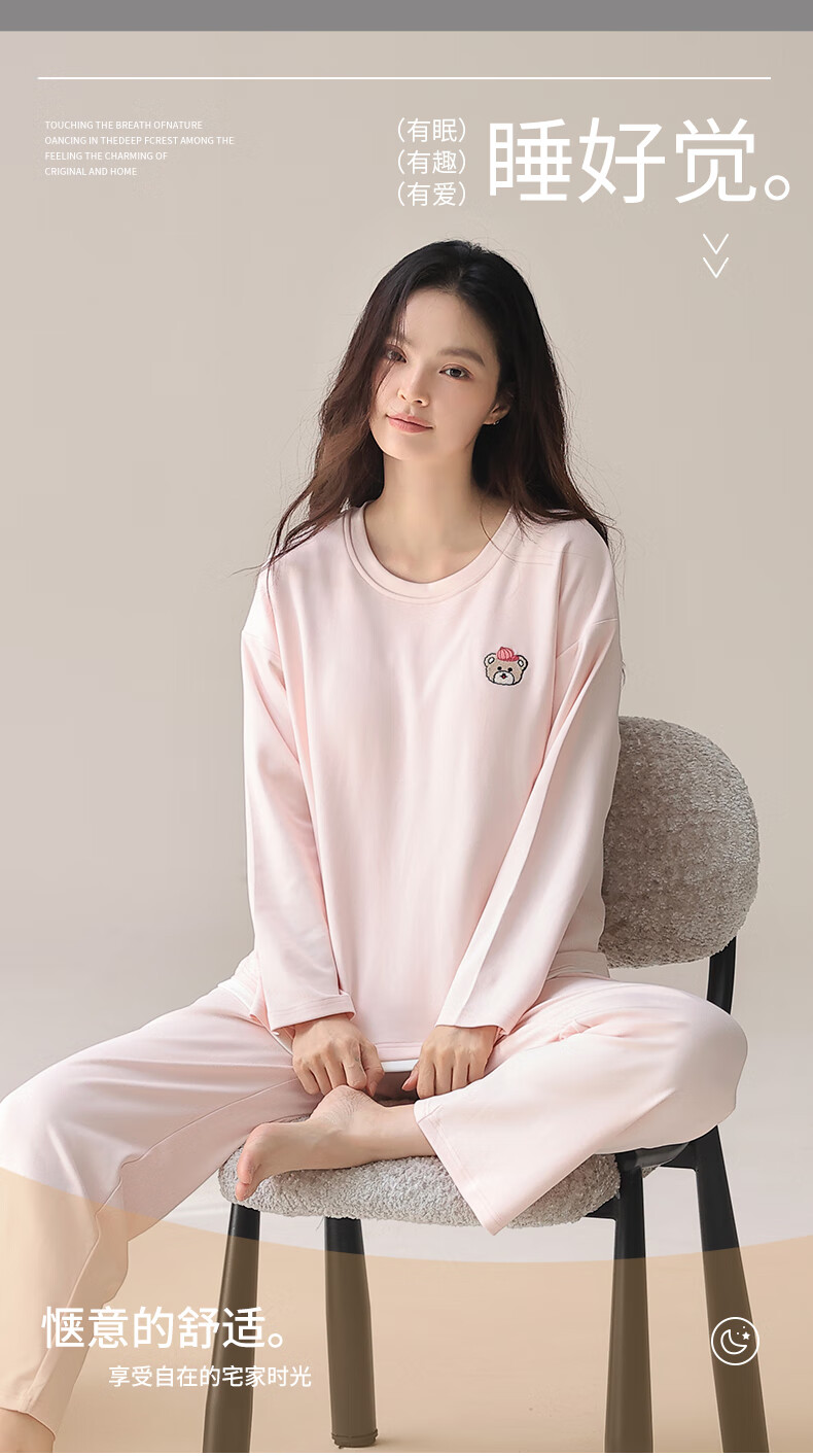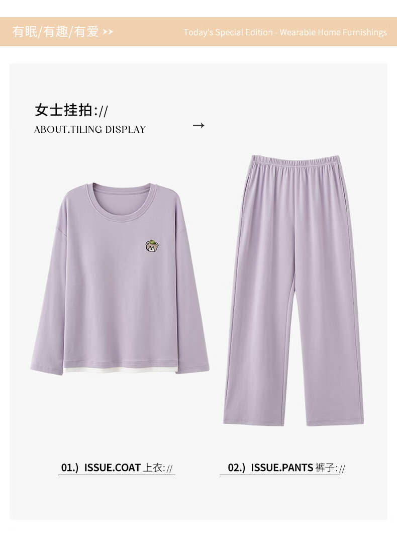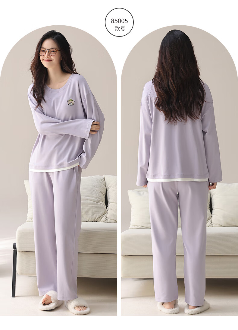 芬腾睡衣女【100%纯棉】2025秋冬新款长袖睡衣女士休闲松弛家居服套装 紫色 L