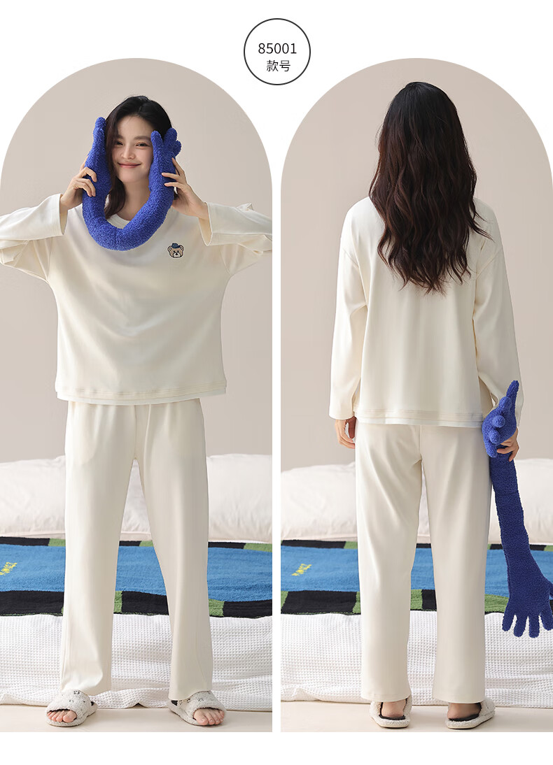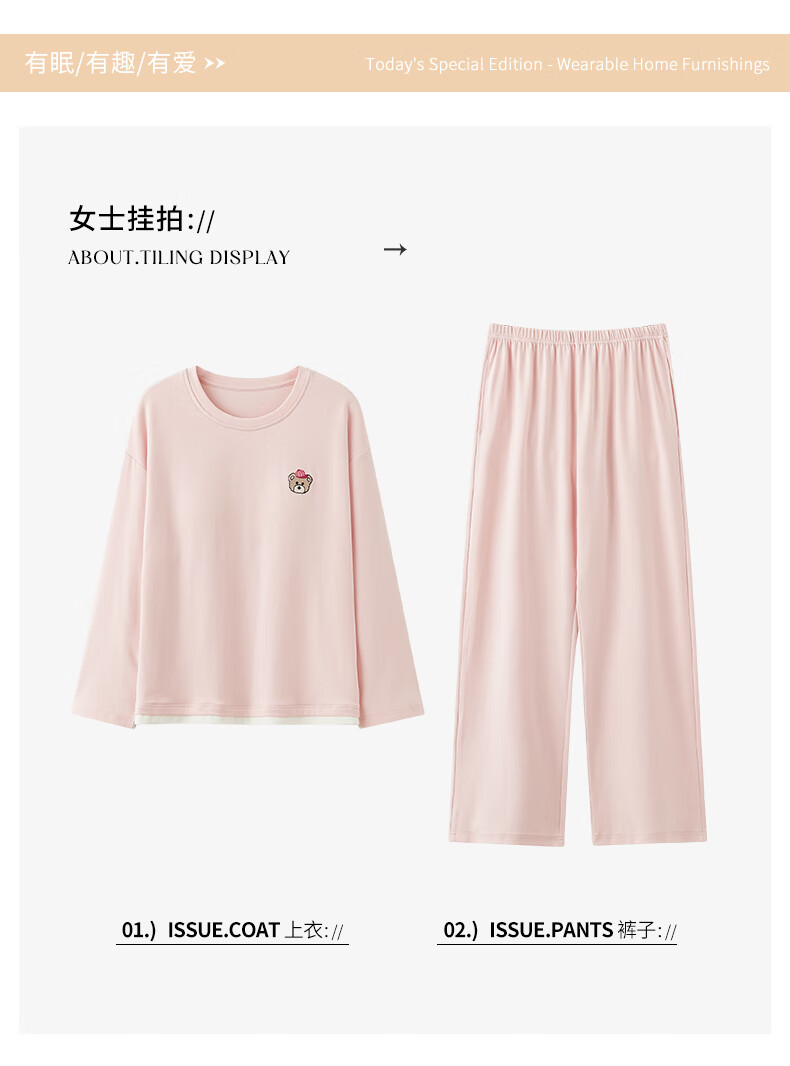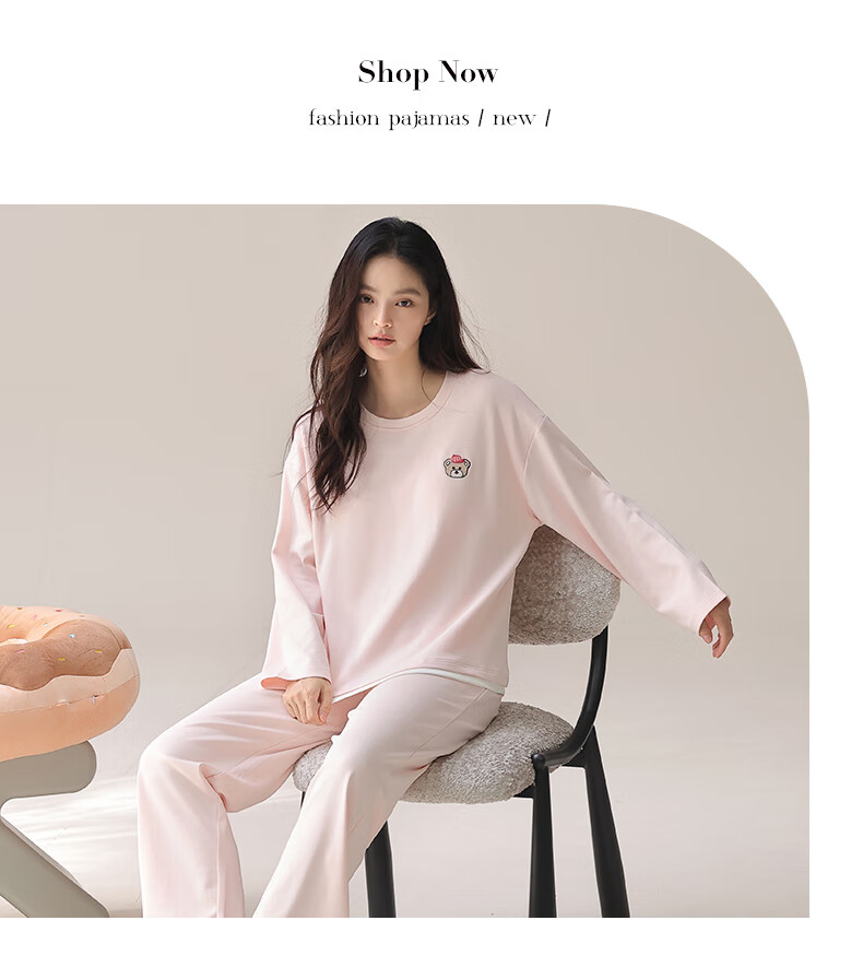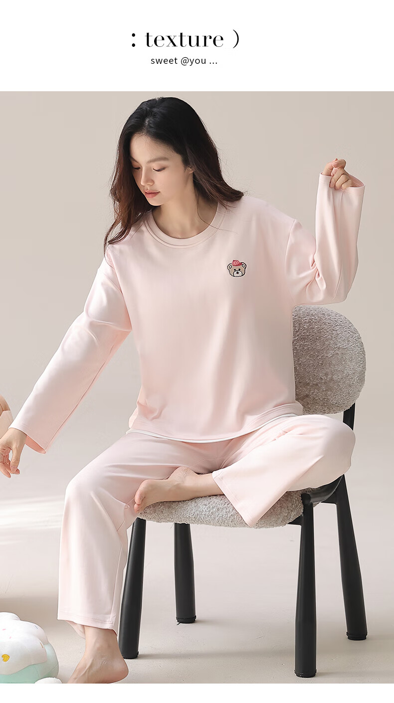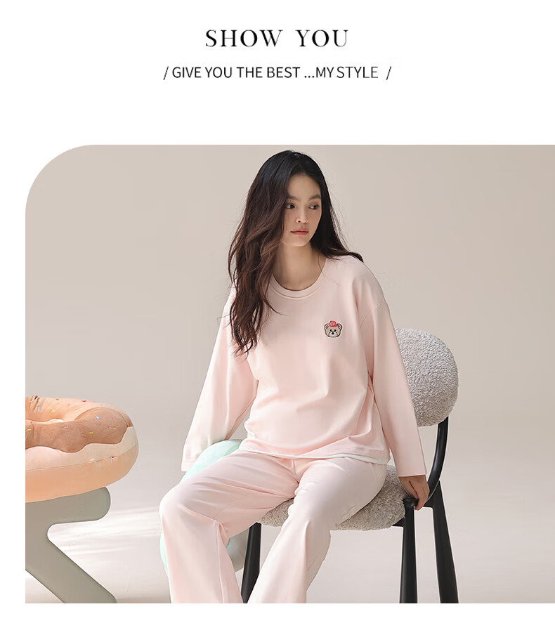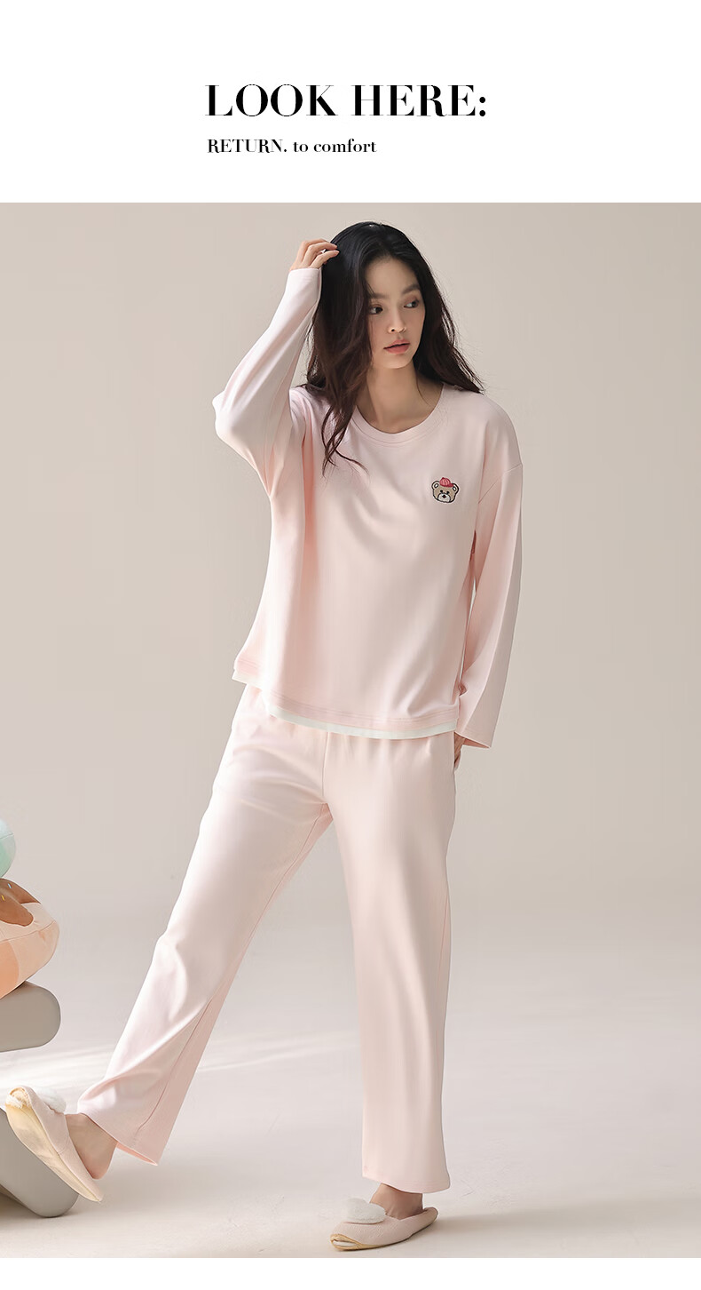 芬腾睡衣女【100%纯棉】2025秋冬新款长袖睡衣女士休闲松弛家居服套装 紫色 L
