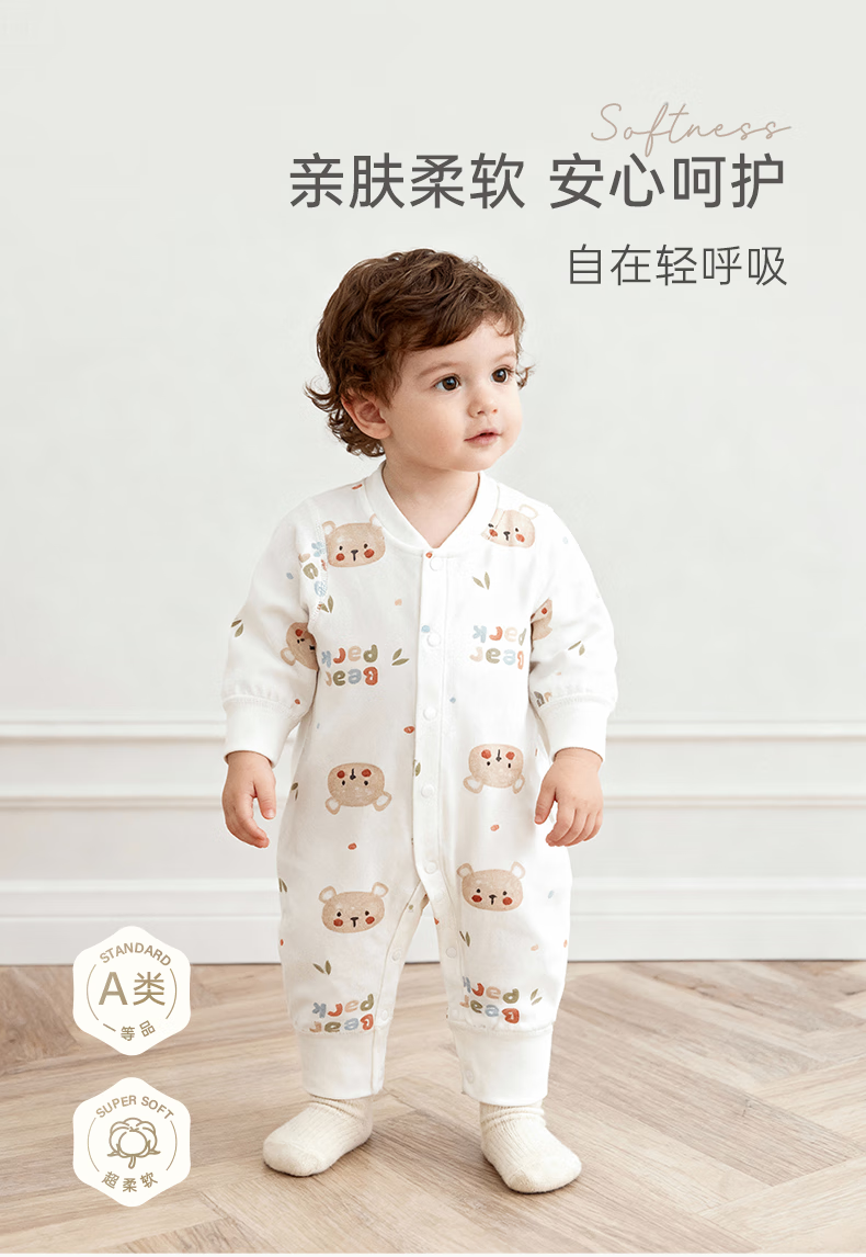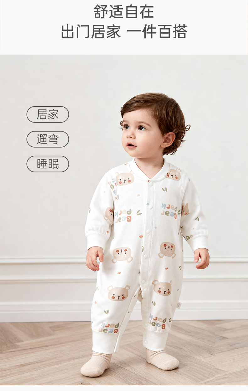 乖奇熊婴儿衣服纯棉连体衣秋冬季新生儿睡衣宝宝家居哈衣爬服秋天装a类