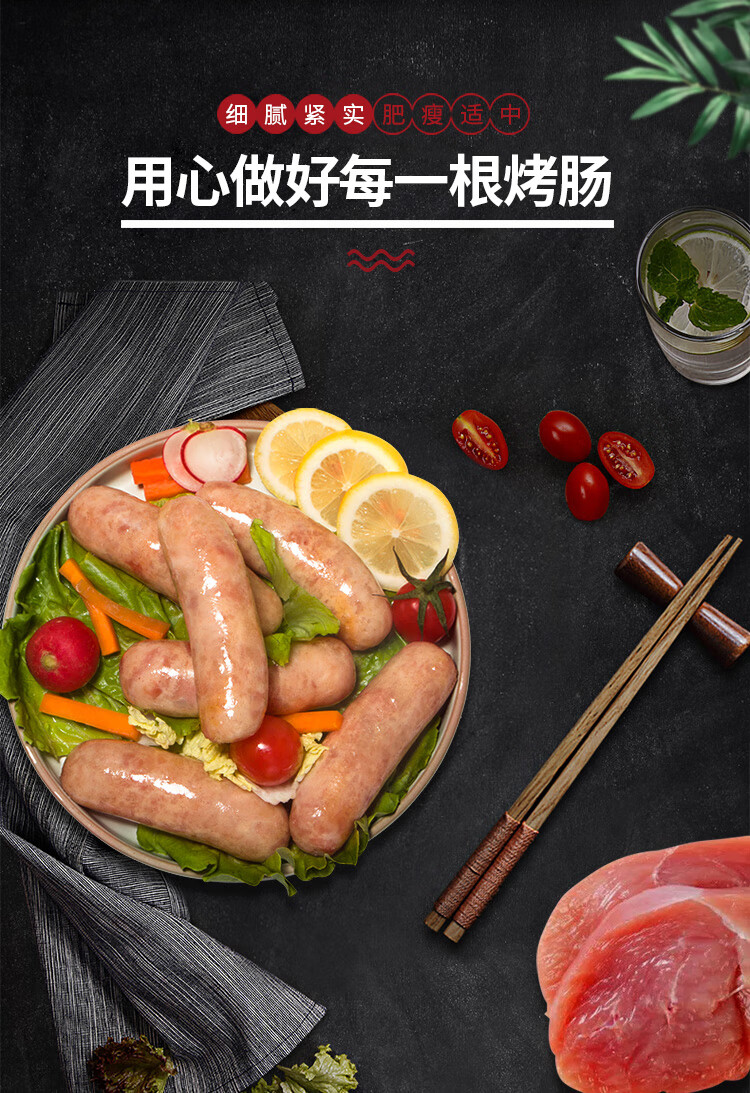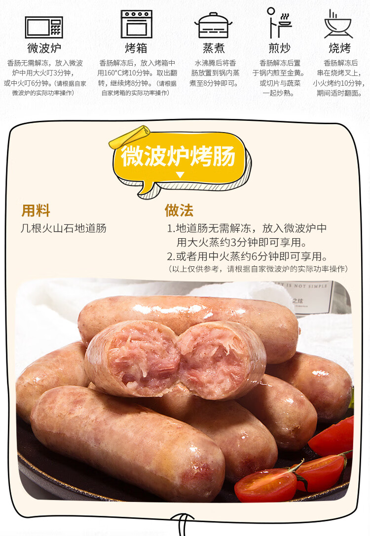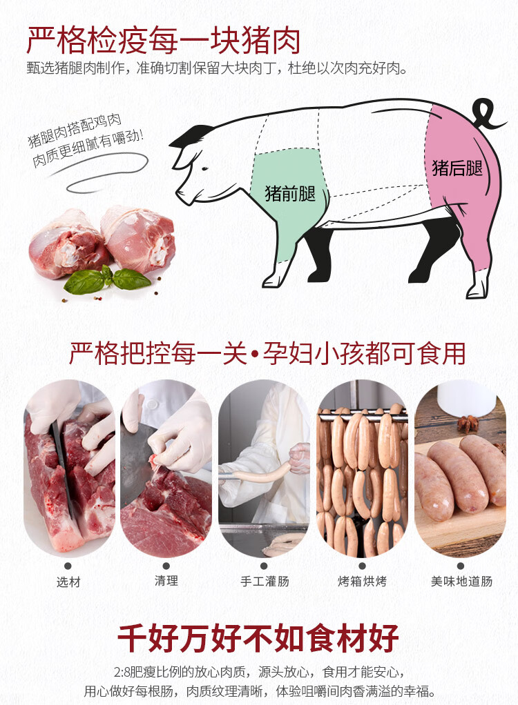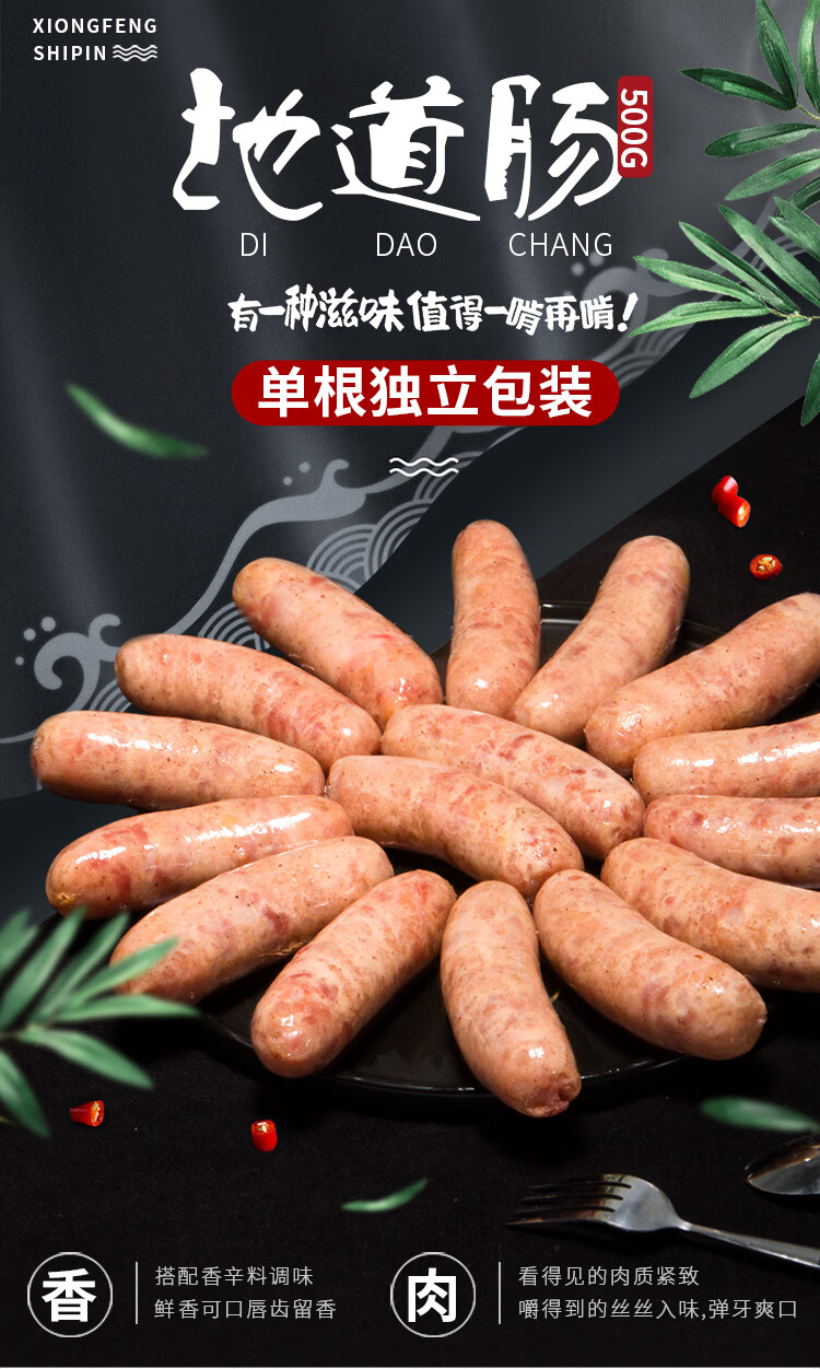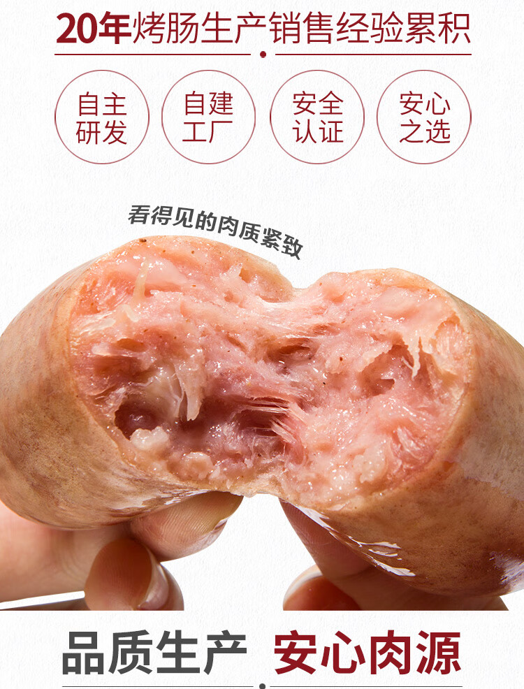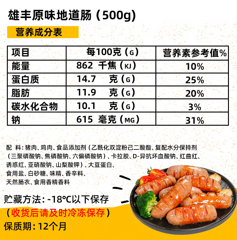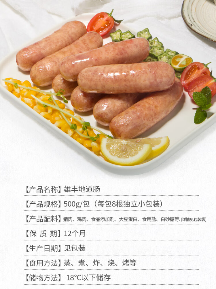 雄丰火山石烤肠 原味肉肠1斤/8根 台式热狗 冷冻香肠火锅烧烤食材