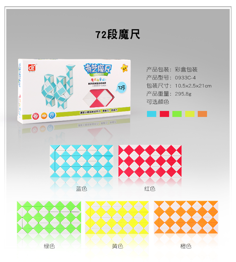 奇艺魔方72段魔尺 百变魔尺魔蛇玩具 蓝白六一儿童节新年礼物
