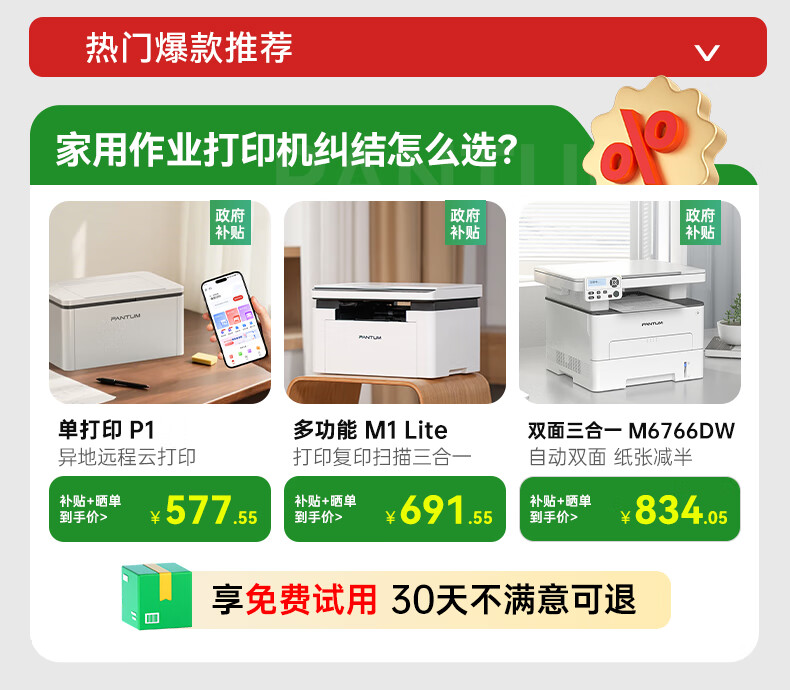 奔图(PANTUM)P2200W激光打印机家用办公 手机无线打印电脑打印 硒鼓简易可加粉低成本打印