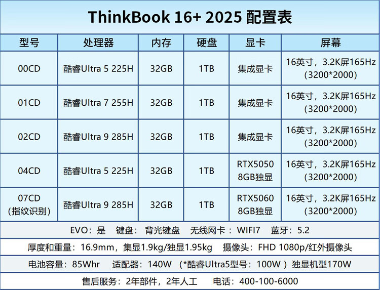 ThinkPad联想 ThinkBook 16+ 2025AI全能本 英特尔酷睿处理器 16英寸商务轻薄笔记本电脑 热销Ultra5 32G 1T 00CD