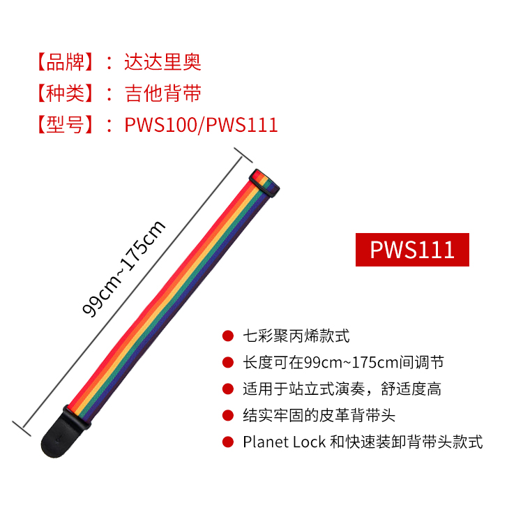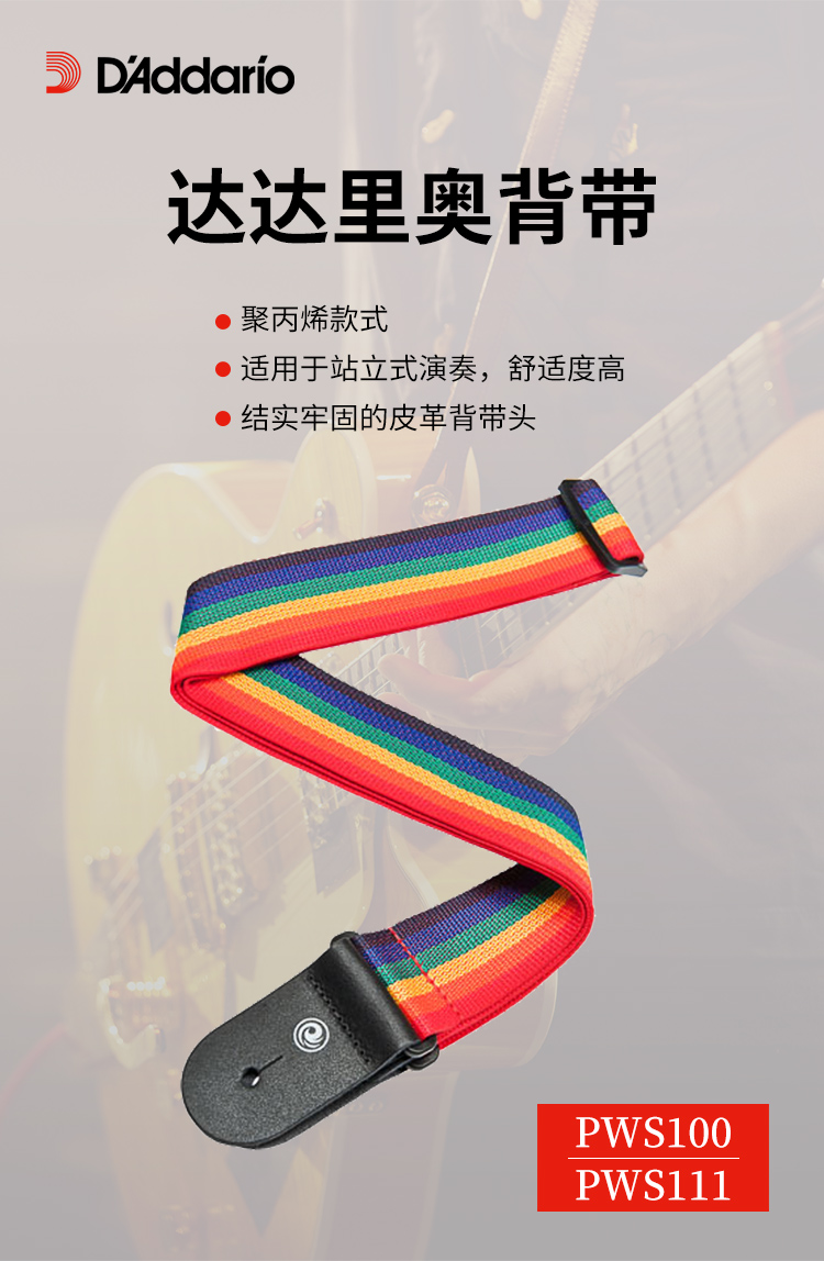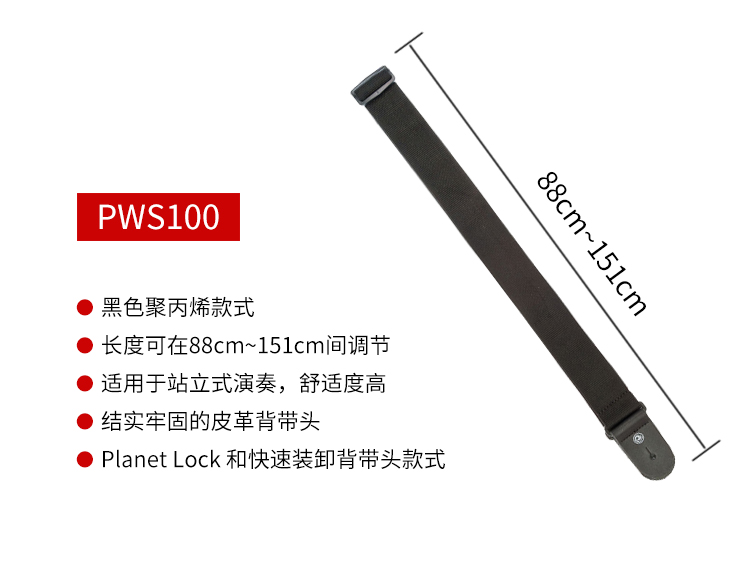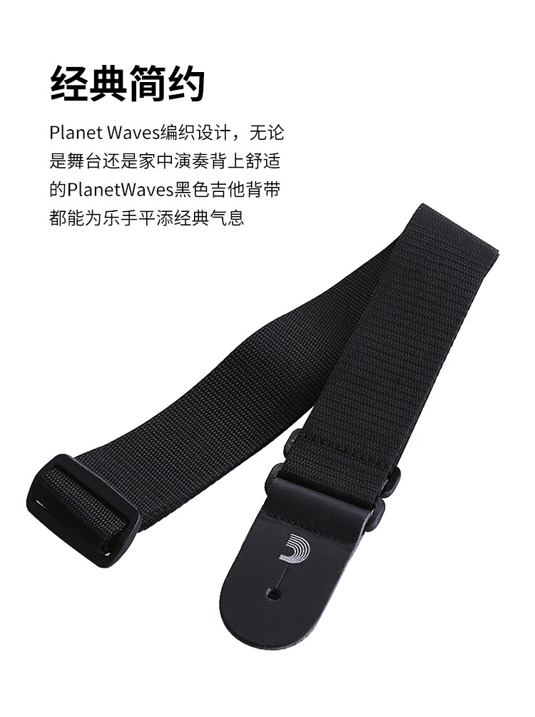 达达里奥(D'Addario)PWS100加拿大原装进口聚丙烯民谣吉他电吉他木吉他通用背带 黑色