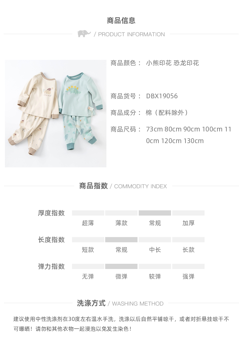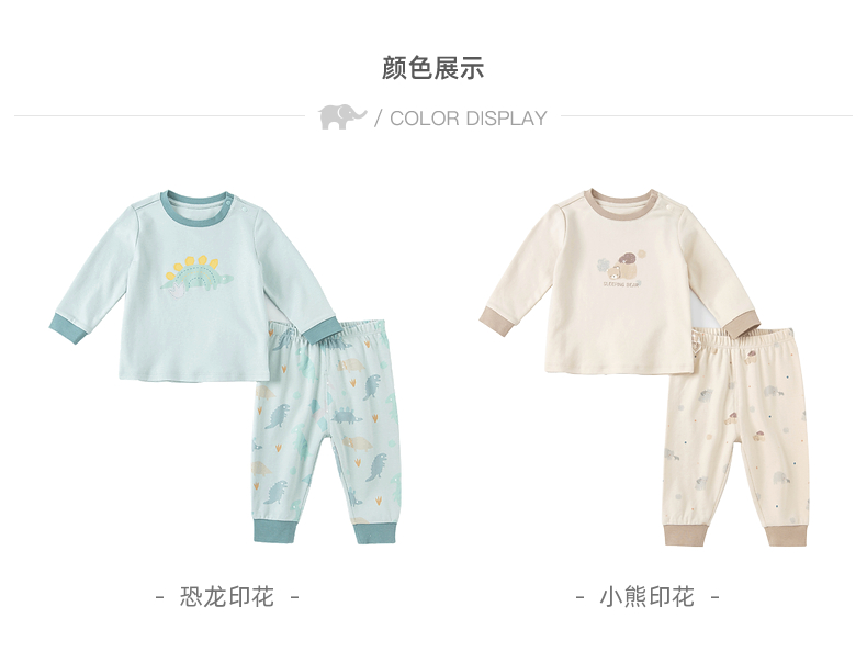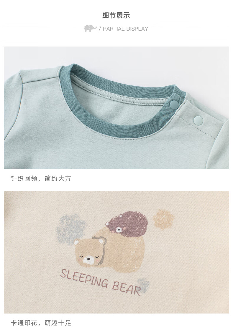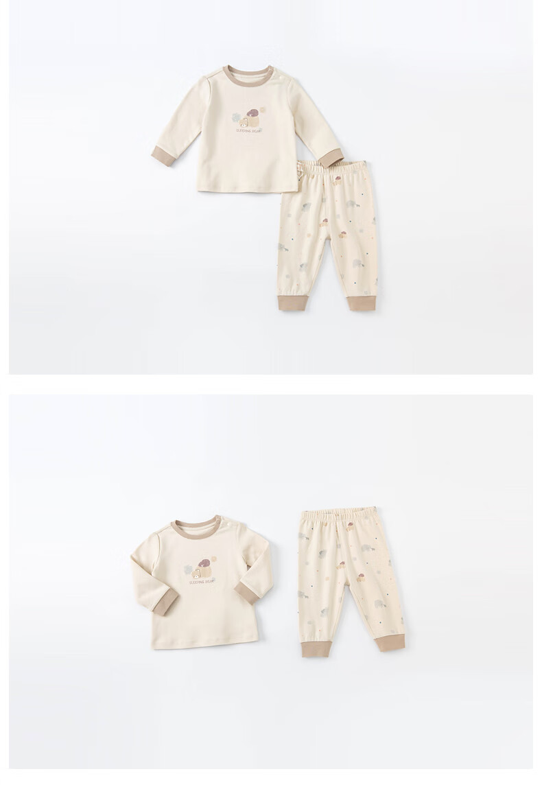 davebella戴维贝拉童装2021秋冬儿童内衣套装男童秋衣秋裤棉质睡衣DBX19056小熊印花90cm