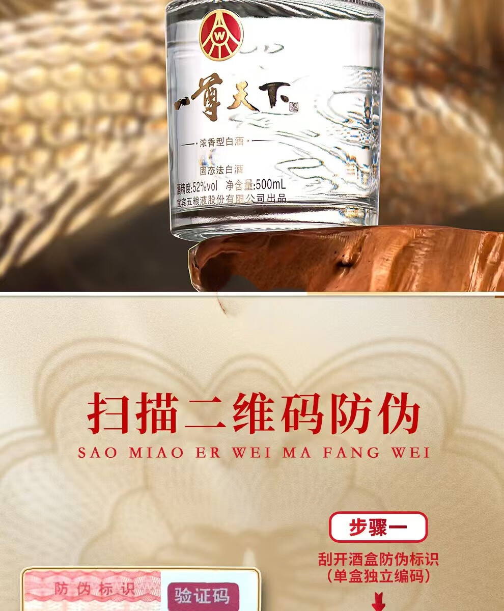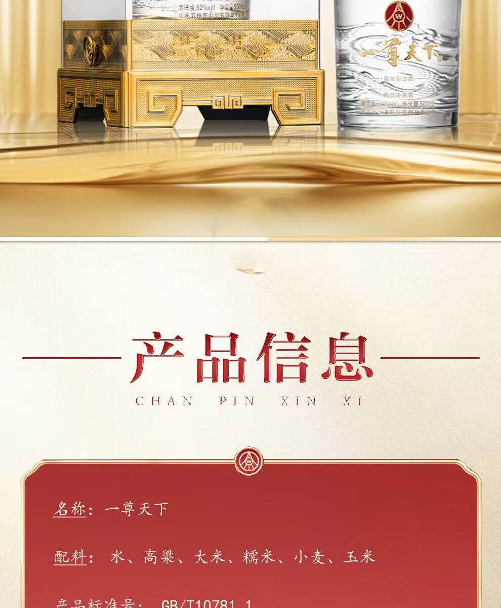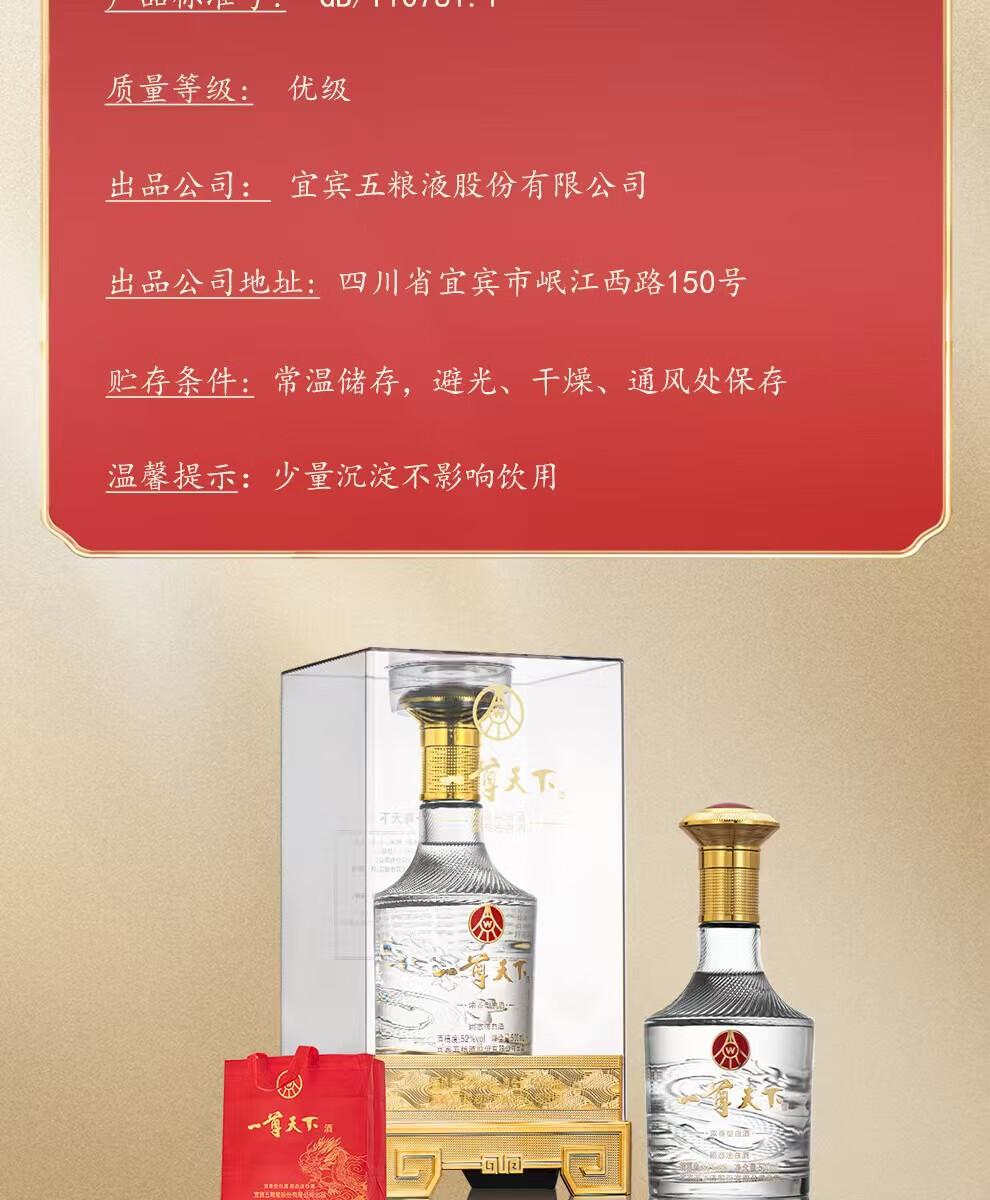 五粮液股份出品 白酒 浓香型白酒 纯粮酒 礼盒装 52度 500mL 6瓶 一尊天下龙尊整箱