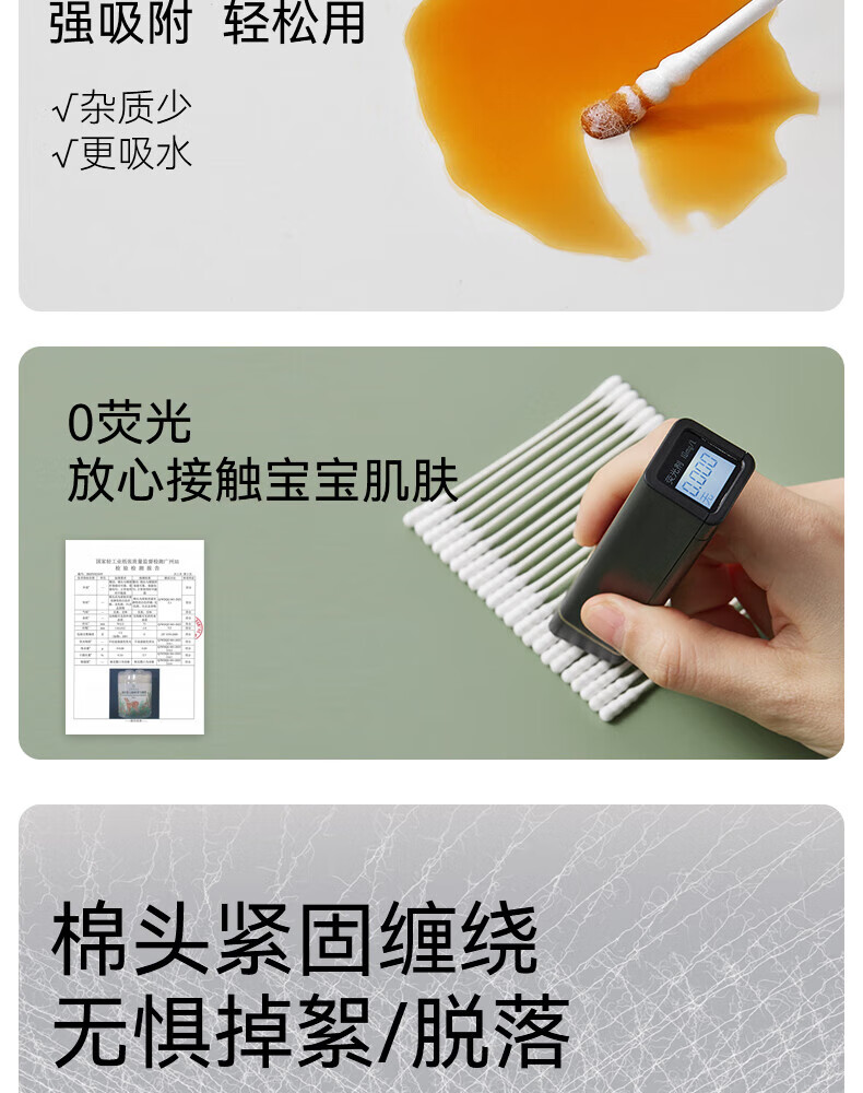 嫚熙(EMXEE)婴儿棉签新生儿耳鼻可用细螺旋头一次性宝宝清洁棉棒 200支/盒