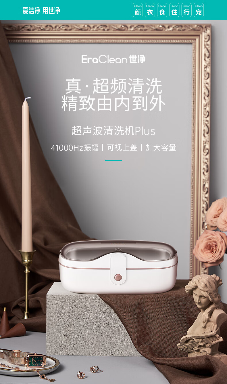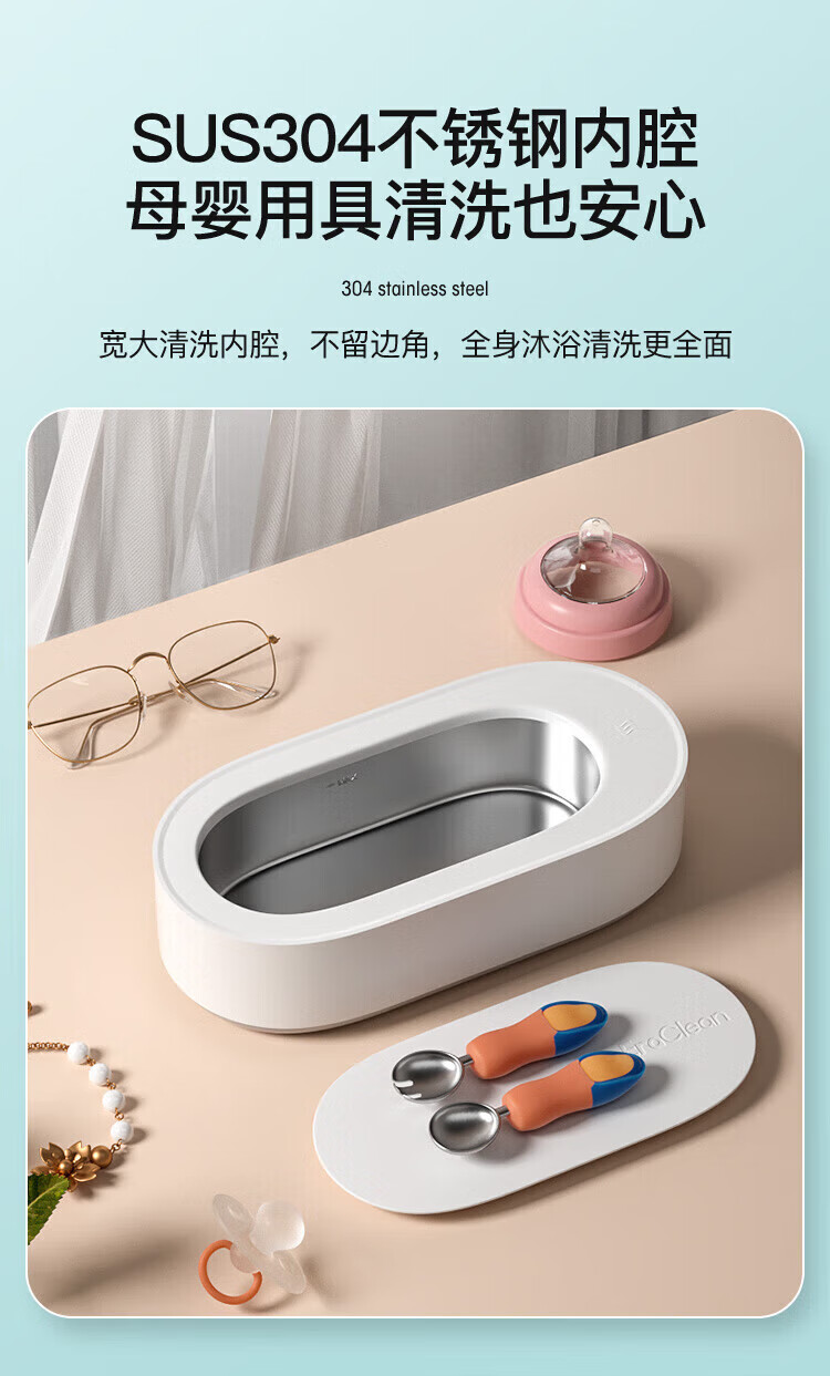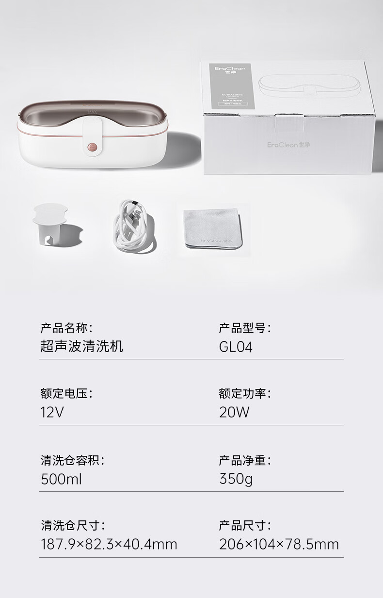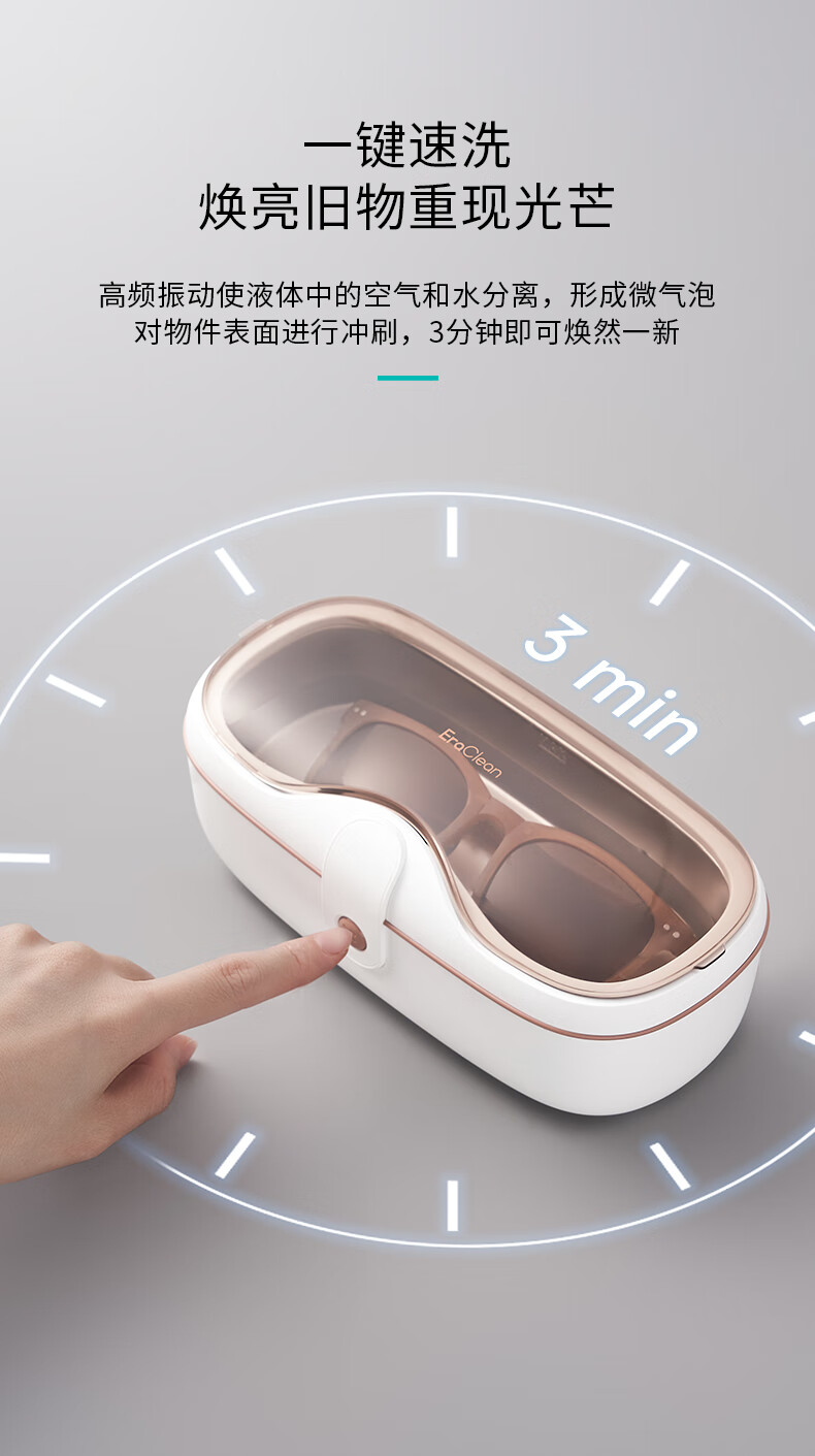 EraClean【有品众筹同款】世净超声波清洗机眼镜手表家用全自动清洗器便携珠宝首饰牙套清洁仪机 GA03【小米有品款】