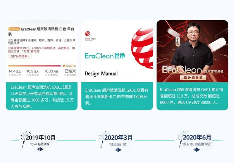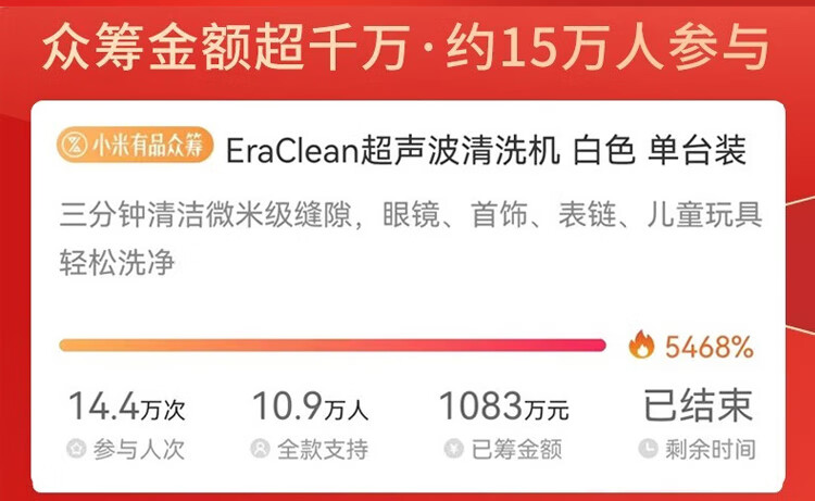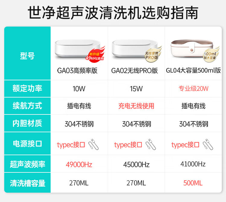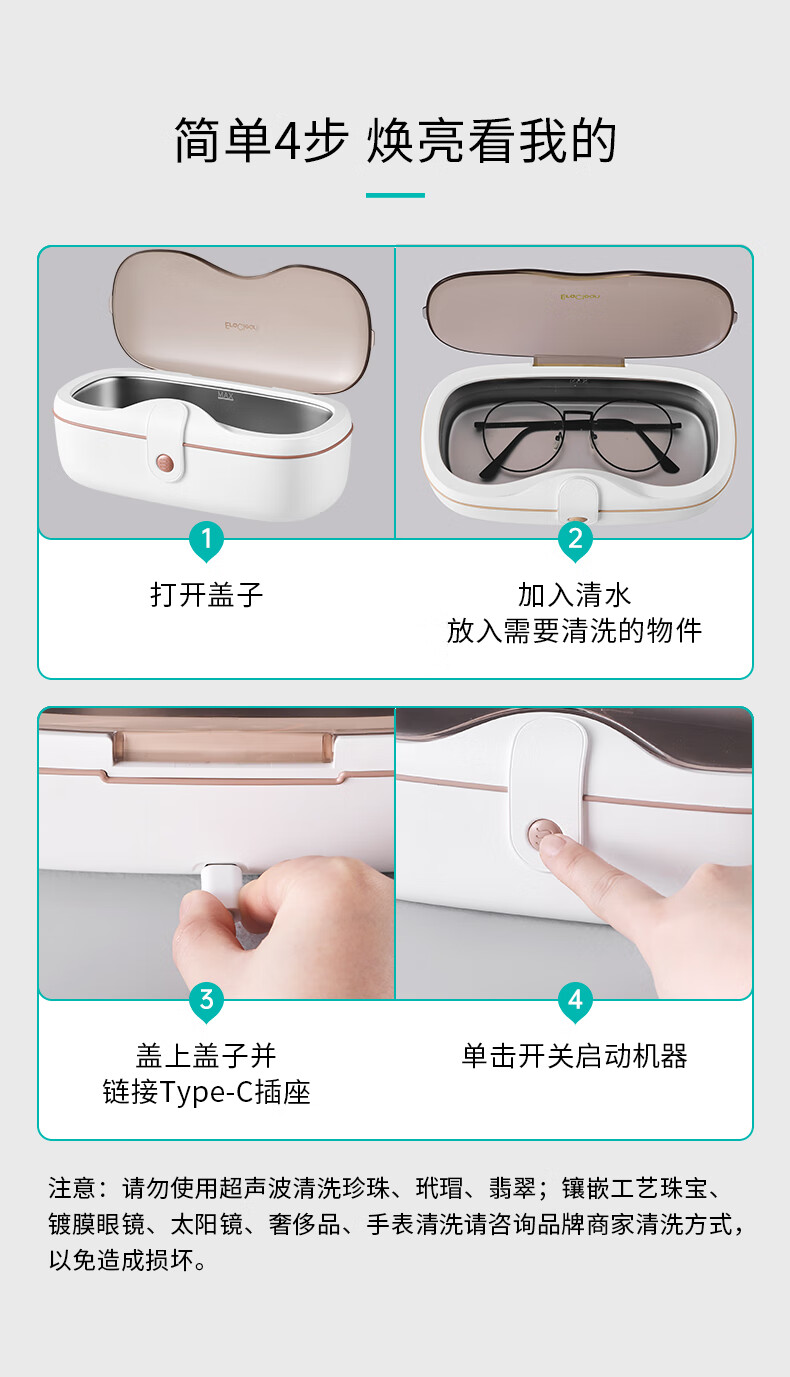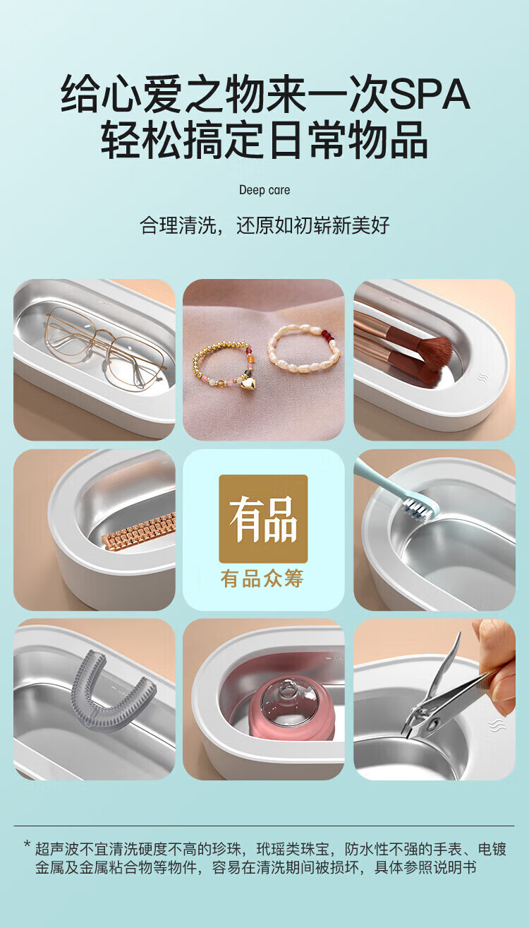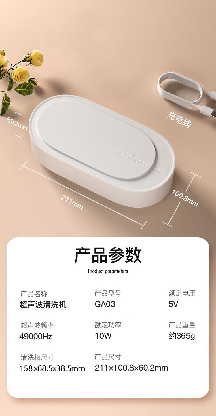 EraClean【有品众筹同款】世净超声波清洗机眼镜手表家用全自动清洗器便携珠宝首饰牙套清洁仪机 GA03【小米有品款】