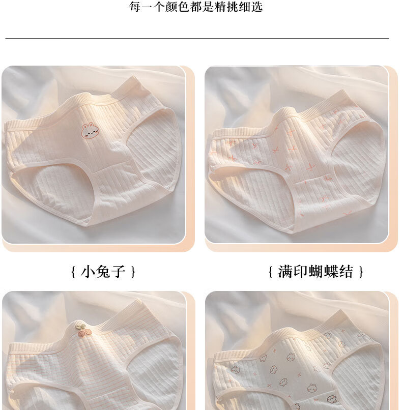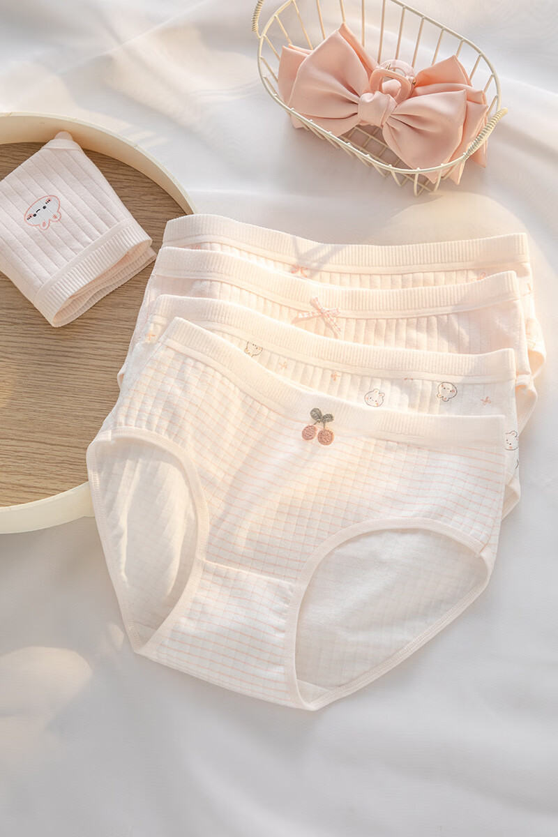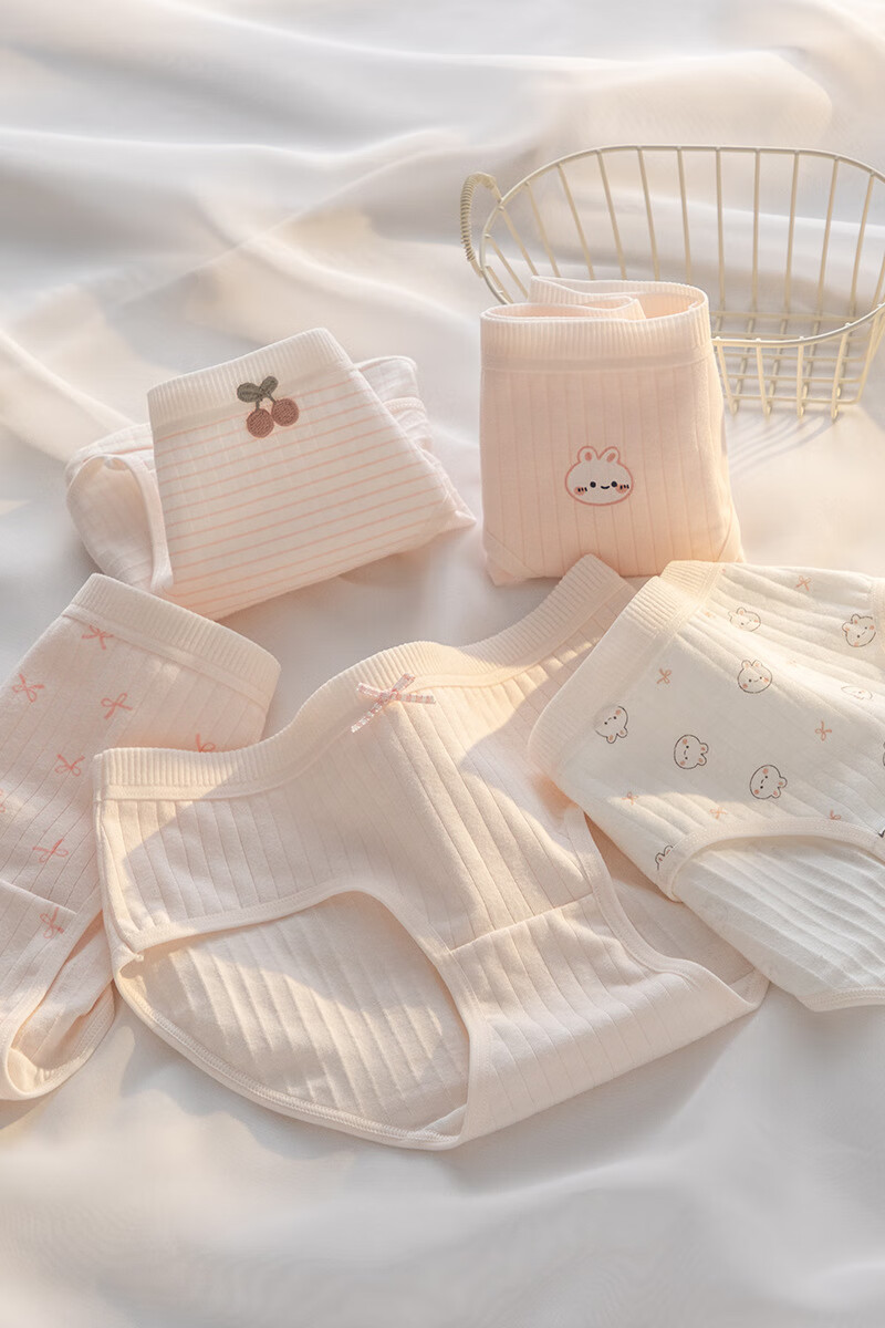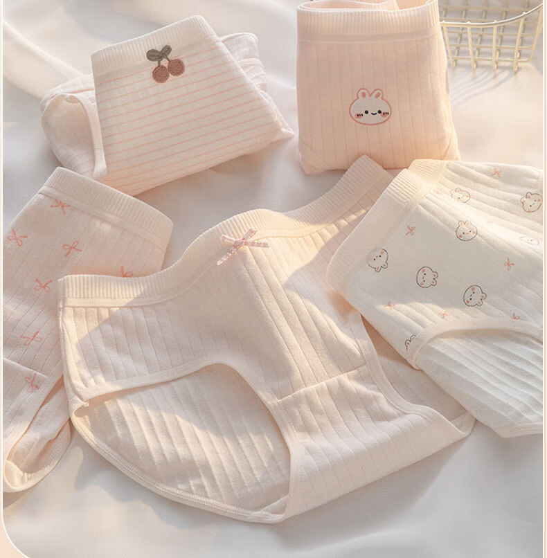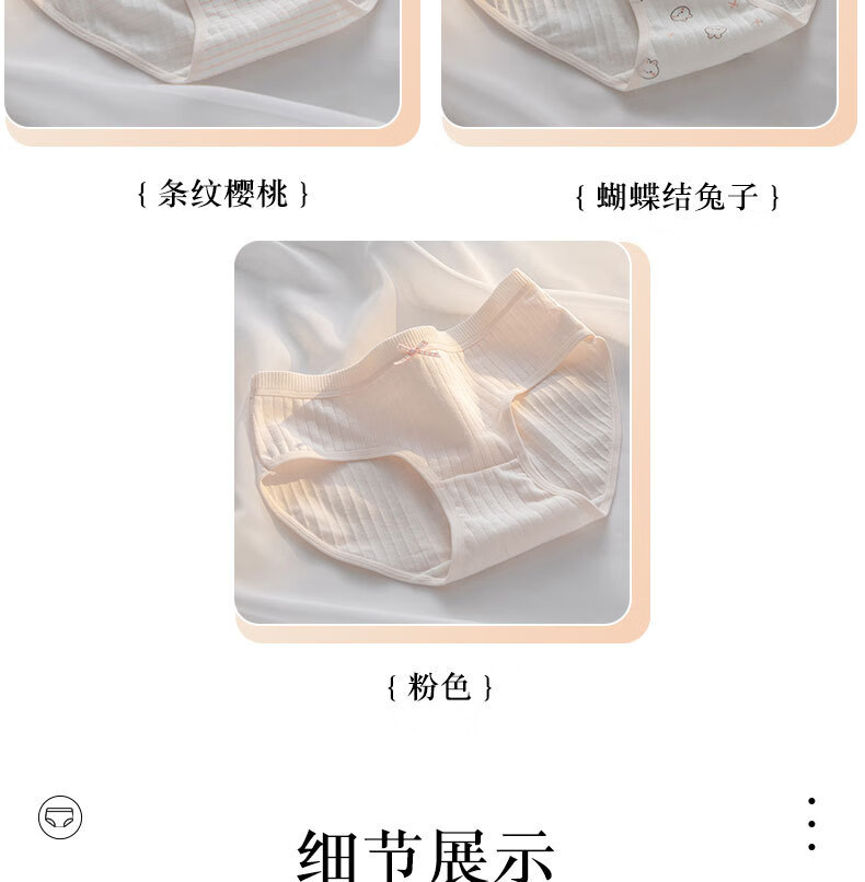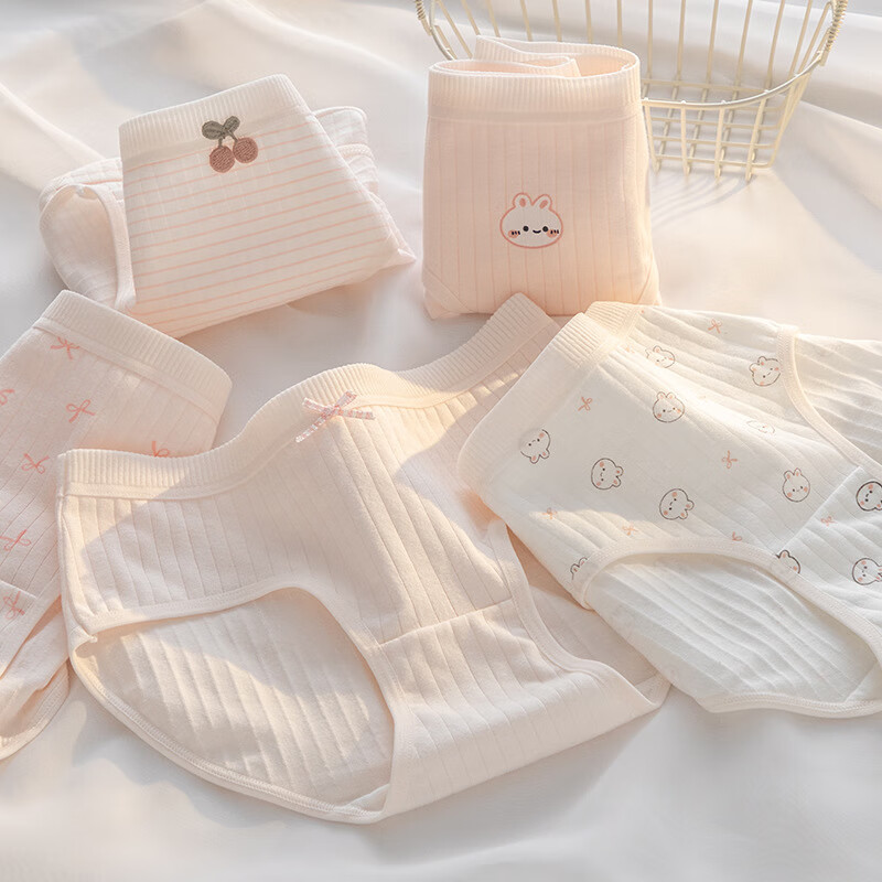 宝娜斯A类棉内裤女粉色可爱少女内裤女生纯棉裆抗菌裆三角裤头学生 樱桃小兔 混色 3条 XL 适合体重(105-135)