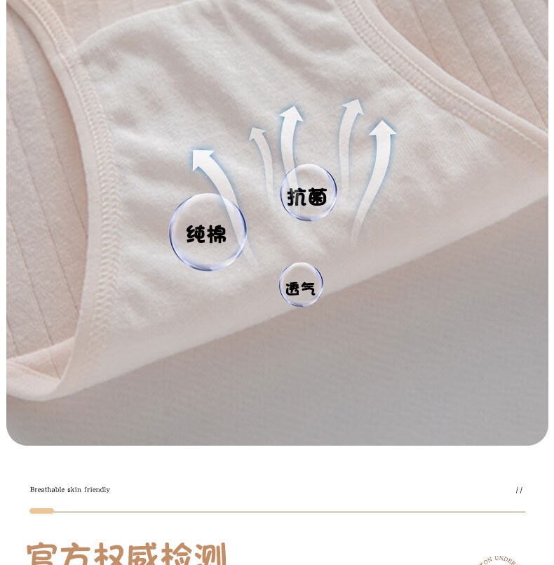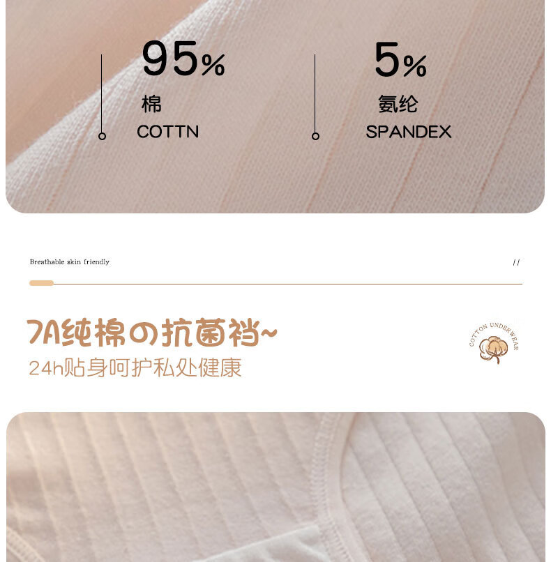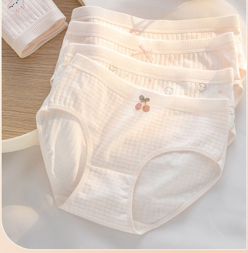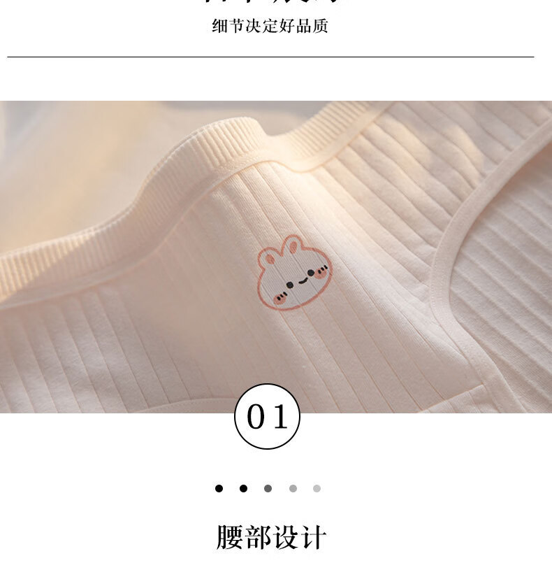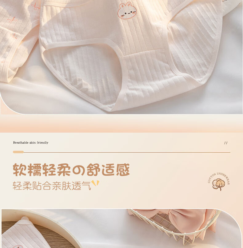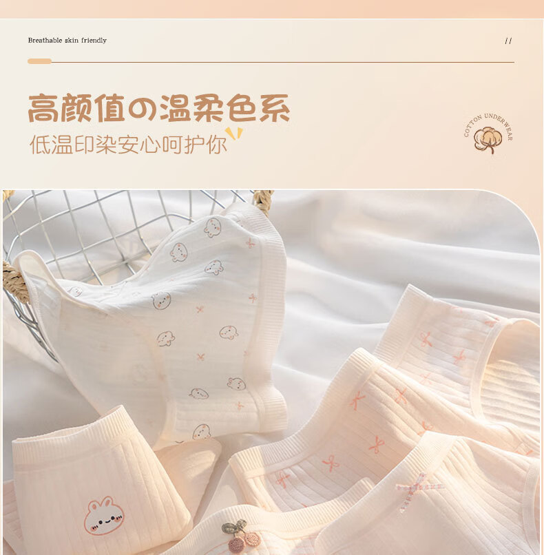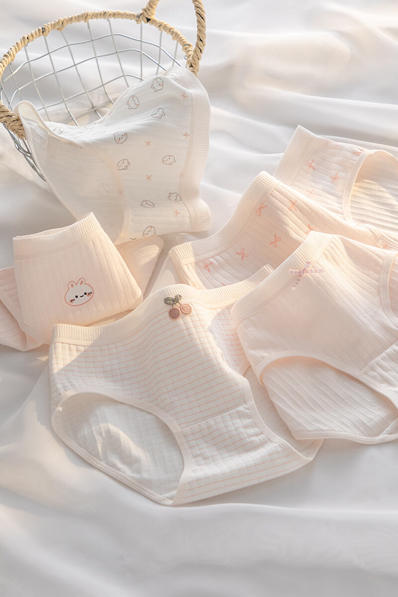 宝娜斯A类棉内裤女粉色可爱少女内裤女生纯棉裆抗菌裆三角裤头学生 樱桃小兔 混色 3条 XL 适合体重(105-135)