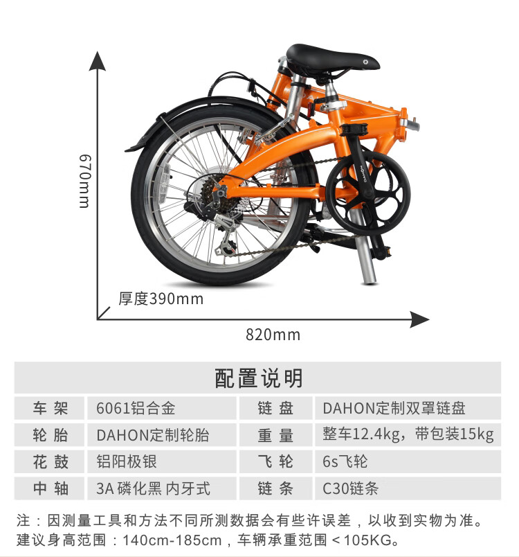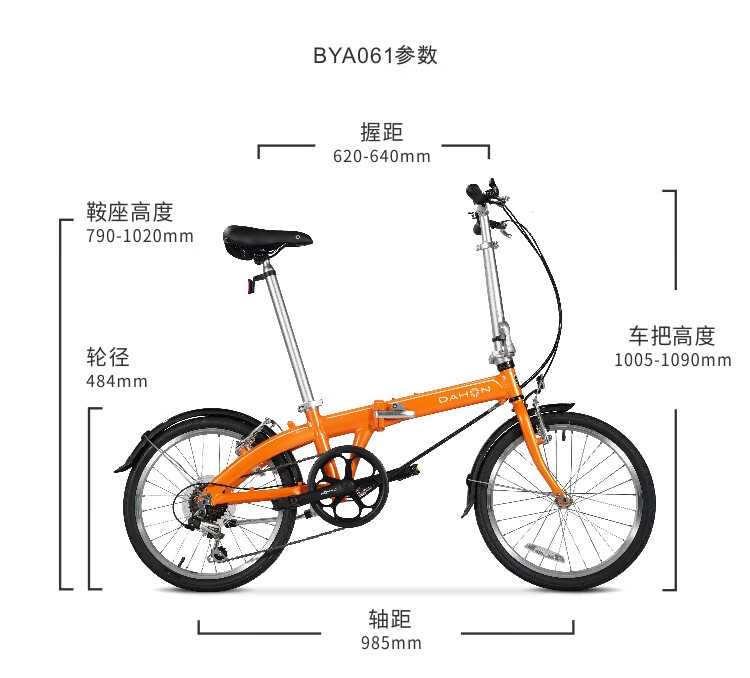 大行(DAHON) 通勤便携折叠自行车20英寸6速超轻铝合金成人休闲代步单车BYA061 拉力橙