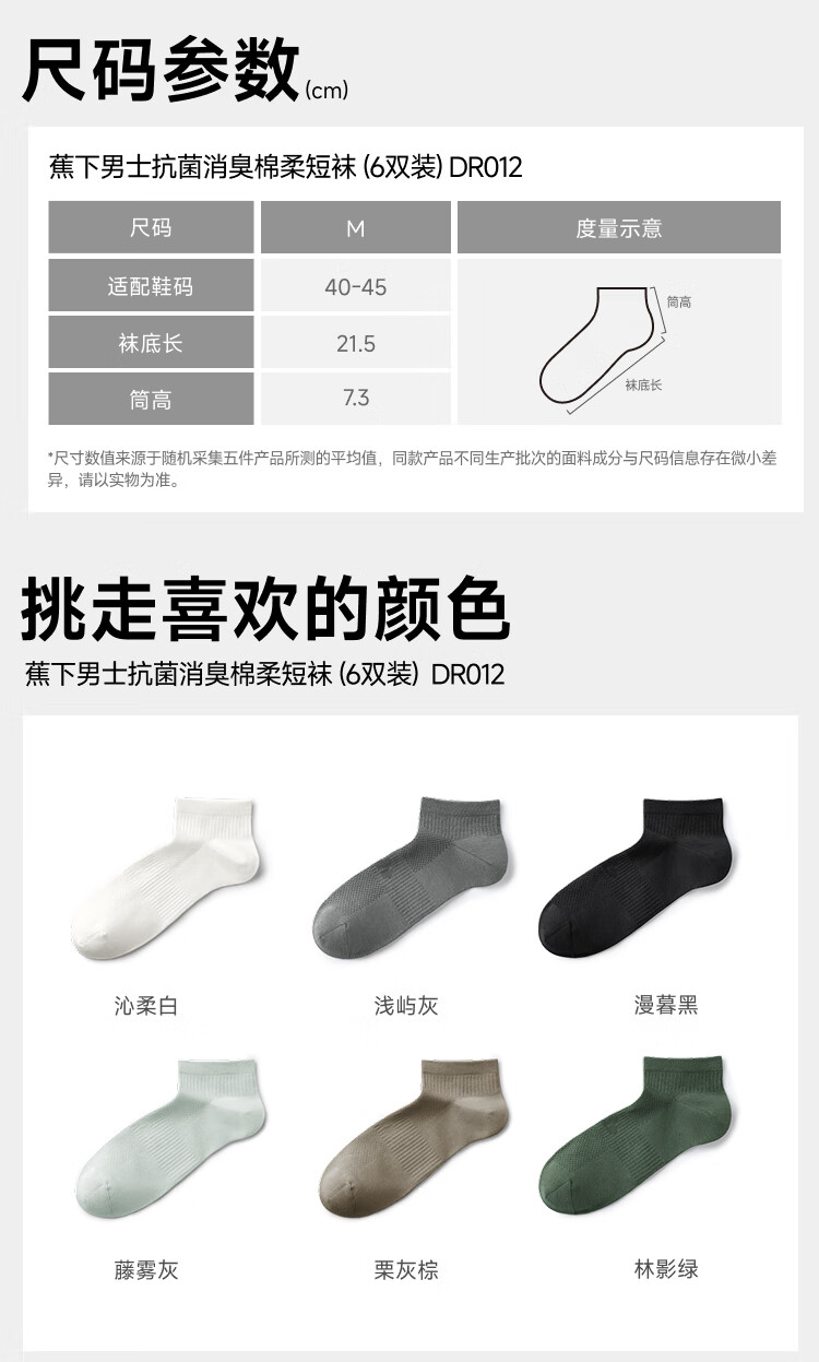 蕉下袜子男士短袜棉质防臭袜抗菌吸汗休闲袜夏季四季 25新品