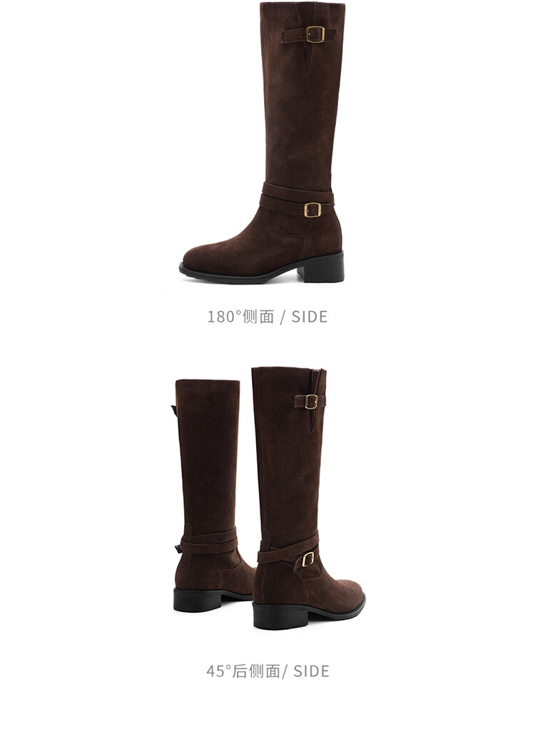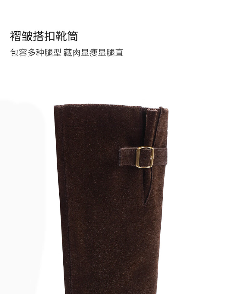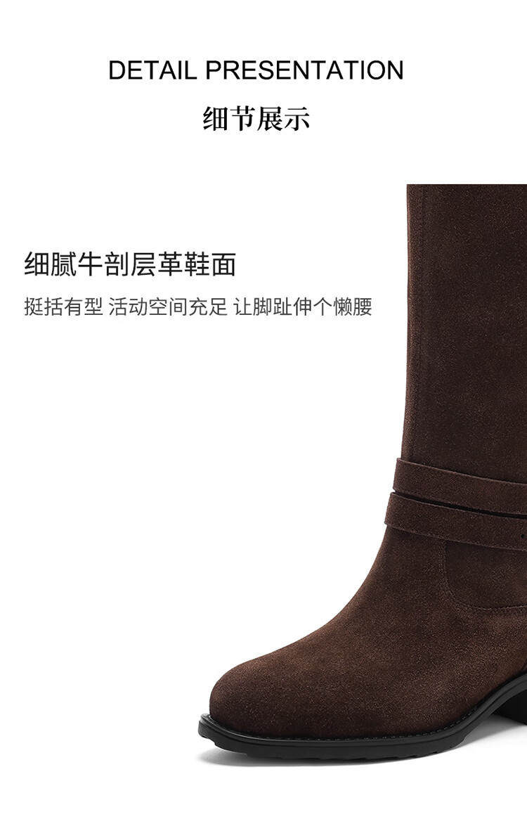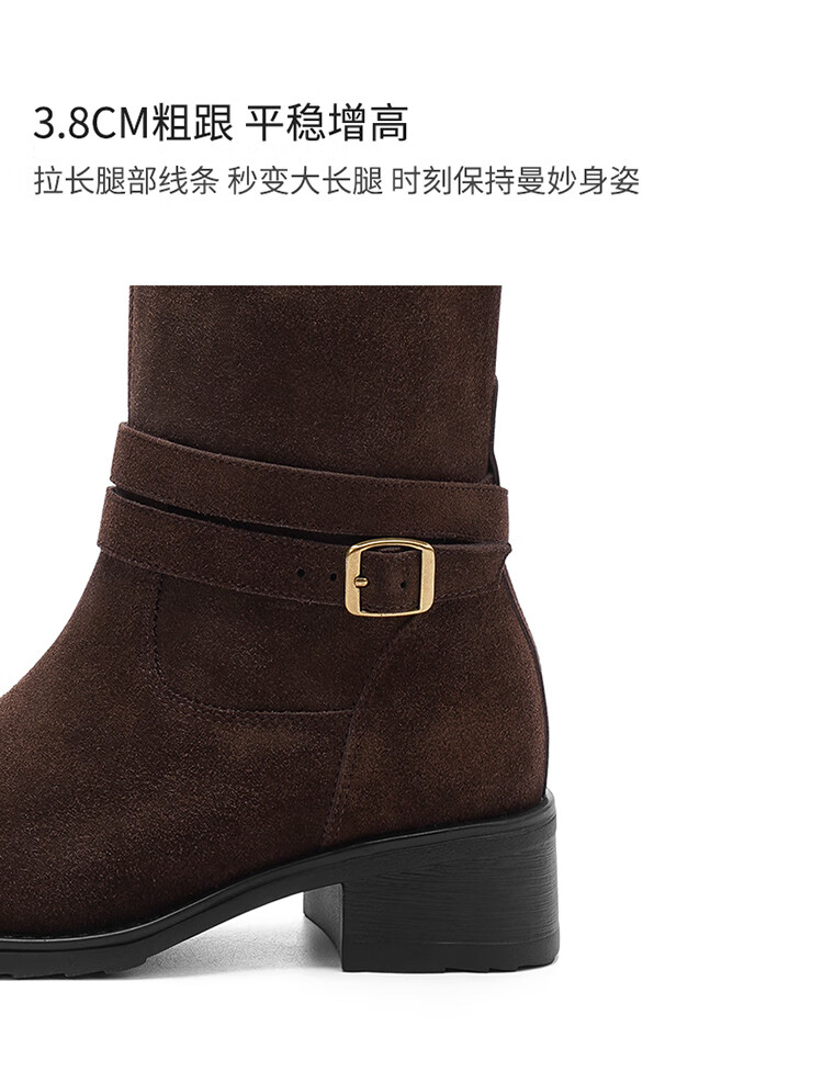 哈森(Harson)长靴子女2025秋冬新款粗跟时装靴复古西部美拉德风牛仔靴HA252506 咖啡色 牛剖层革 35