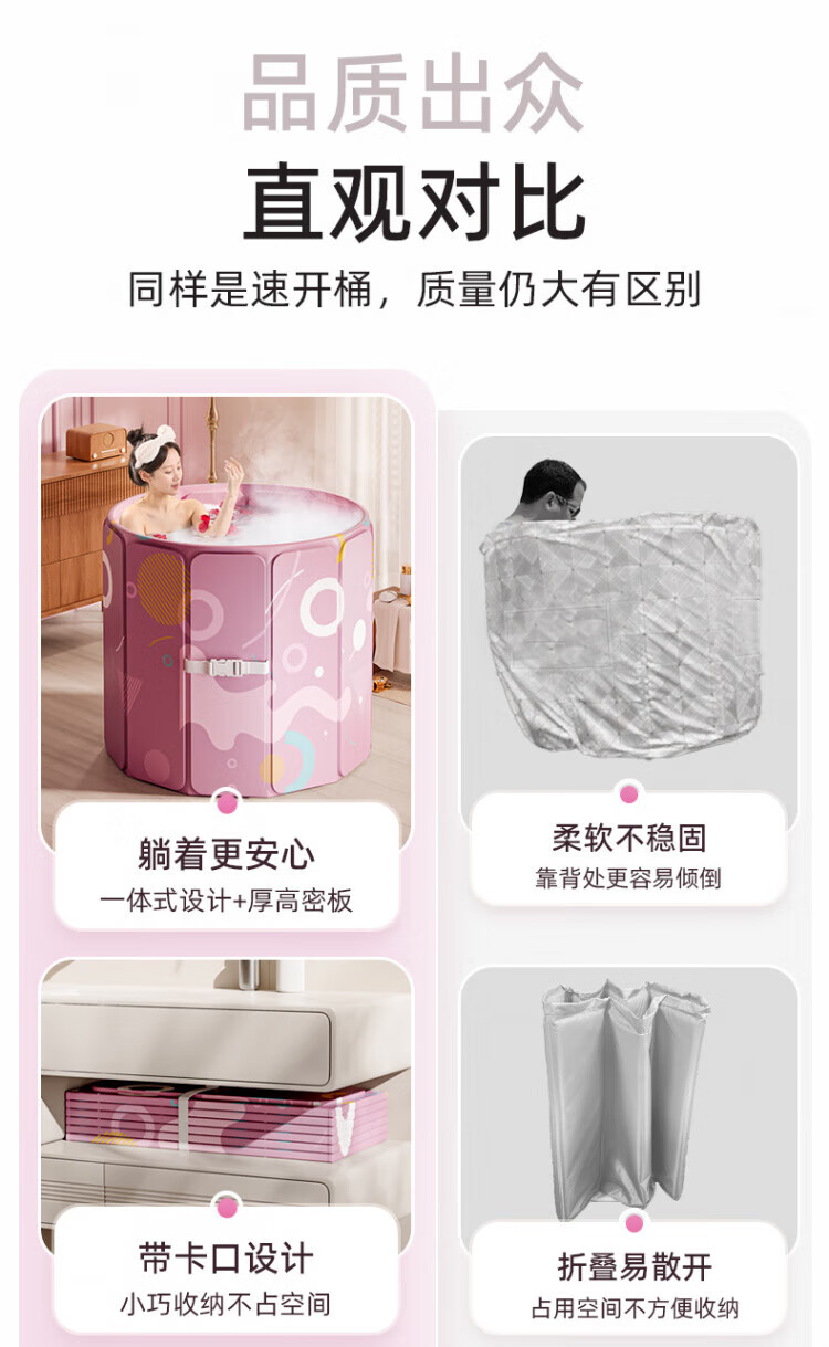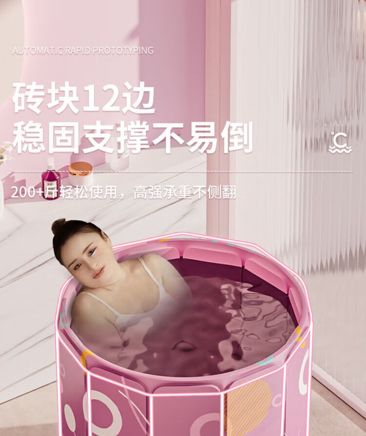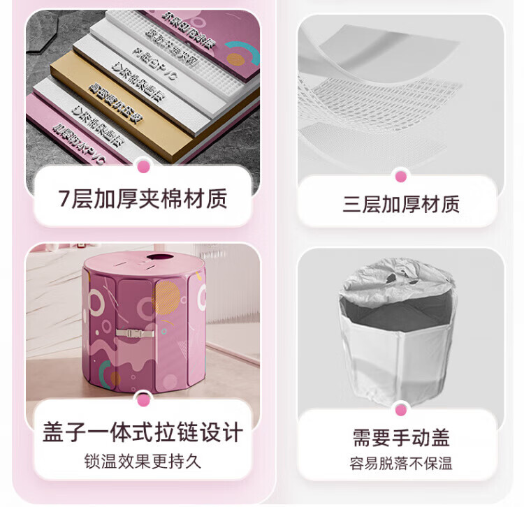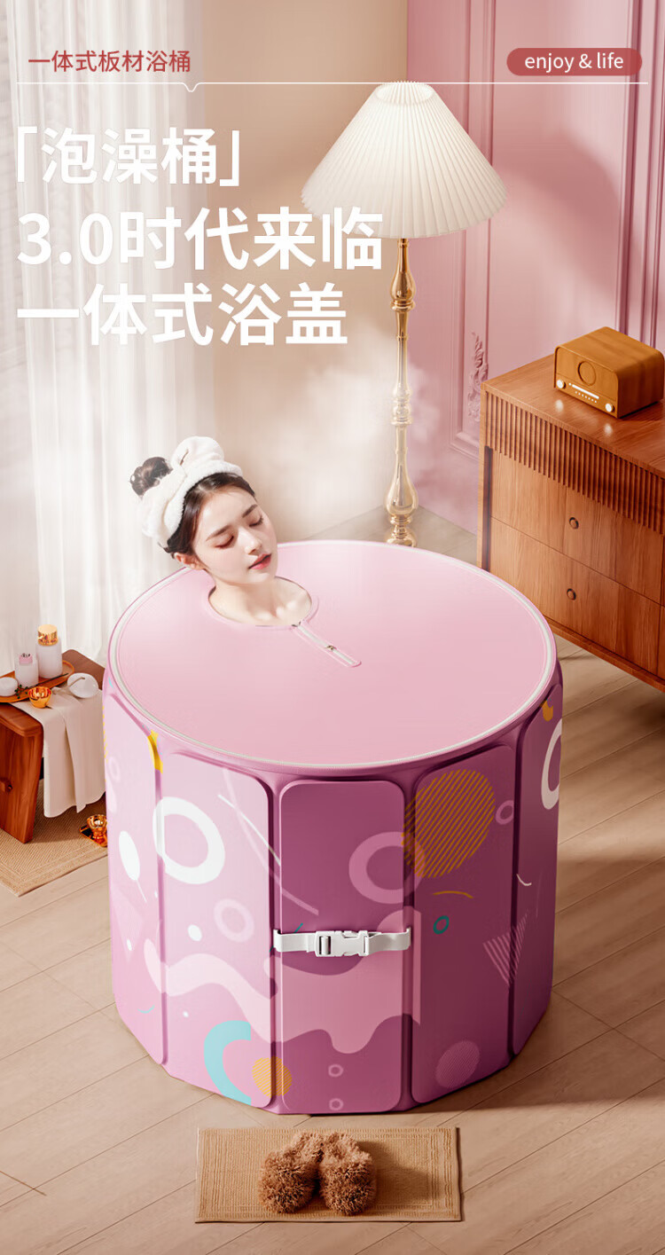 TYZAYR日本泡澡桶大人折叠家用全身儿童洗澡汗蒸浴缸加厚全身药沐浴桶免 70樱花粉【长效锁温】暖心入门