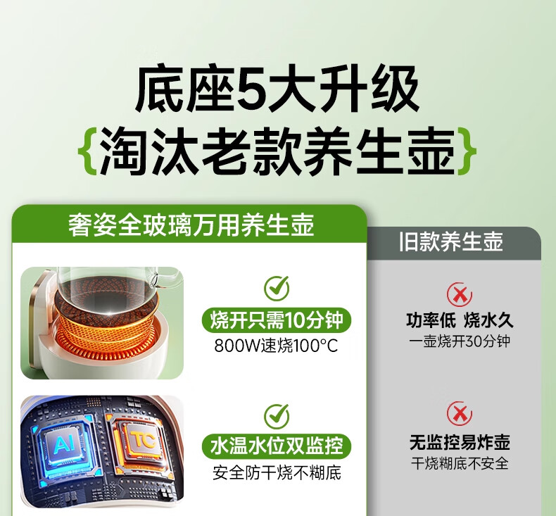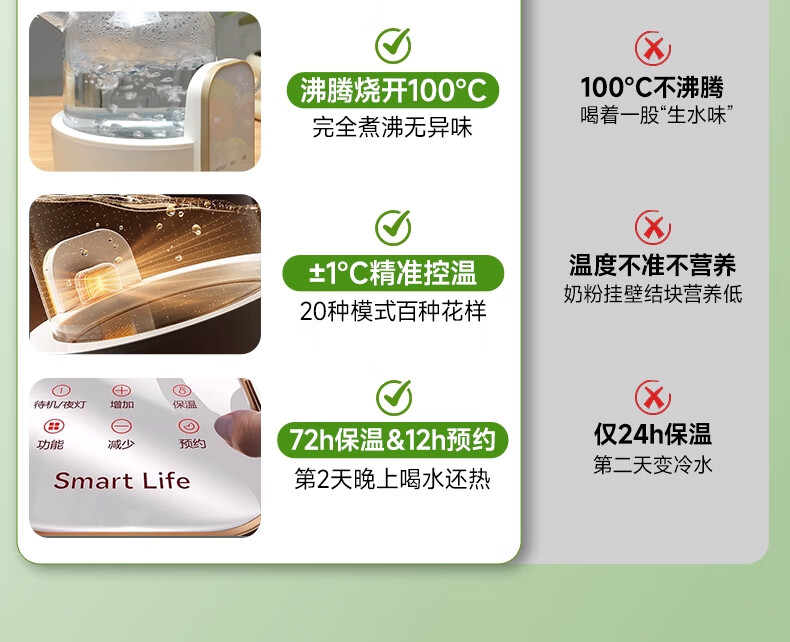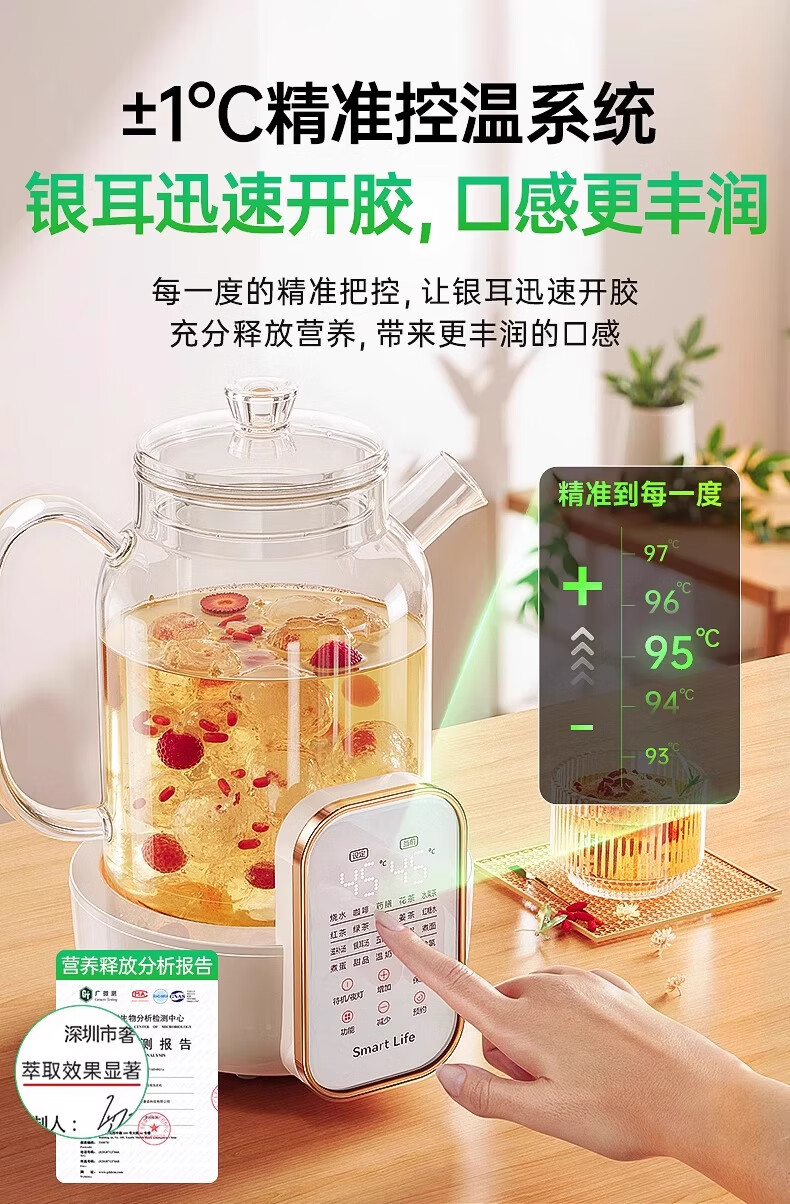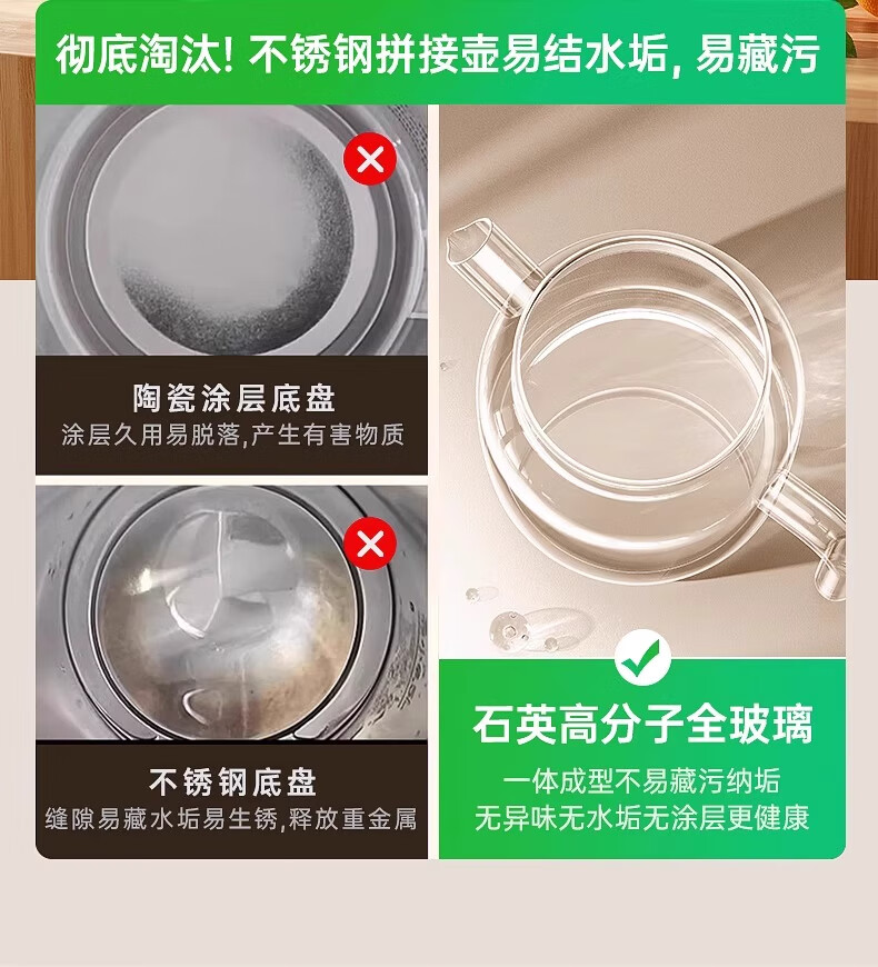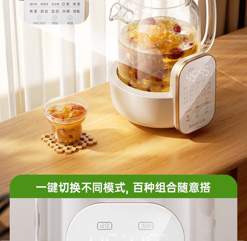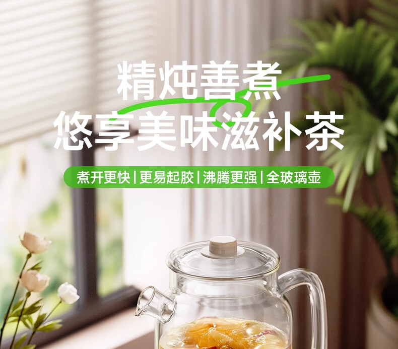 奢姿恒温壶婴儿冲奶泡奶器 养生壶煮茶器炖煮一体0胶水全玻璃电热水壶 升级款 1.5L 【炖盅套装】