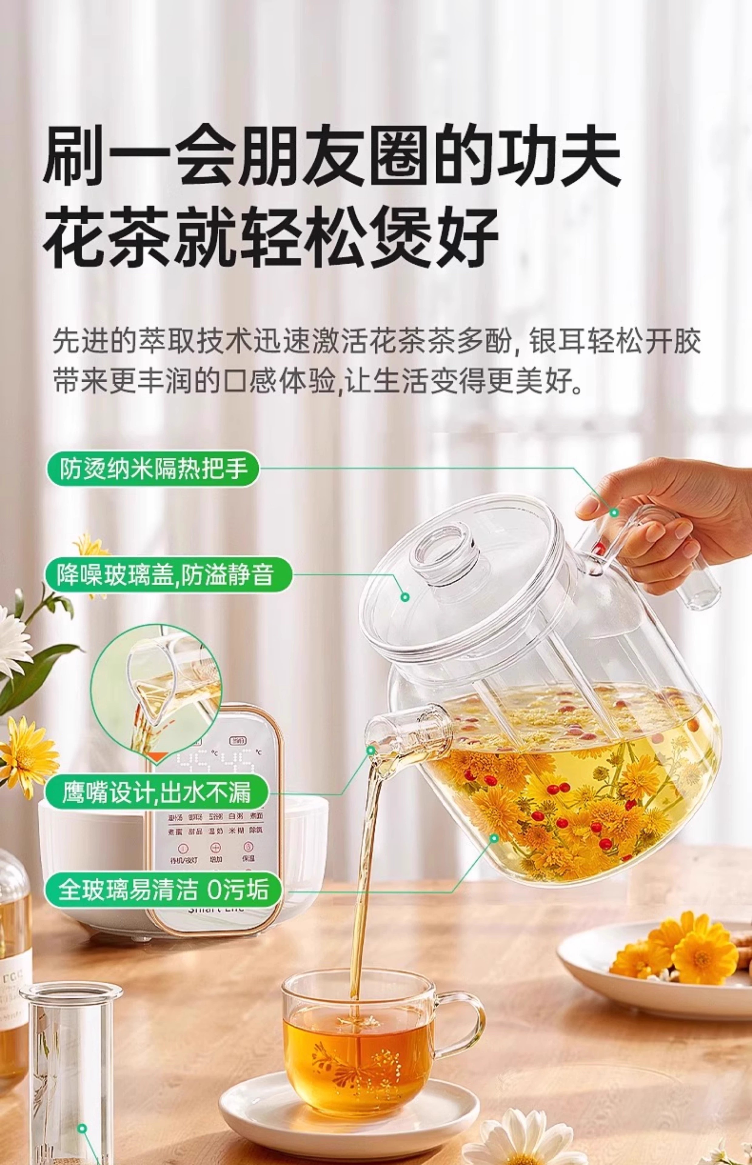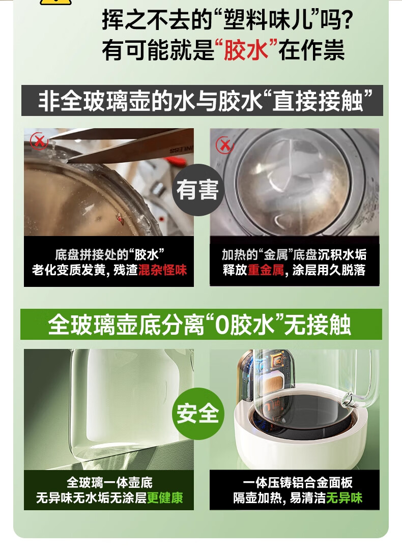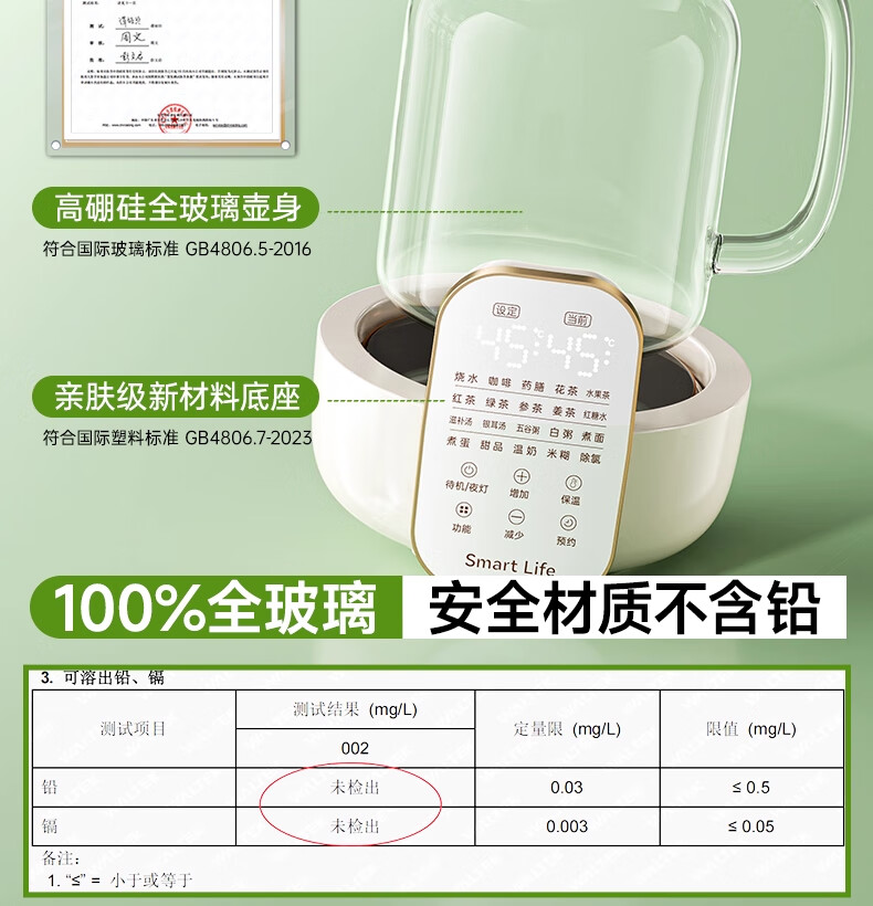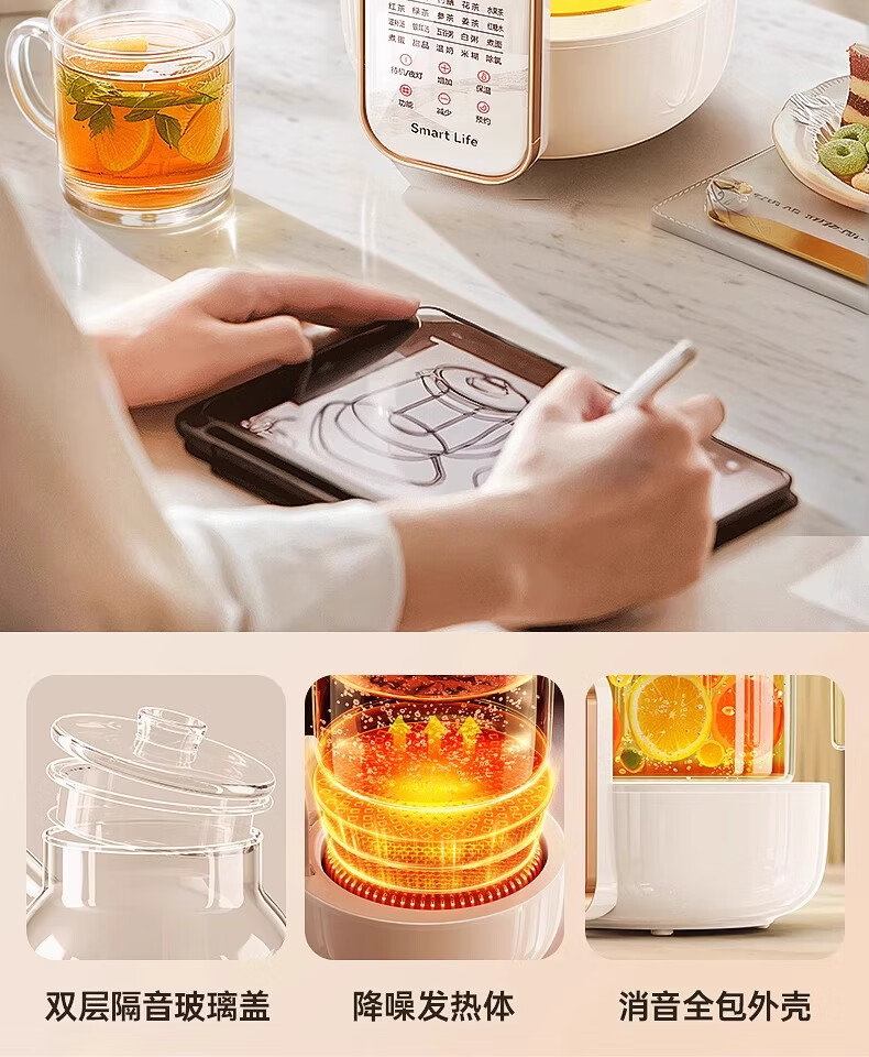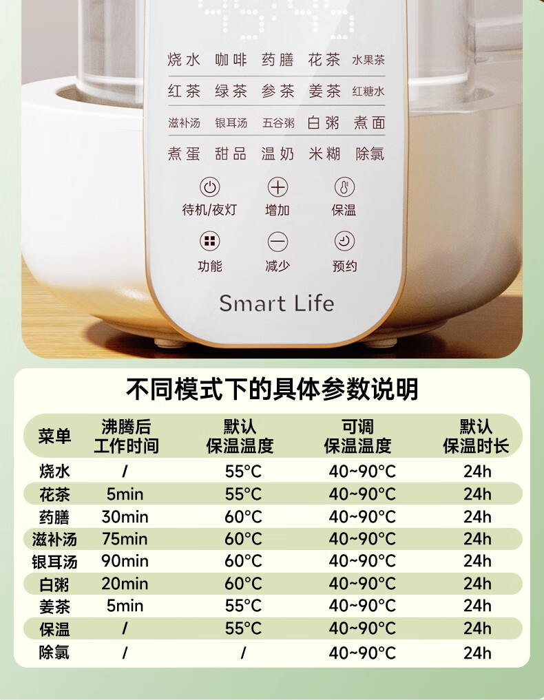 奢姿恒温壶婴儿冲奶泡奶器 养生壶煮茶器炖煮一体0胶水全玻璃电热水壶 升级款 1.5L 【炖盅套装】