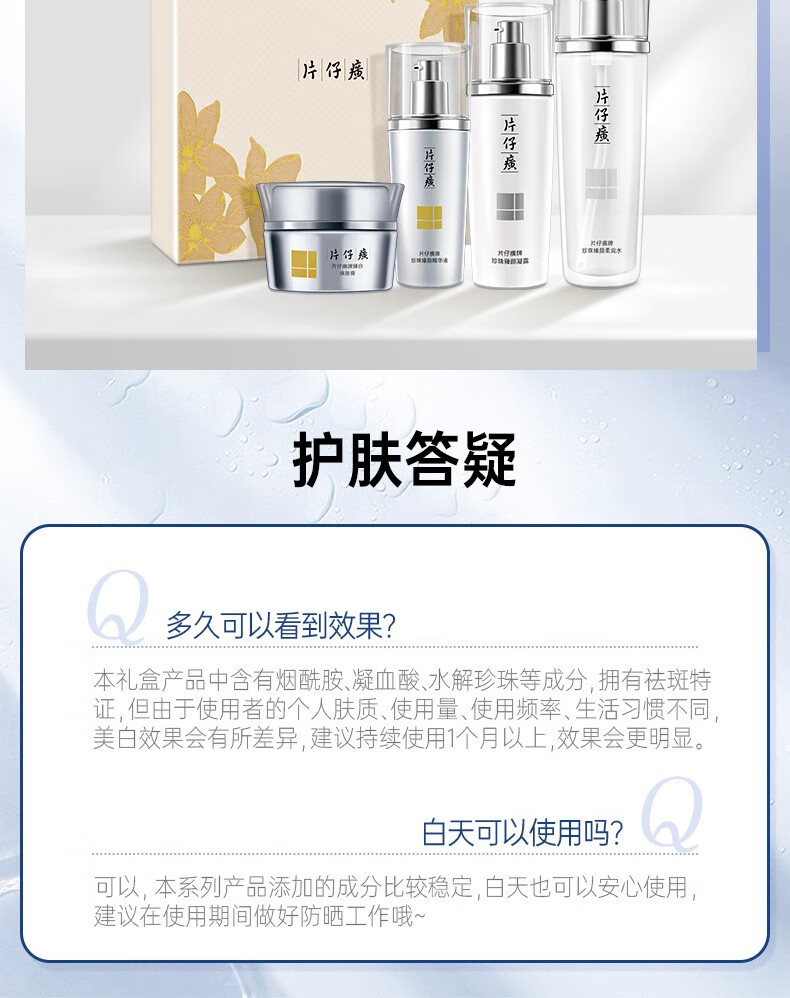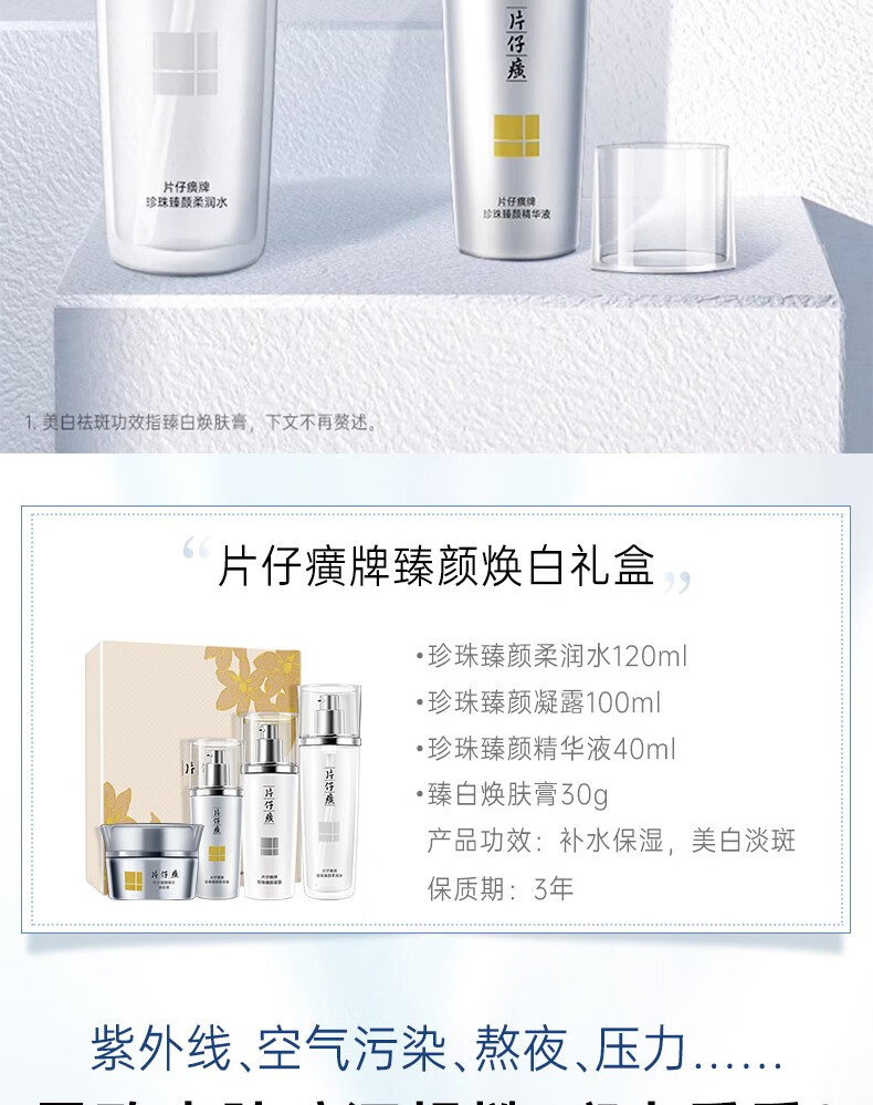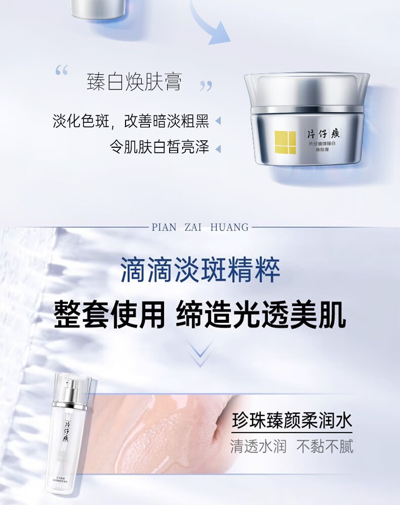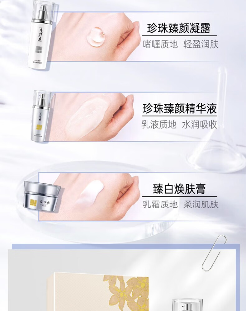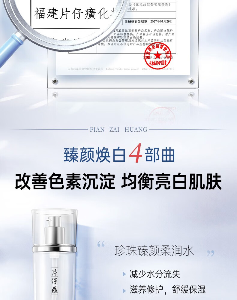 片仔癀珍珠臻白礼盒美白祛斑淡斑补水保湿提亮紧致舒缓修护臻颜焕白套装 焕白4件套(水+精华+凝露+面霜)